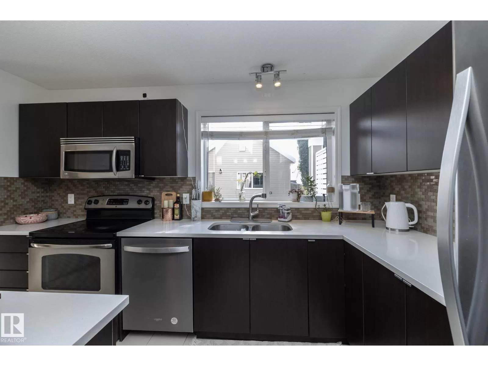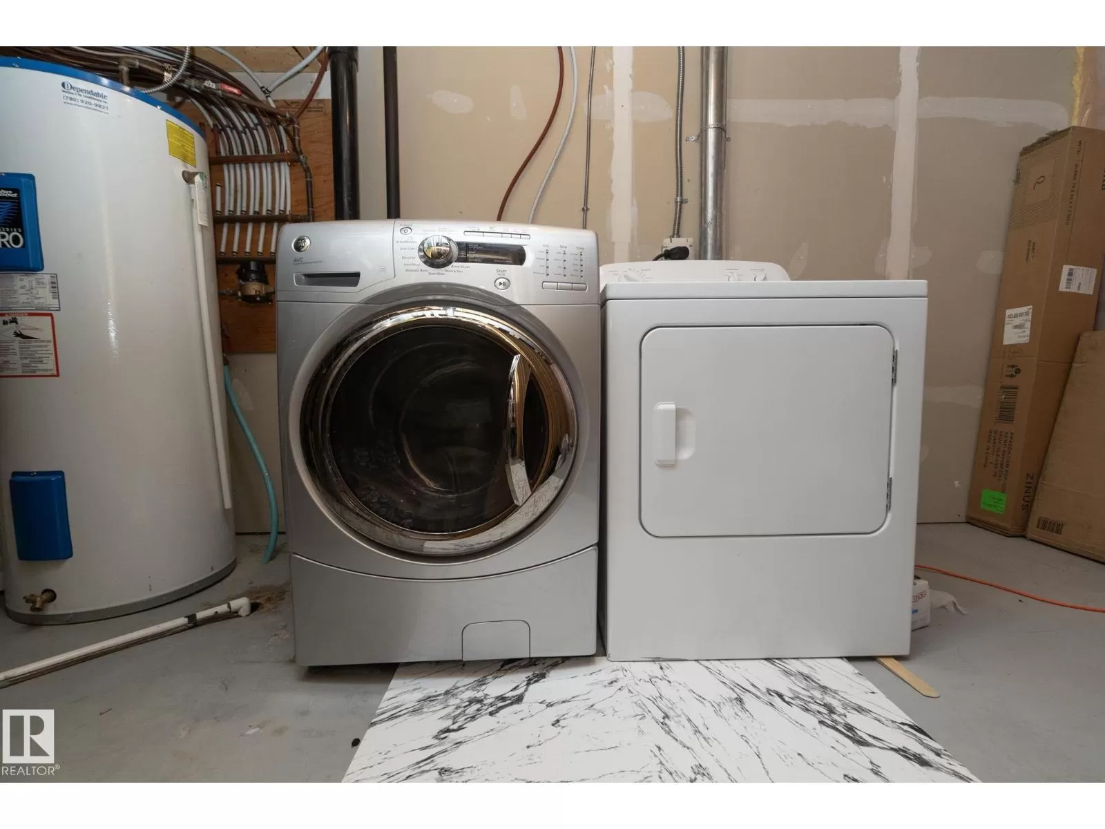 This clean and well-maintained duplex offers comfort, convenience and access to one of Edmontonâs most sought-after lake communities.The main floor features gleaming hardwood floors, open-concept living, a real stone gas fireplace, quartz countertops, stainless steel appliances, custom closets and plenty of storage.Upstairs, you will find two bedrooms plus a spacious loft (easily convertible into a third bedroom).The primary suite showcases a gorgeous stone feature wall, walk-in closet and a bright en-suite bath filled with natural light. Your south-facing backyard is built for entertaining with a massive deck, pergola, privacy wall, and heat-resistant stone BBQ wall. The double detached insulated garage includes an extra storage loftâa rare bonus! Located just steps away from parks, schools and all the amenities Summerside offers including exclusive lake access for swimming, paddleboarding, boating and more. (id:27476)