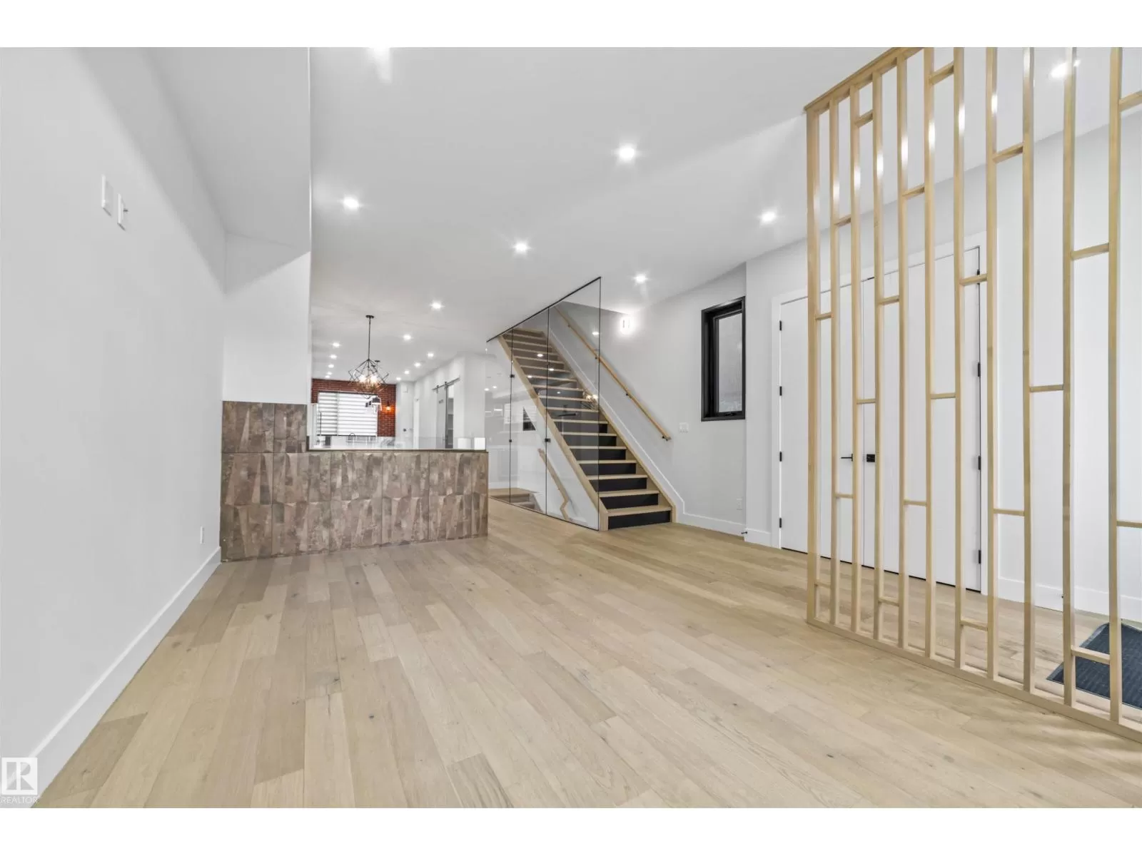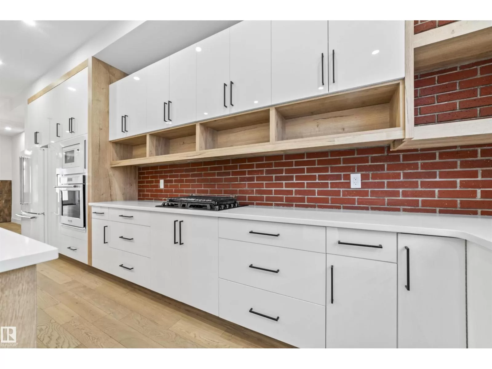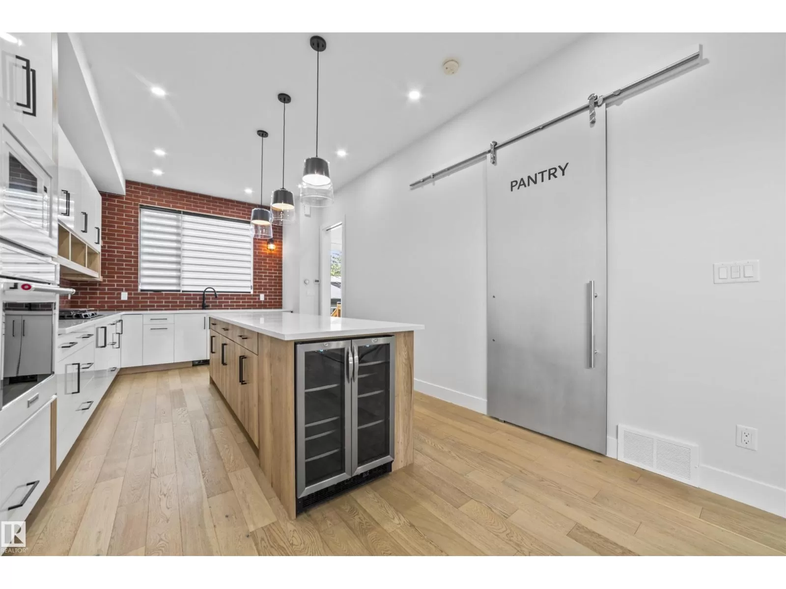 Central living meets modern luxury in this custom-built two-storey, offering nearly 2,000 sq. ft. plus a fully finished basement with wet bar. Soaring 10â main floor ceilings, 9â upstairs, and expansive triple-pane windows fill the home with natural light. The chefâs kitchen features a gas cooktop, quartz counters, custom cabinetry, and bold brick backsplash that makes a statement. Enjoy designer details throughout: 8â doors, engineered hardwood, a spa-inspired ensuite with oversized tiled shower, and a stunning tiled bathroom. Built with striking curb appeal â acrylic stucco and metal accents â this home is both elegant and enduring. Every space is thoughtfully designed, from custom closets to the open-concept living areas perfect for entertaining. Steps to the Ravine, West Block, and minutes from Downtown, this is your chance to own in one of Edmontonâs most coveted neighbourhoods. (id:27476)