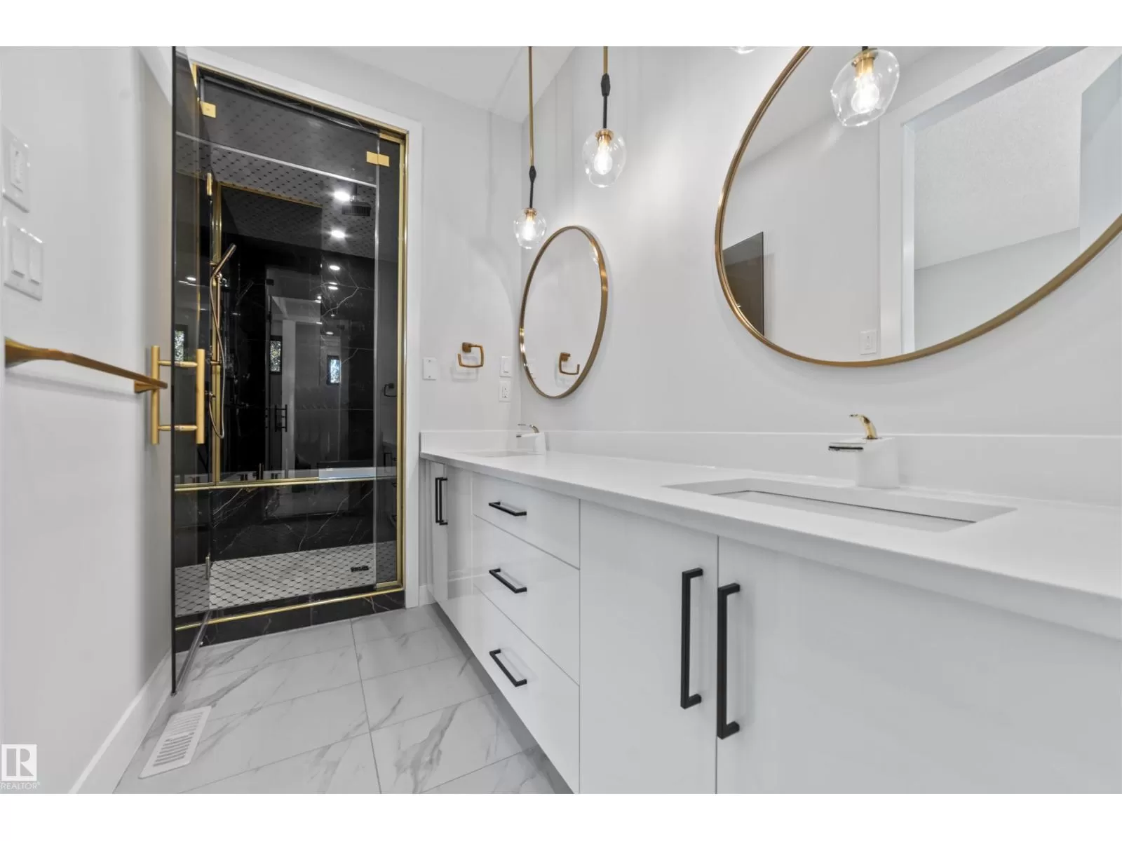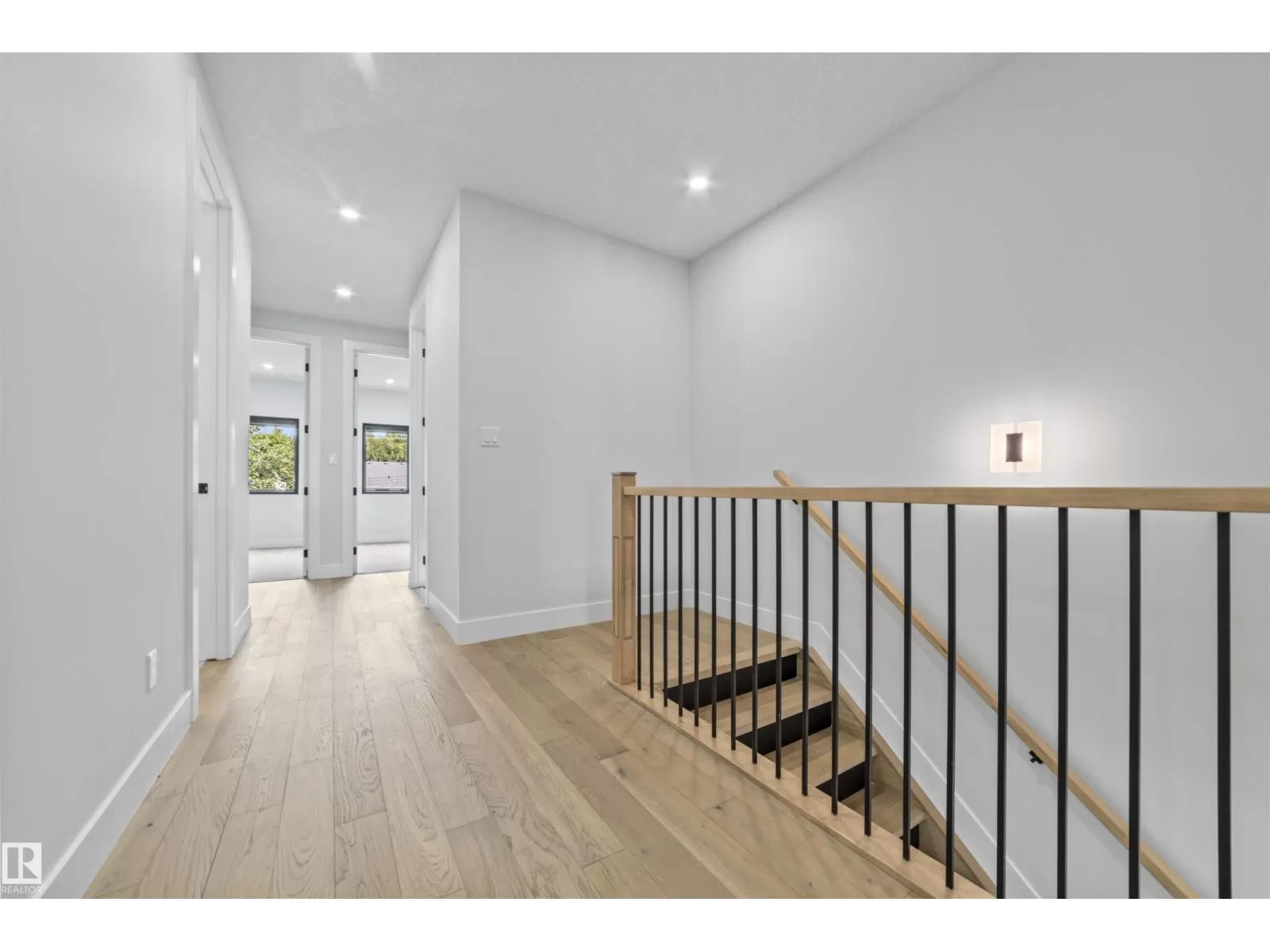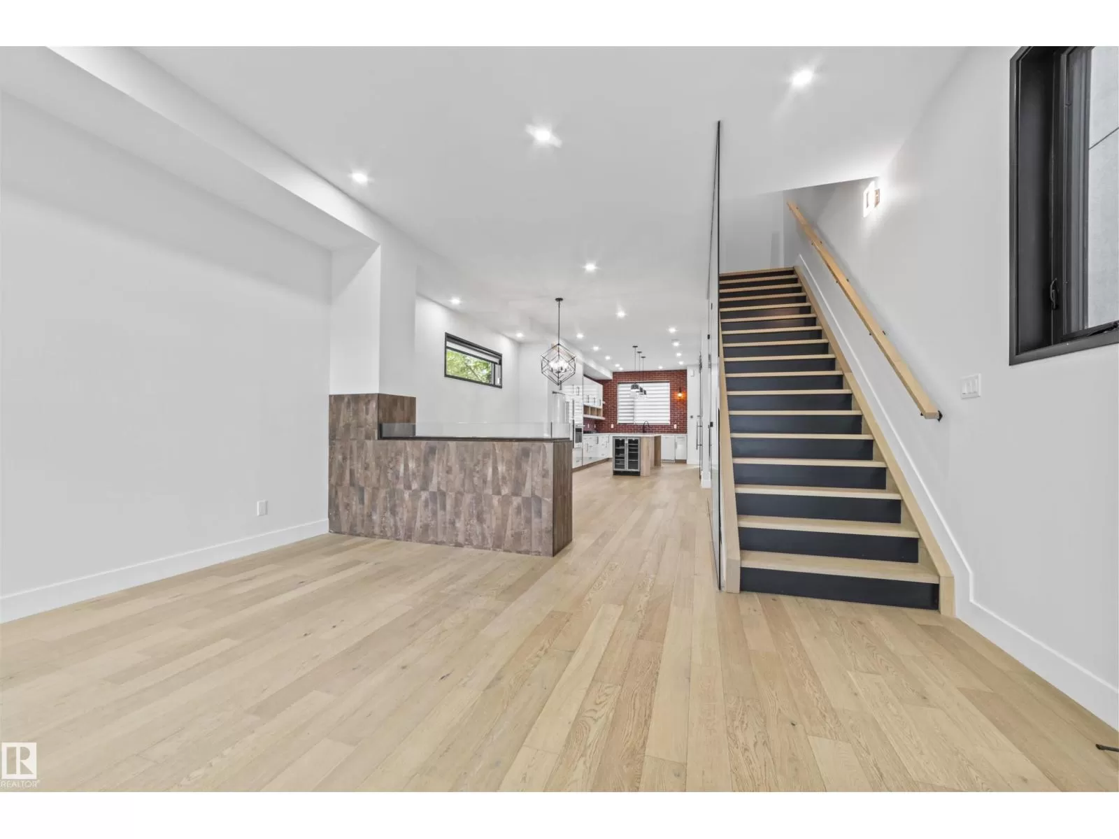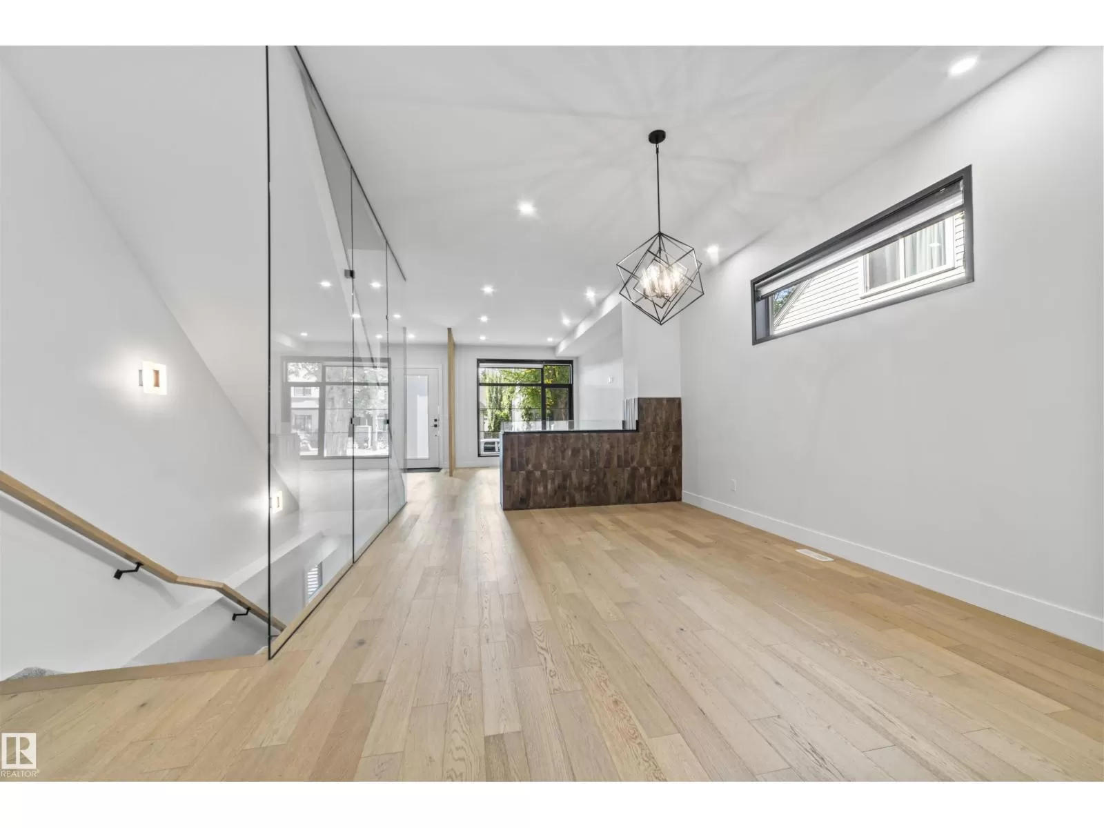Central living meets modern luxury in this custom-built two-storey, offering nearly 2,000 sq. ft. plus a fully finished basement with wet bar. Soaring 10â main floor ceilings, 9â upstairs, and expansive triple-pane windows fill the home with natural light. The chefâs kitchen features a gas cooktop, quartz counters, custom cabinetry, and bold brick backsplash that makes a statement. Enjoy designer details throughout: 8â doors, engineered hardwood, a spa-inspired ensuite with oversized tiled shower, and a stunning tiled bathroom. Built with striking curb appeal â acrylic stucco and metal accents â this home is both elegant and enduring. Every space is thoughtfully designed, from custom closets to the open-concept living areas perfect for entertaining. Steps to the Ravine, West Block, and minutes from Downtown, this is your chance to own in one of Edmontonâs most coveted neighbourhoods. (id:27476)
