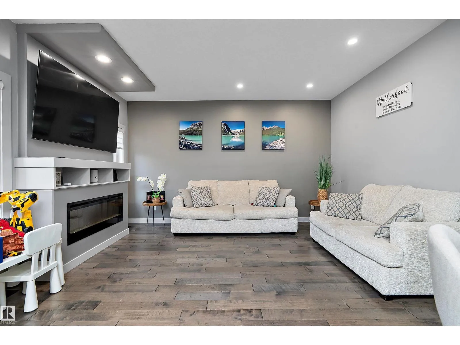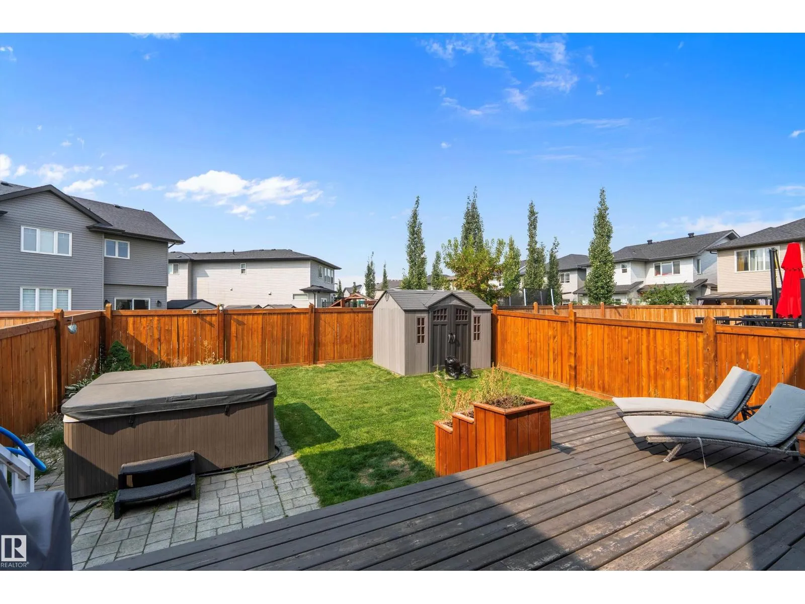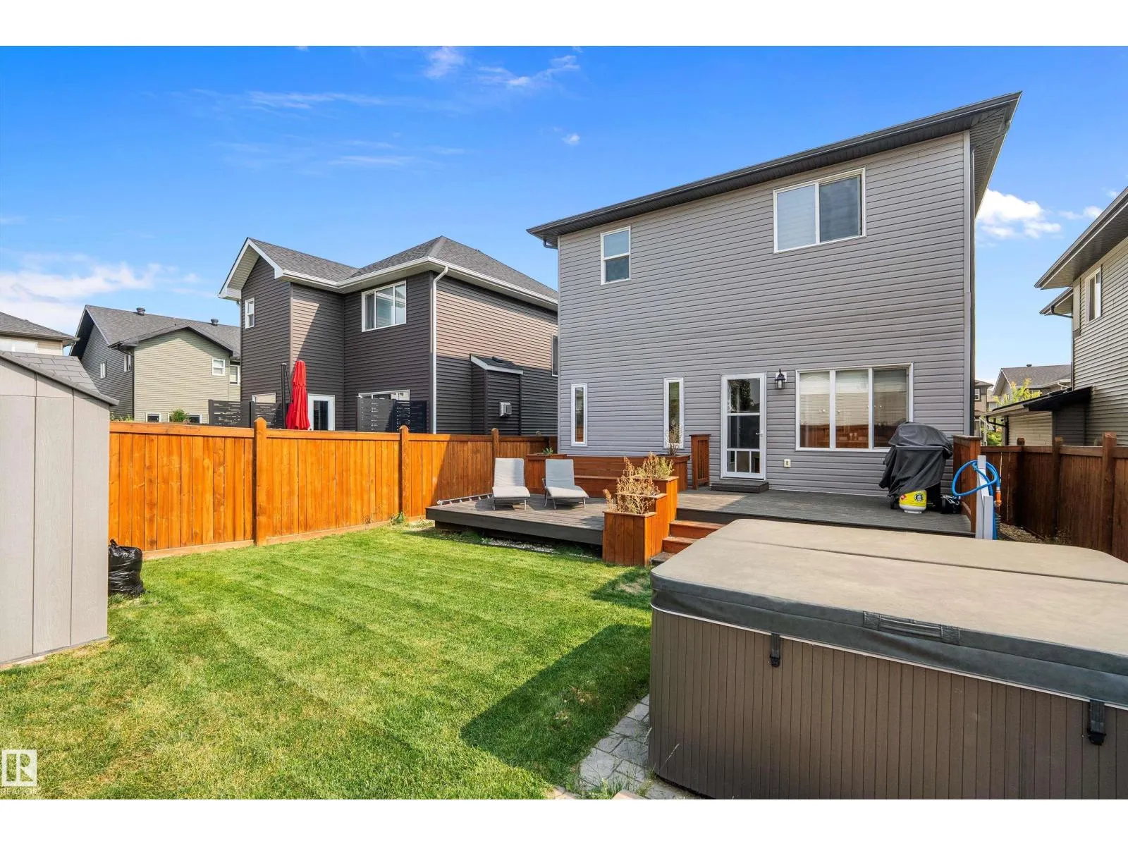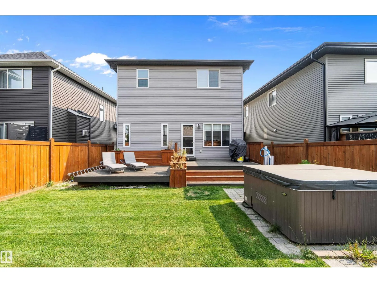 Welcome to this stunning family home in the highly desirable community of Secord! Featuring 5 bedrooms and 3.5 bathrooms, this property offers plenty of space for growing families. The main floor boasts 9-foot ceilings, hardwood and ceramic flooring, and a Chefâs Kitchen with stainless steel appliances (including a gas stove), granite countertops, large island with eating bar, and full-height cabinets with crown molding. The open living room with electric fireplace creates the perfect gathering space. Upstairs, enjoy a spacious bonus room with fireplace, a convenient laundry room, and a luxurious primary suite with 5-piece ensuite, dual vanities, soaker tub, and separate shower. The finished basement includes 2 more bedrooms and a full bathroomâideal for family or guests. The beautifully landscaped backyard with multi-tiered deck and patio is perfect for summer BBQs and entertaining. Close to the Henday, schools, parks, and transit, this home combines comfort and convenience in a fantastic location. (id:27476)