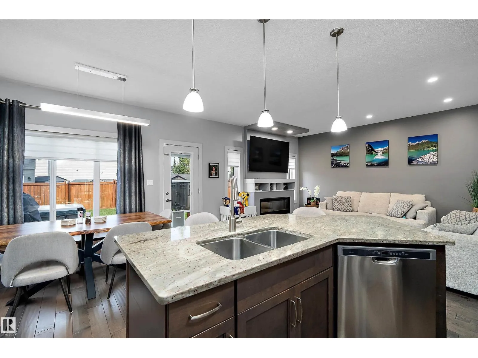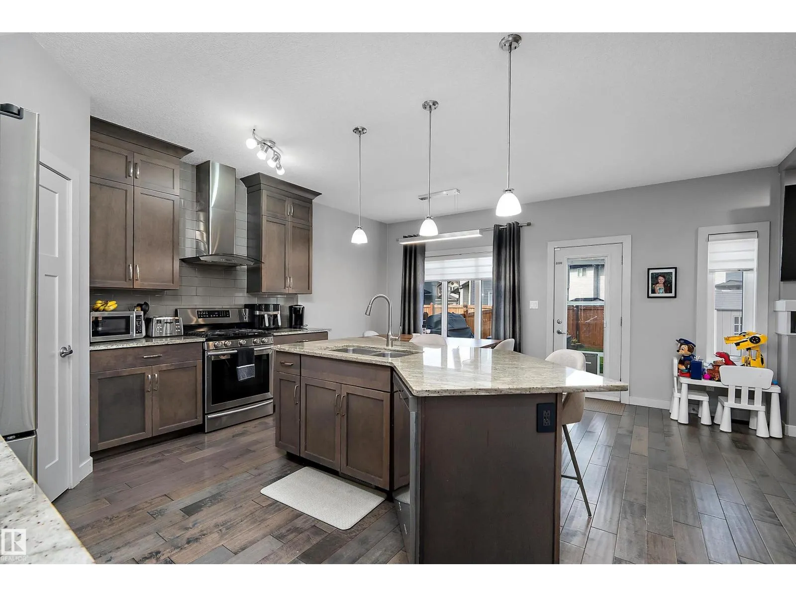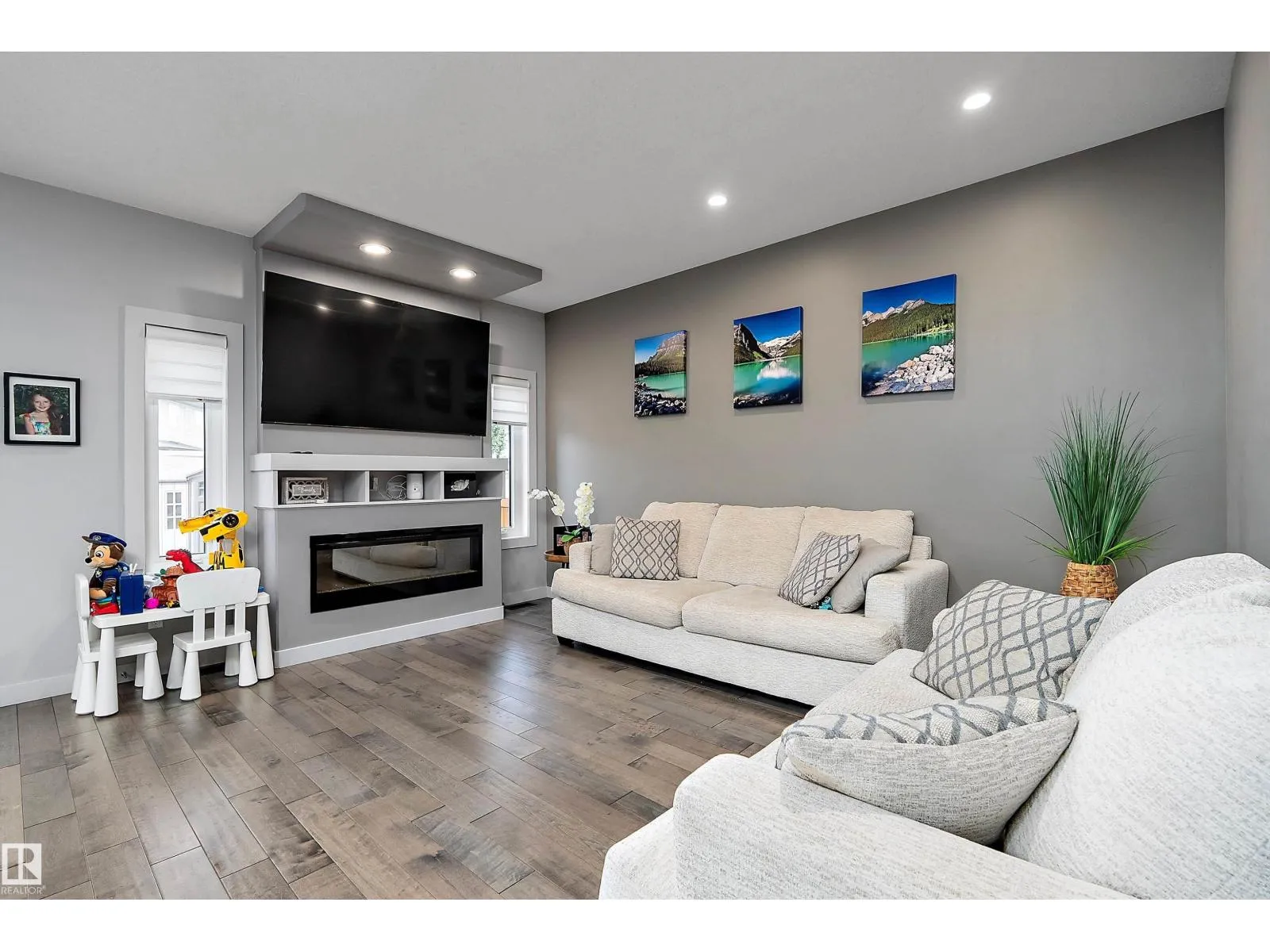 Welcome to this stunning family home in the highly desirable community of Secord! Featuring 5 bedrooms and 3.5 bathrooms, this property offers plenty of space for growing families. The main floor boasts 9-foot ceilings, hardwood and ceramic flooring, and a Chefâs Kitchen with stainless steel appliances (including a gas stove), granite countertops, large island with eating bar, and full-height cabinets with crown molding. The open living room with electric fireplace creates the perfect gathering space. Upstairs, enjoy a spacious bonus room with fireplace, a convenient laundry room, and a luxurious primary suite with 5-piece ensuite, dual vanities, soaker tub, and separate shower. The finished basement includes 2 more bedrooms and a full bathroomâideal for family or guests. The beautifully landscaped backyard with multi-tiered deck and patio is perfect for summer BBQs and entertaining. Close to the Henday, schools, parks, and transit, this home combines comfort and convenience in a fantastic location. (id:27476)