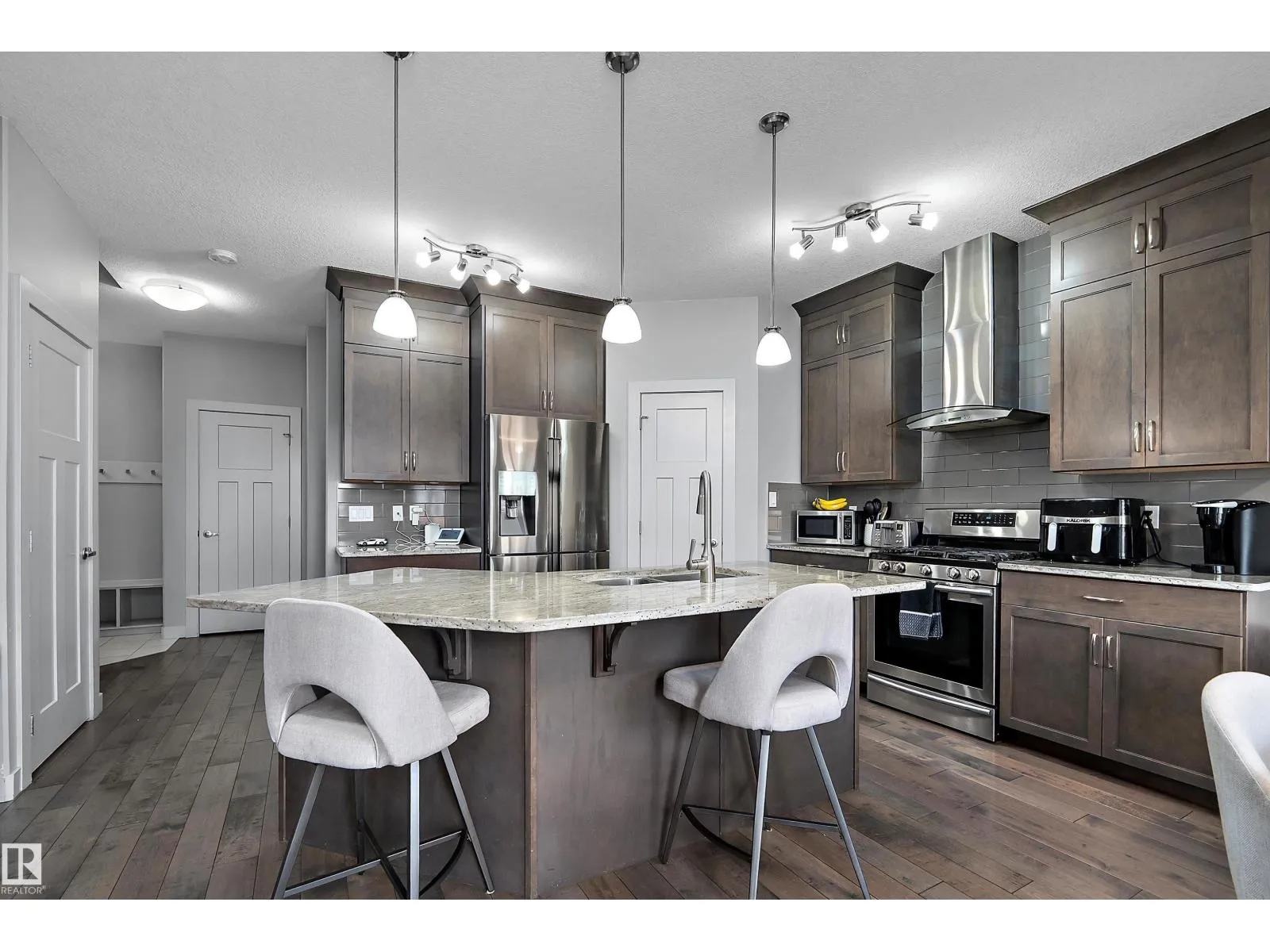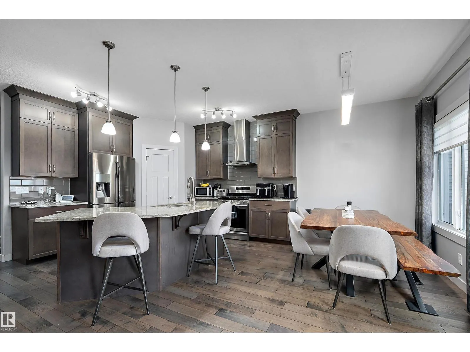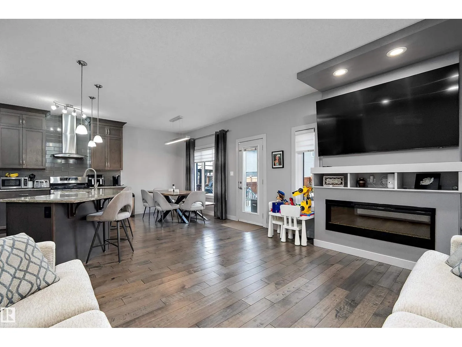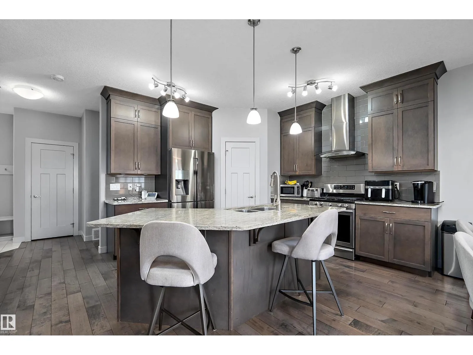 Welcome to this stunning family home in the highly desirable community of Secord! Featuring 5 bedrooms and 3.5 bathrooms, this property offers plenty of space for growing families. The main floor boasts 9-foot ceilings, hardwood and ceramic flooring, and a Chefâs Kitchen with stainless steel appliances (including a gas stove), granite countertops, large island with eating bar, and full-height cabinets with crown molding. The open living room with electric fireplace creates the perfect gathering space. Upstairs, enjoy a spacious bonus room with fireplace, a convenient laundry room, and a luxurious primary suite with 5-piece ensuite, dual vanities, soaker tub, and separate shower. The finished basement includes 2 more bedrooms and a full bathroomâideal for family or guests. The beautifully landscaped backyard with multi-tiered deck and patio is perfect for summer BBQs and entertaining. Close to the Henday, schools, parks, and transit, this home combines comfort and convenience in a fantastic location. (id:27476)
