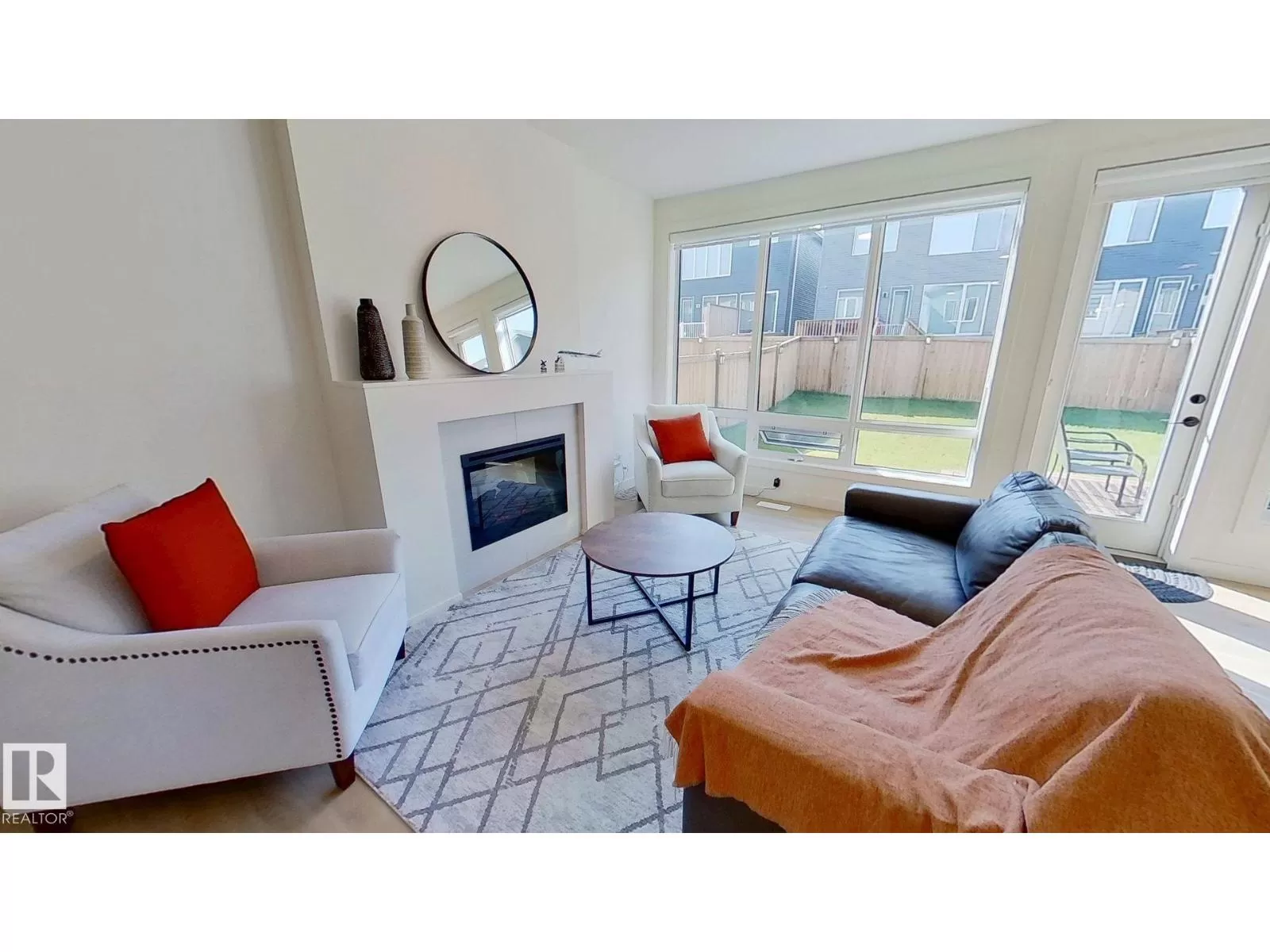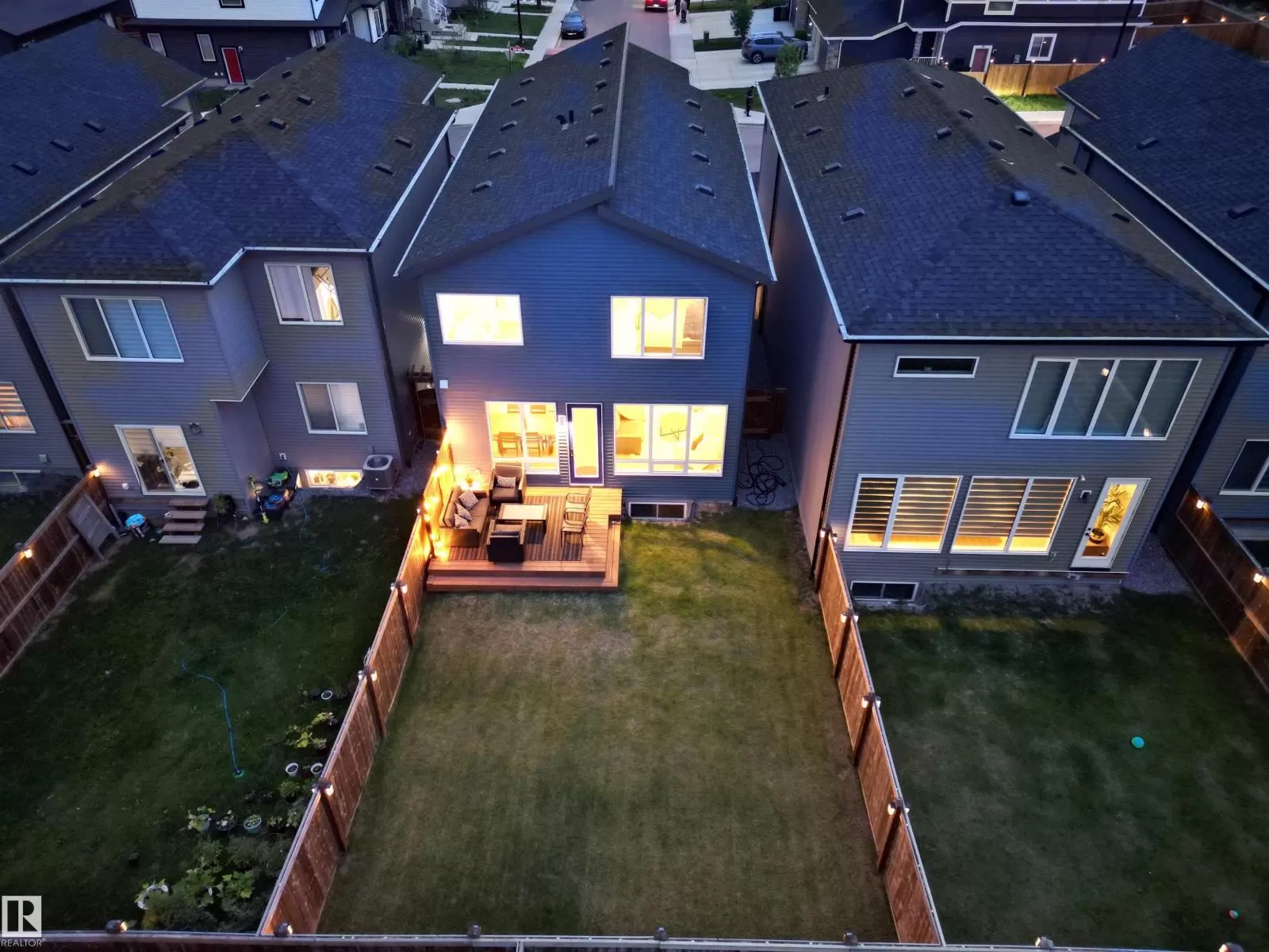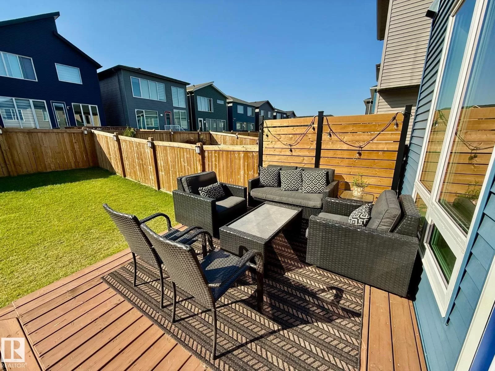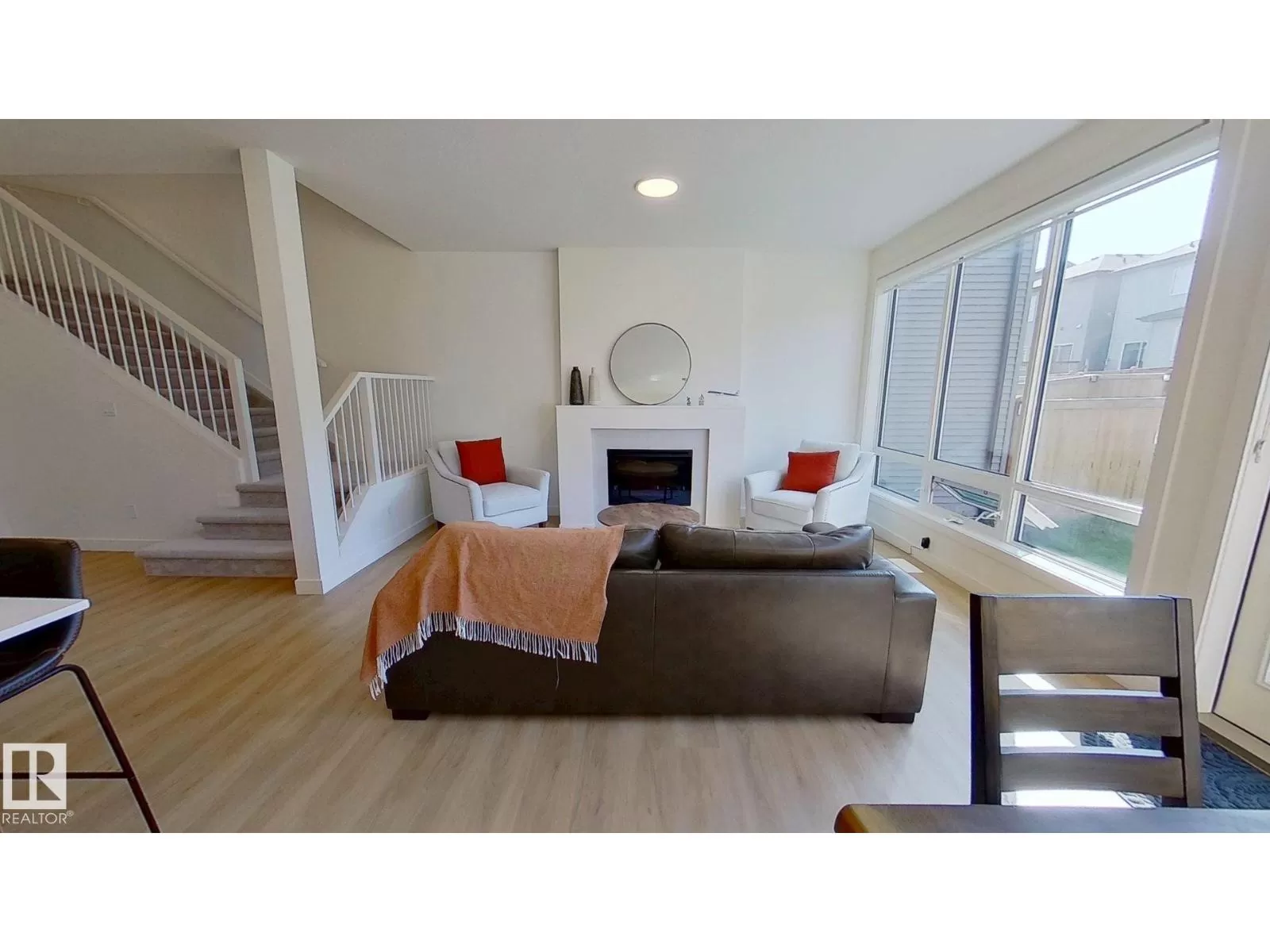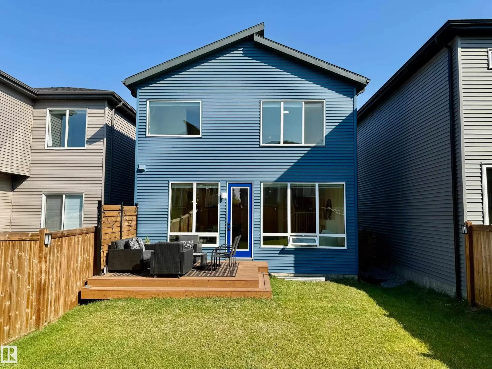 Located in the beautiful area of Orchards in Southeast Edmonton, near the airport, parks, shopping, and more, this stunning 1,978 sq ft home features a fully landscaped yard with a deck, an open-concept main floor, 4 well-sized bedrooms and 2.5 bathrooms. Built in 2022, the main floor of this modern home features a gorgeous open kitchen with a large island, a living area with a fireplace, and 9 ft. ceilings. The second floor features a stunning primary suite with a spa-inspired en-suite, including a large soaker tub, standing shower, and 2 sinks, and a large walk-in closet. On the second floor, there are also 3 spacious guest bedrooms, an additional bathroom, laundry area, and a lounge/theatre room. The basement is unfinished, with a side entrance that is ideal for developing a rental suite or entertainment area. The rear of this home faces south, featuring large windows that allow in plenty of natural light. This home is in a family-friendly area. (id:27476)