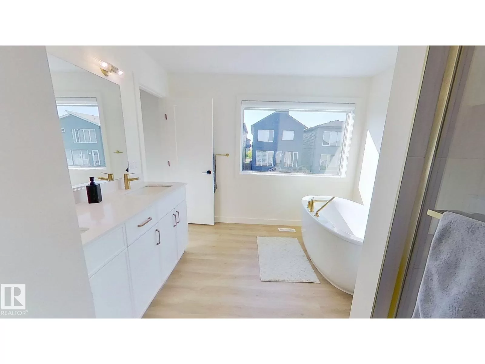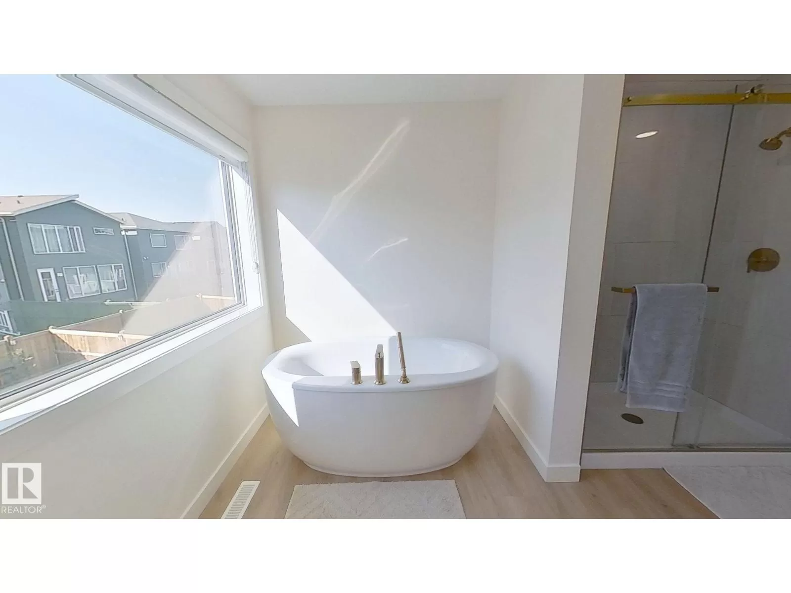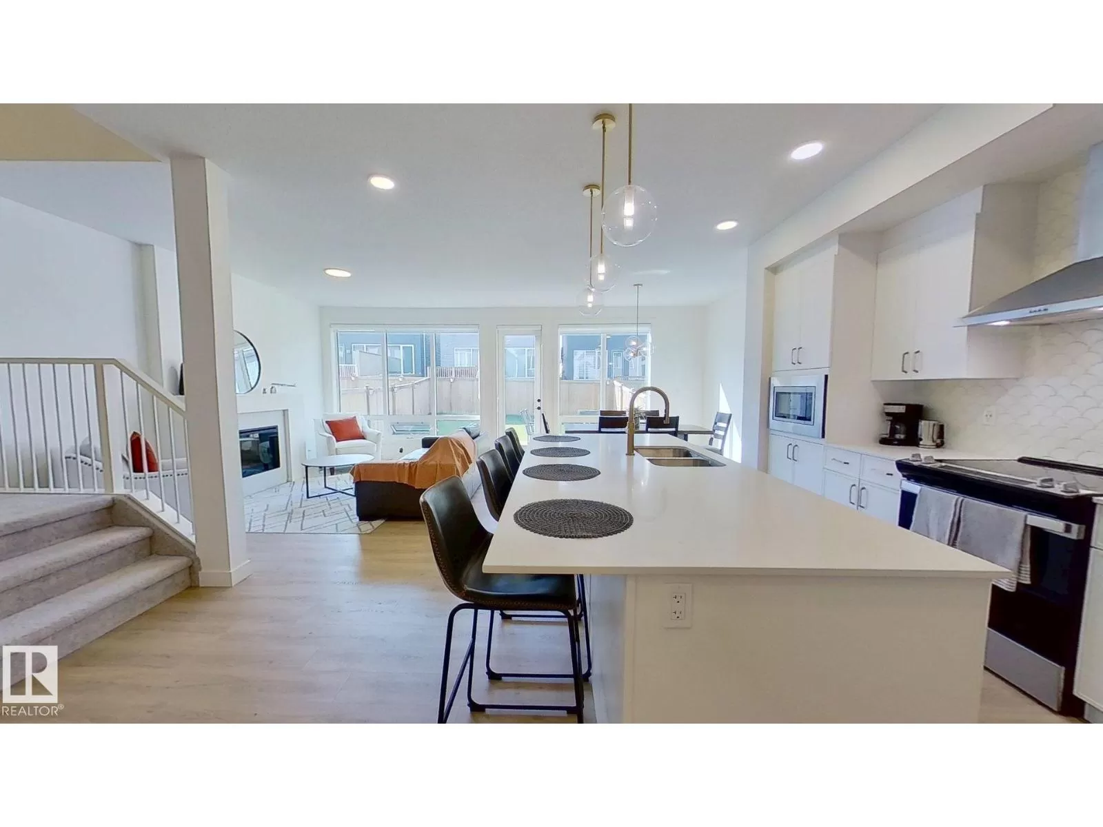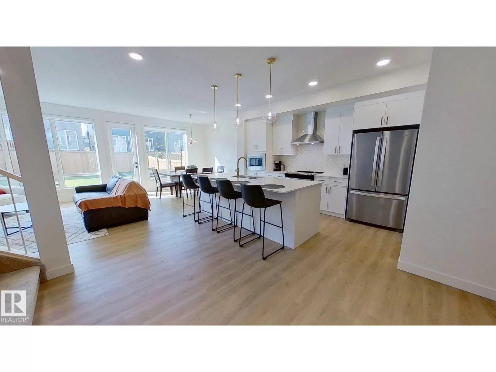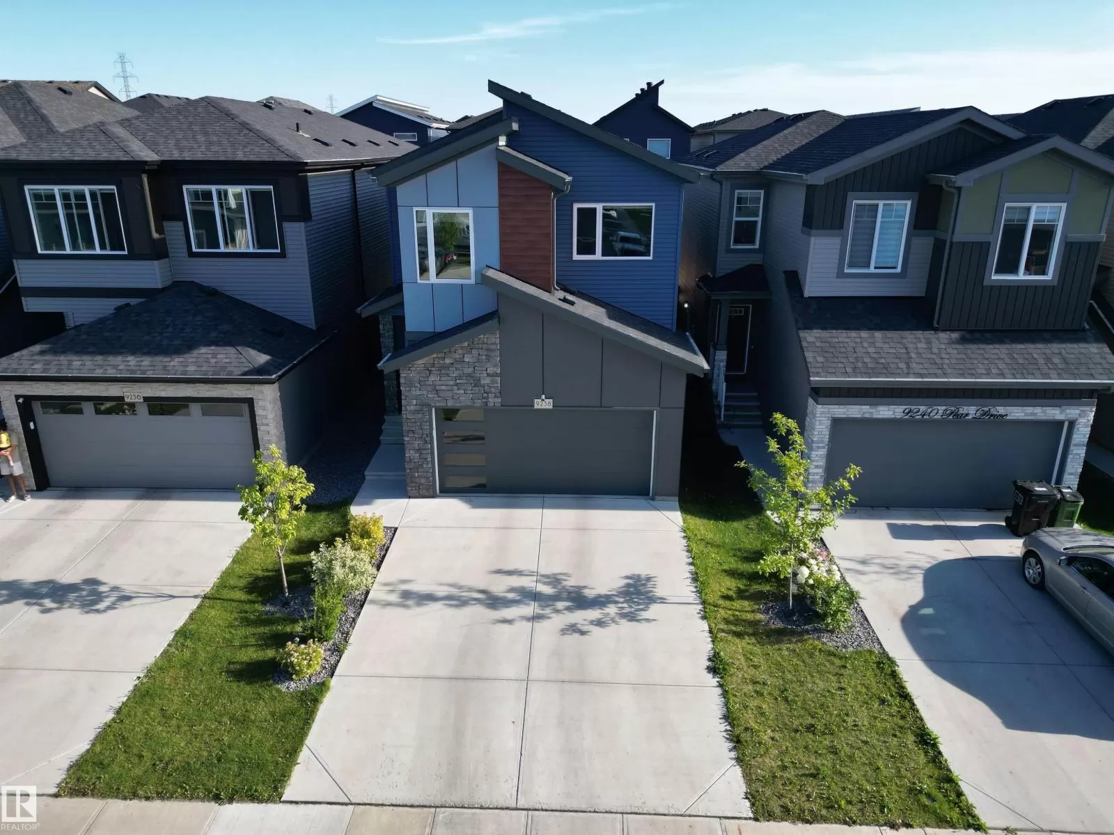 Located in the beautiful area of Orchards in Southeast Edmonton, near the airport, parks, shopping, and more, this stunning 1,978 sq ft home features a fully landscaped yard with a deck, an open-concept main floor, 4 well-sized bedrooms and 2.5 bathrooms. Built in 2022, the main floor of this modern home features a gorgeous open kitchen with a large island, a living area with a fireplace, and 9 ft. ceilings. The second floor features a stunning primary suite with a spa-inspired en-suite, including a large soaker tub, standing shower, and 2 sinks, and a large walk-in closet. On the second floor, there are also 3 spacious guest bedrooms, an additional bathroom, laundry area, and a lounge/theatre room. The basement is unfinished, with a side entrance that is ideal for developing a rental suite or entertainment area. The rear of this home faces south, featuring large windows that allow in plenty of natural light. This home is in a family-friendly area. (id:27476)