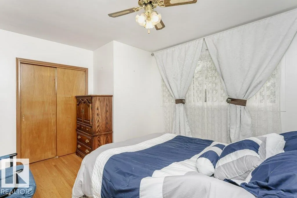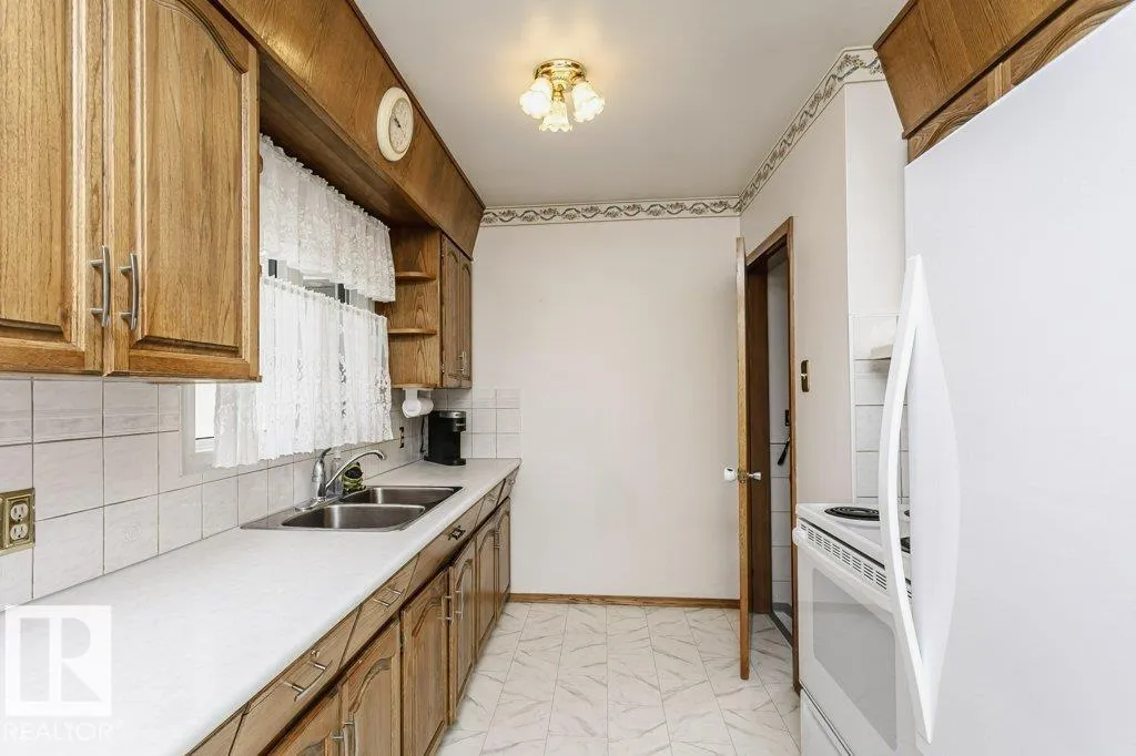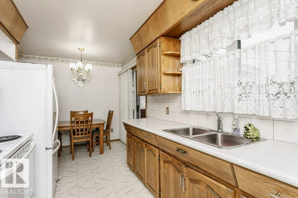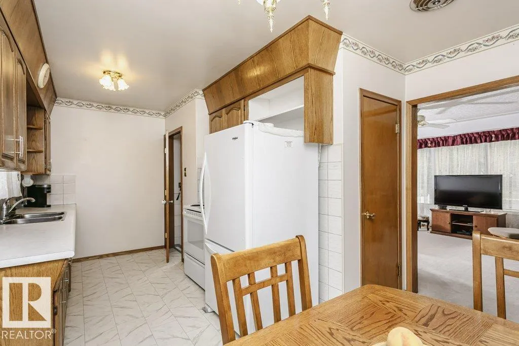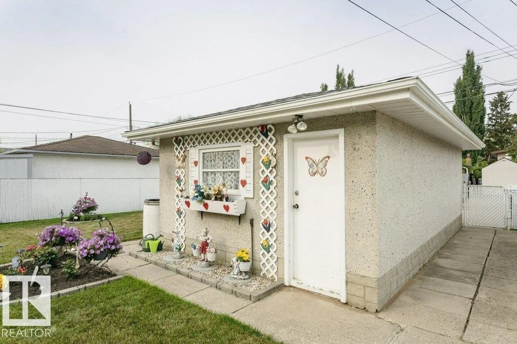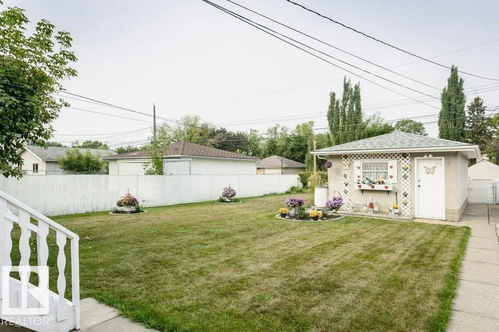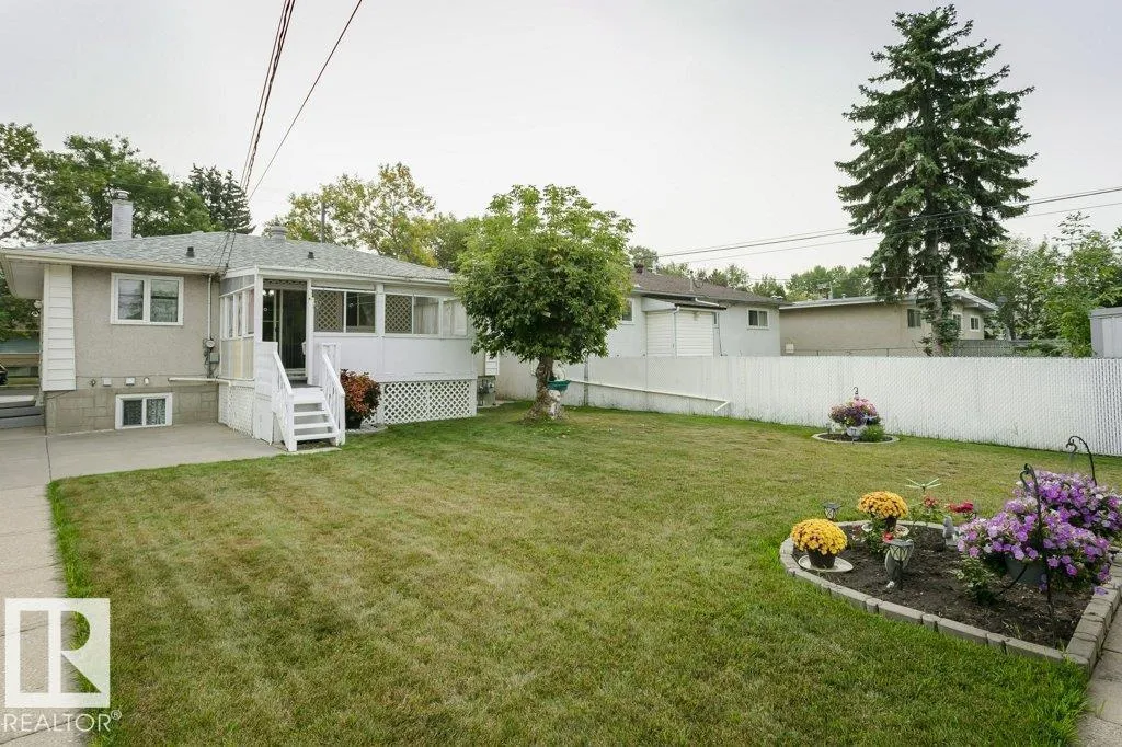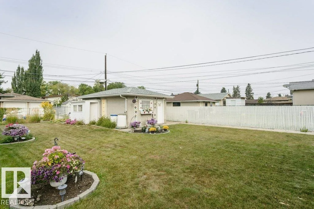 Original Owner! Offering 2+1 bedrooms and 2 full bathrooms, this homeâs main floor features original hardwood in both bedrooms, new laminate in the kitchen with patio doors leading to the covered deck, plus a bright living room with a large window and classic wood wall paneling. The fully finished basement includes a spacious family room, summer kitchen, bedroom, and bathroom. Recent updates include new linoleum in the kitchen, hallway, and front entry (2019), Whirlpool bottom-freezer fridge (2021), updated windows (1996â2021), roof on house (2017) and garage (2023), hot water tank (2018), and a Steelcraft overhead garage door with opener (2010). The huge west-facing yard is fully fenced with chain link and slats, landscaped front and back, and offers a garden plot, fenced parking pad for a vehicle or camper, and a tree-lined boulevard. Close to parks, schools, pools, rinks, shopping, banking, bus routes, and a nearby fire station, this home blends character, updates, and convenience in one great package. (id:27476)