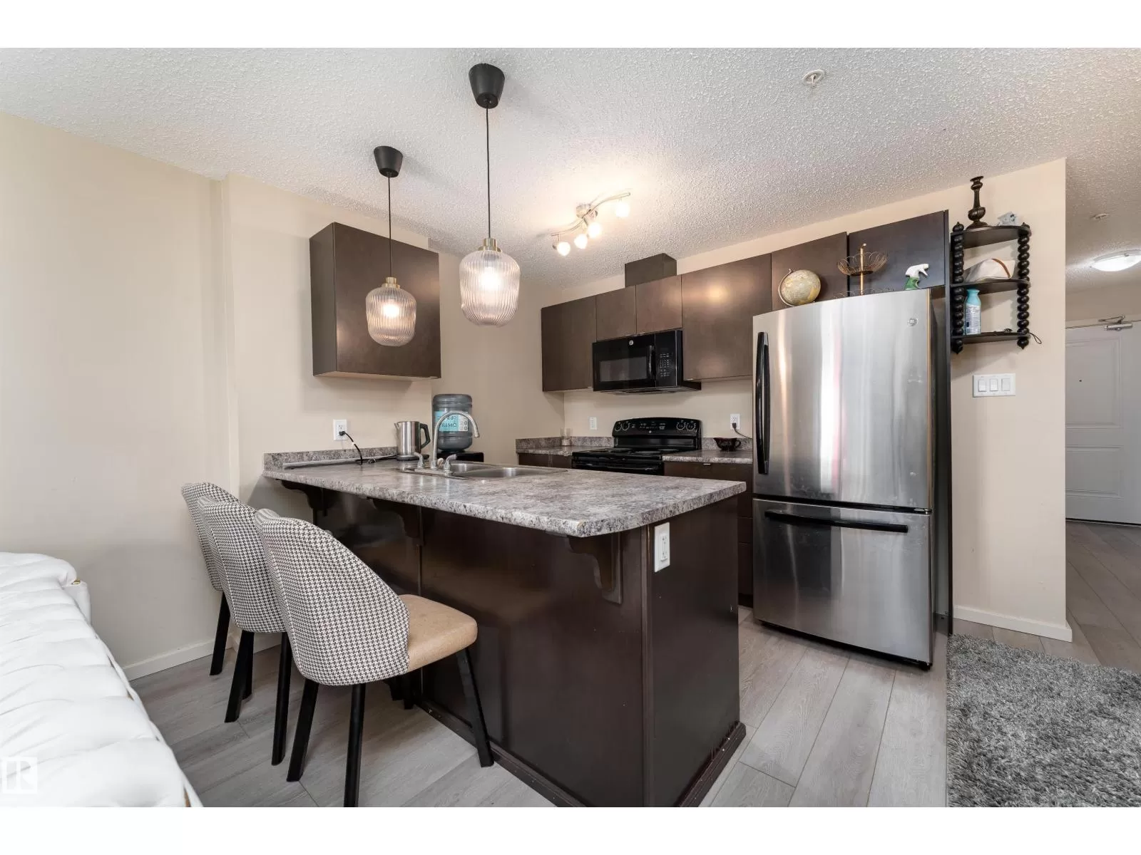 Discover this stunning 716 sq ft 2 bedroom, 2 full bath condo in the highly sought after Elements at Windermere. From the moment you walk in, you are greeted by a bright west facing layout that bathes the home in natural sunlight. The modern kitchen is a showstopper with rich espresso cabinetry, loads of counter space, and storage. Both bedrooms are oversized, with the primary offering a walk in closet and private ensuite that feels like your personal retreat.The main bedroom and entrance bathroom feature new vinyl flooring. Step outside onto the balcony where you can sip your morning coffee, soak in the warmth of the afternoon sun, or unwind in the evening while watching the sunset. Comforts include in suite laundry and a titled parking stall. The location makes life effortless with Windermere Golf and the Currents of Windermere Shopping Centre offering grocery stores, restaurants, and a Cineplex VIP Theatre. With easy access to Anthony Henday, this condo perfectly blends style, comfort, and convenience. (id:27476)