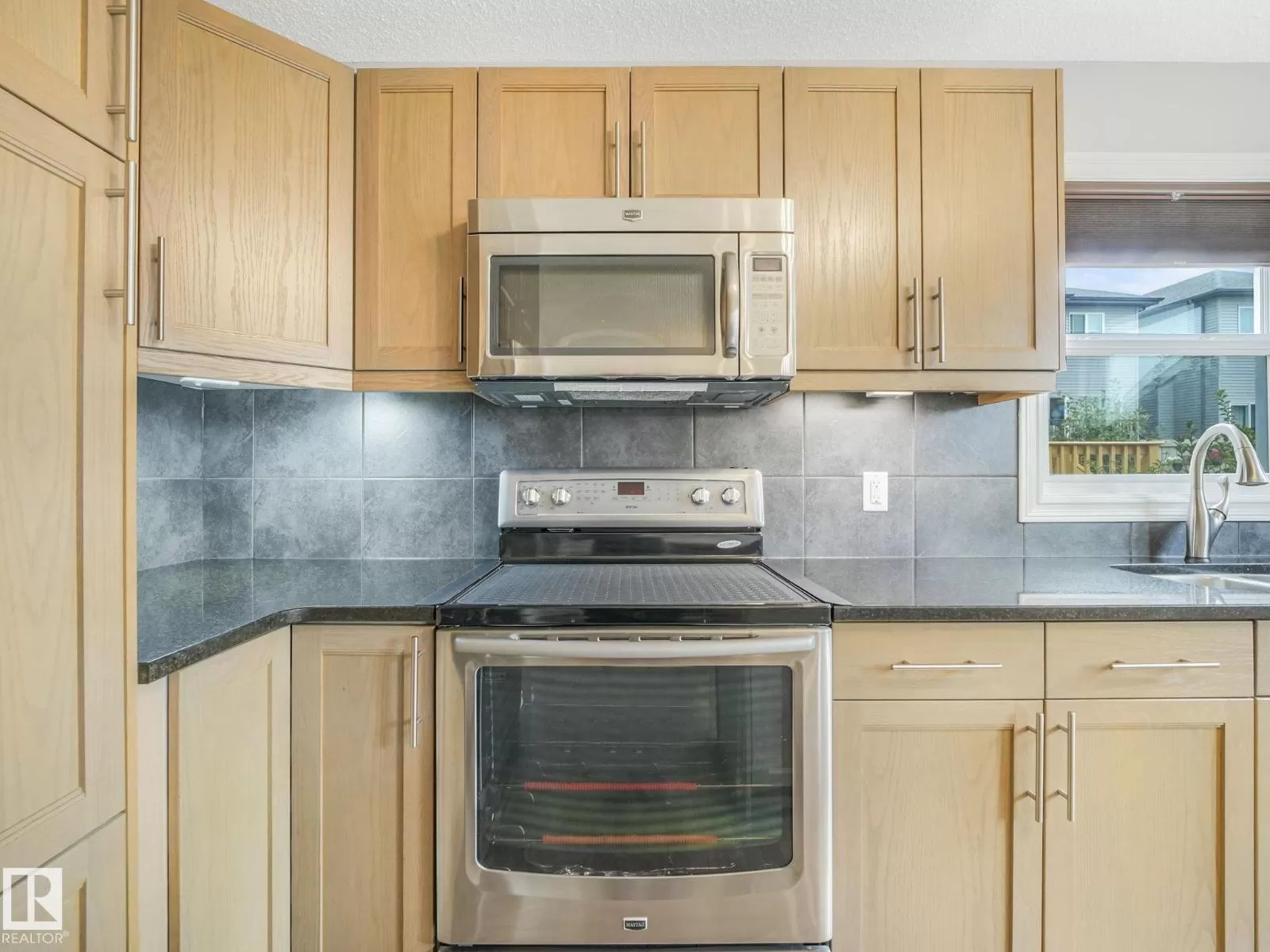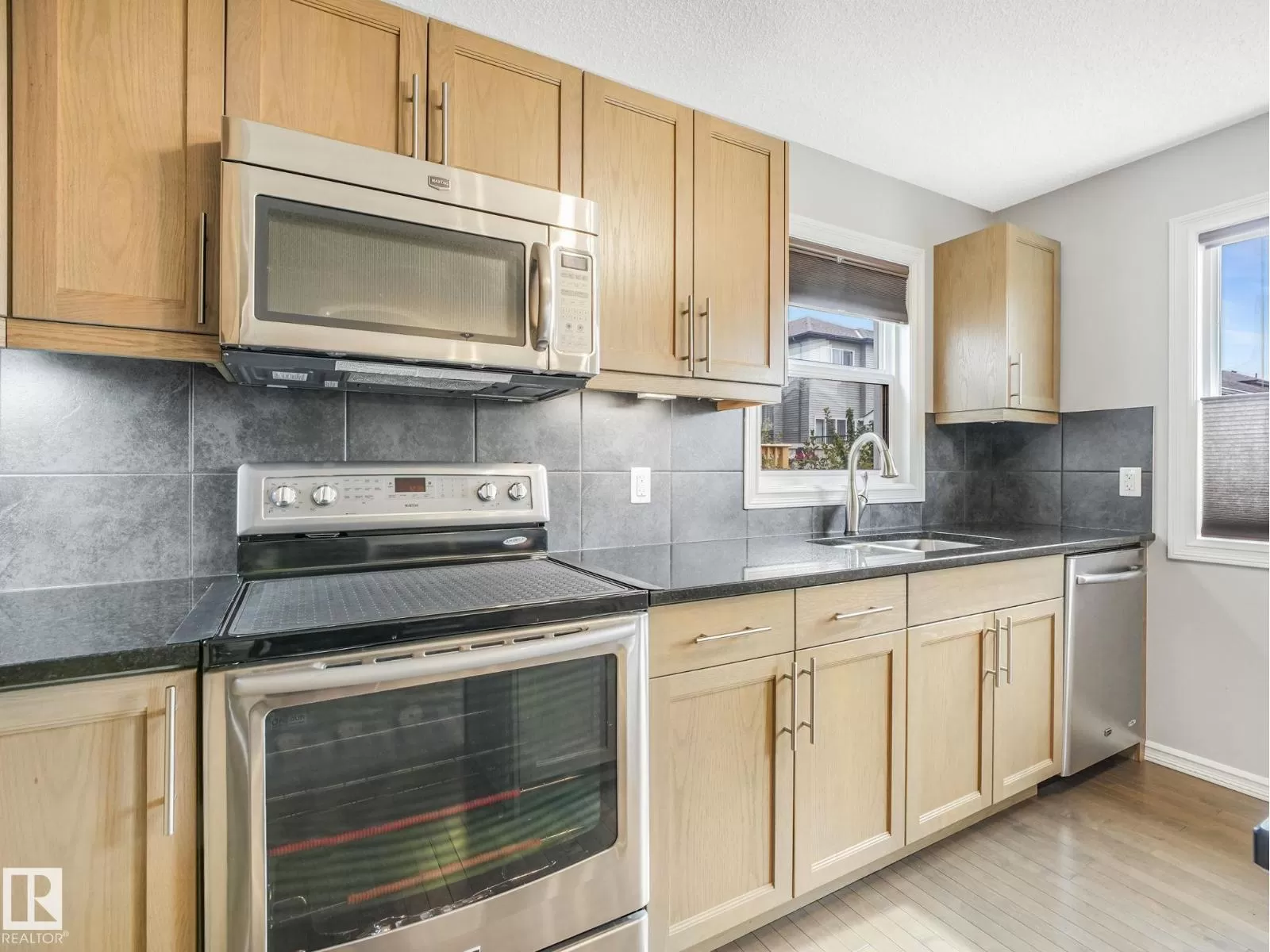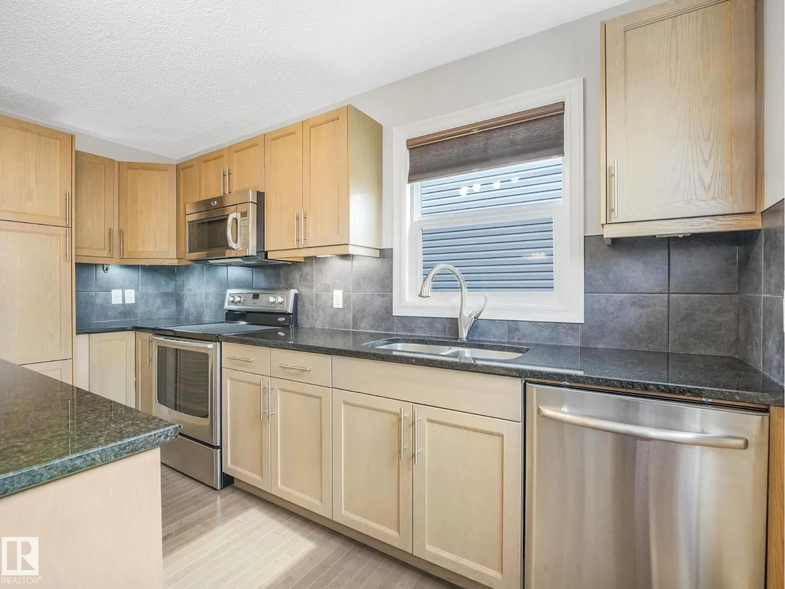 Need a FINISHED BASEMENT for the family? This immaculate home will not disappoint! With too many upgrades to mention, this air-conditioned home features a clever, open concept floor plan w hardwood through out main floor. Step in from the front veranda (so nice on a summer evening!), to your large, bright living room. The adjoining kitchen features granite counters, top of the line stainless steel appliances, eating bar & dining nook w large windows, and a 1/2 bath. Which leads to an oversized deck - great for family get-togethers with meticulous landscaping. Upstairs you'll find 2 master suites with walk in closets and there own ensuites! Downstairs you'll find a RARE FULLY-FINISHED BASEMENT, complete with a 3rd bedroom, gorgeous bath, large family room and top end laundry. Custom blinds, great mechanicals, MASSIVE OVERSIZED DBL GARAGE (24 by24) with paved back lane access. Located near walking trails and nature reserves with easy access to the Anthony Henday. Fantastic opportunity! (id:27476)