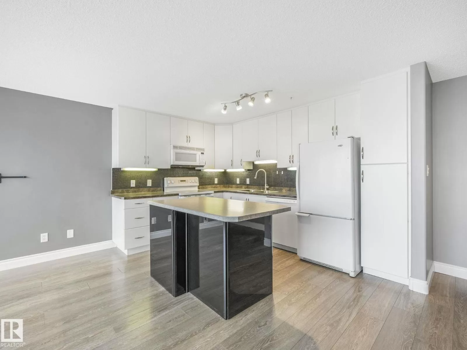 Do you enjoy lots of natural light? The Living room and Kitchen area are blessed with a wall of floor to ceiling windows. A wonderful, spacious floor plan, one of the largest units in the bldg. 2 bedrooms PLUS A DEN. Modern open concept is perfect for personal convenience and for entertaining. The kitchen has been upgraded with a large center island,designer back splash, pot drawers and a garborator. Enjoy the convenience of an in suite laundry room and generous storage. You will love the comfortable master bedroom with adjoining 4 piece bath. Check out the complexes amenities with underground parking, 4th floor outdoor patio, an exercise room, social and games room plus exterior walkways to the lake. You also have a caged storage area with your titled parking stall. Lots of new shopping, restaurants and conveniences are along 127th street which is only minutes away plus a quick access to the Anthony Henday makes the location premier! (id:27476)