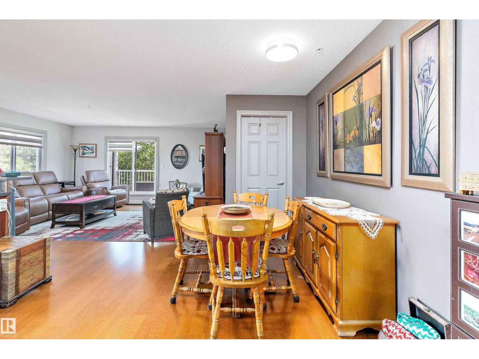 Check out this fantastic corner unitâa beautifully maintained 2 bed, 2 bath condo in South Edmonton offering nearly 1100 sq ft of stylish, functional living space. Enjoy a bright open-concept layout with a spacious entryway and a built-in nook perfect for a home office setup. The smart floorplan places the bedrooms on opposite sides for added privacy, with the primary suite featuring a generous walk-through closet and a 3-piece ensuite with a large shower. The upgraded U-shaped kitchen boasts rich cherry cabinets, a tile backsplash, and a cozy breakfast bar. This unit includes 2 titled parking stalls (1 underground, 1 surface), a same-floor storage locker, a generous, private balcony and optional furnishings like a full living room set, desk, and bedroom furnitureâjust move in and enjoy! Conveniently located near the side entrance and just steps from all of life's necessities including shopping, restaurants and more! Truly one of the best condos in the areaâdonât miss this one! (id:27476)