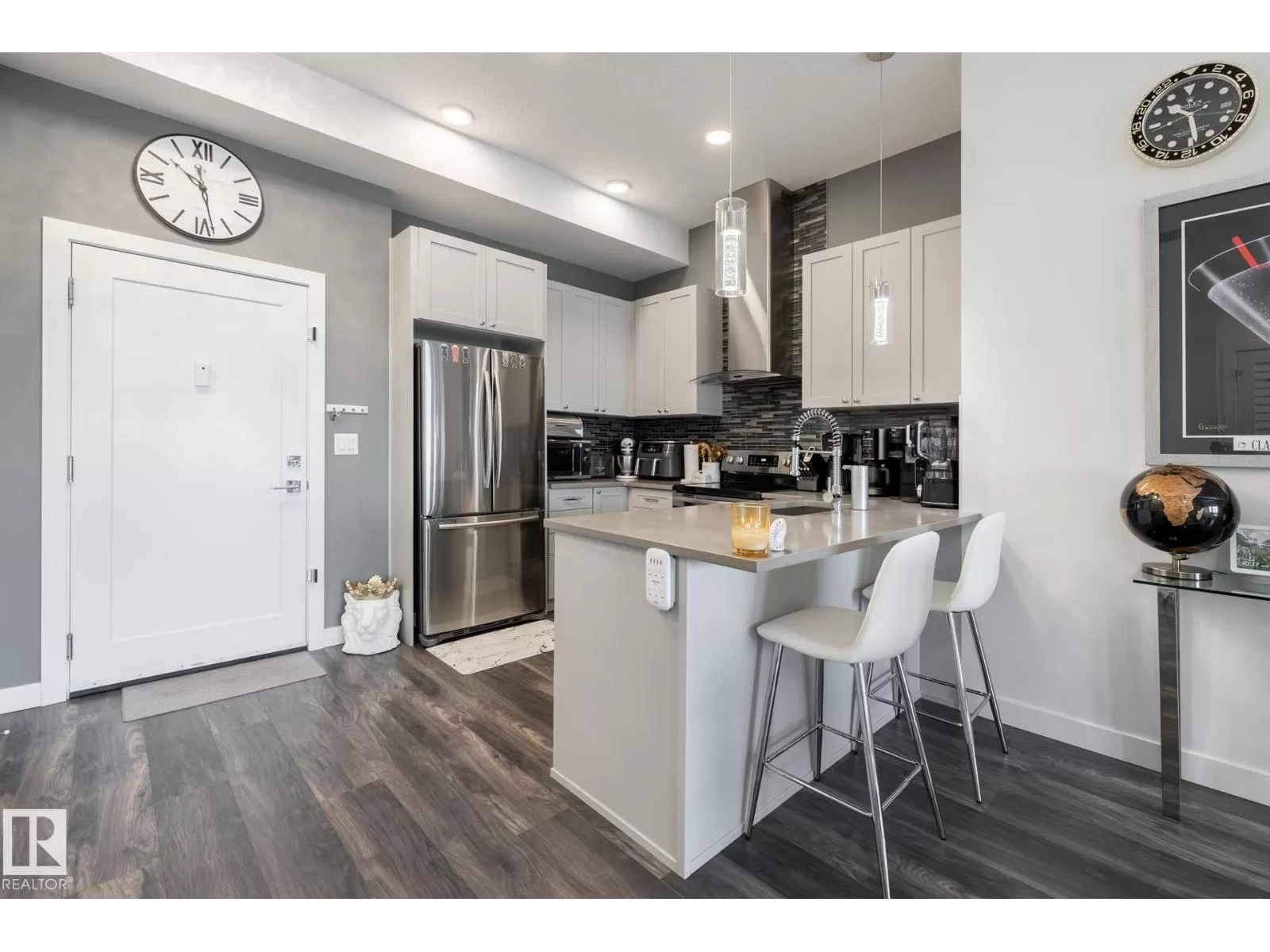 Are you looking for an Executive style condo in a secure exclusive location. Welcome to this amazing Condominium unit in Lux at Upper Windermere a luxury Condominium built of steel and concrete. This condo unit has two bedroom, two bathrooms plus den. Open concept floor plan, 9' ceiling, gourmet kitchen, white cabinets, quartz countertops, stainless steel appliances, canopy hood fan. Custom closets on the master bedroom. The in- floor heating offers superior comfort on the bathrooms. The bedrooms are a good size, in-suite laundry. A/C available. A beautiful view from the balcony facing the pond. Peaceful and relaxing. Two title, heated underground parking. Great access to all amenities, walking distance to shopping, restaurants. (id:27476)