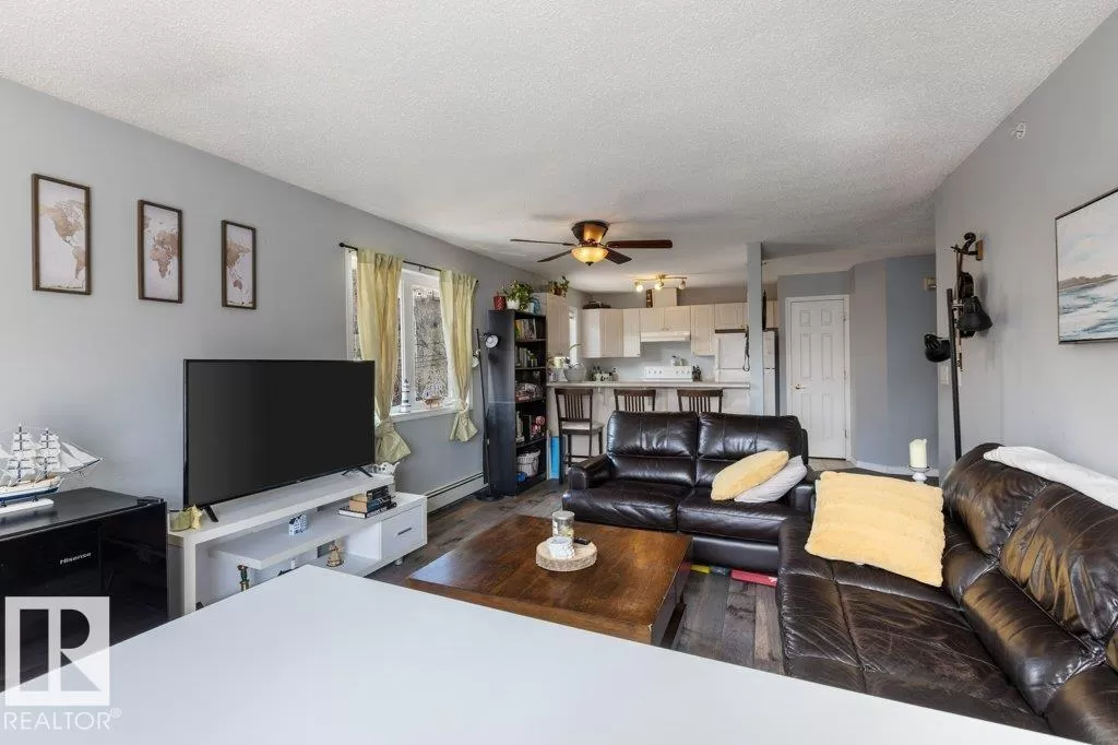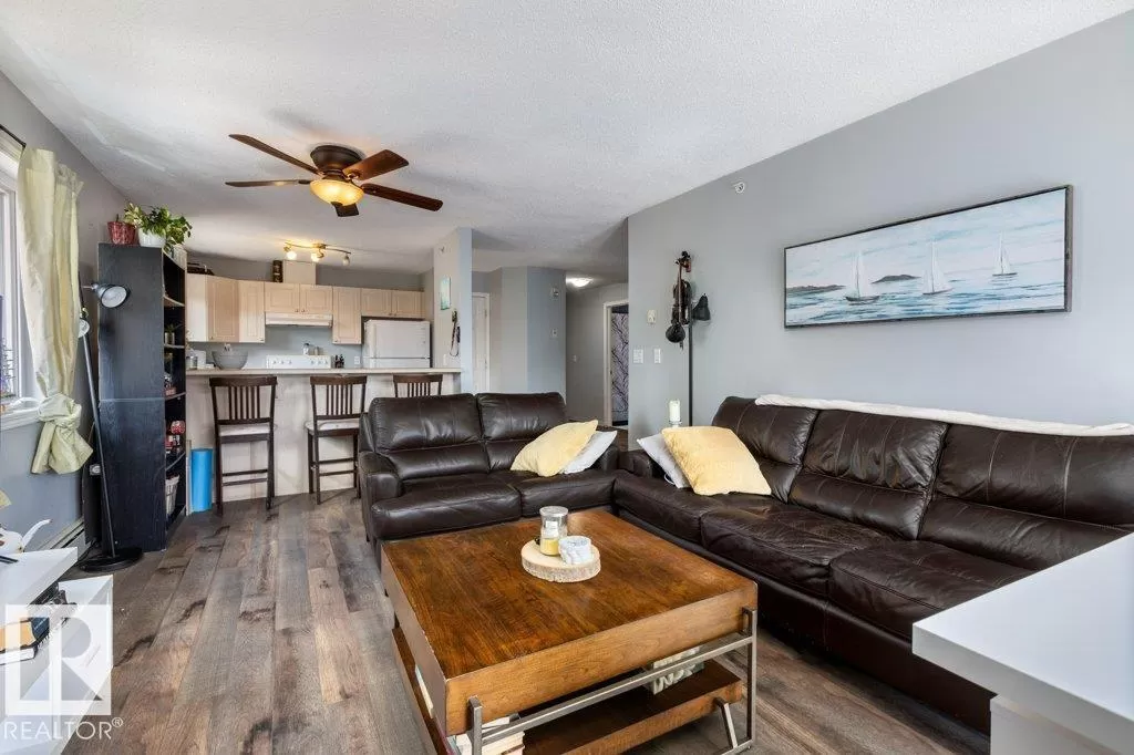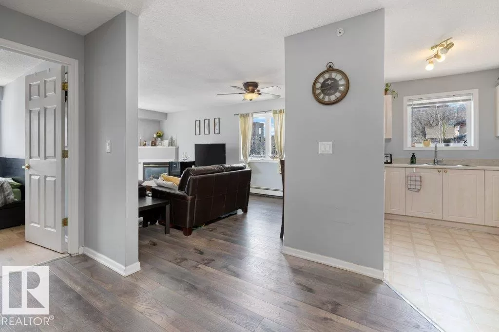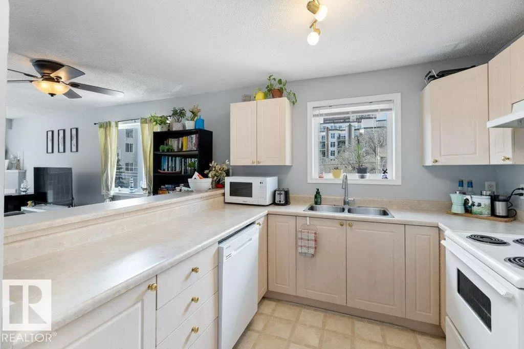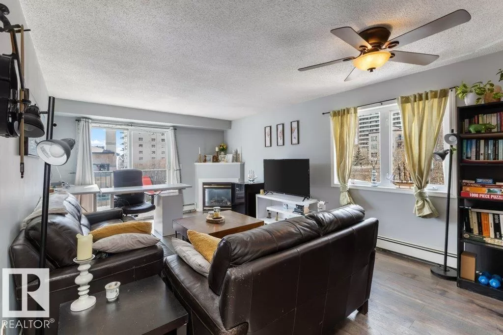 WOW! If you're looking for an incredible condo downtown, close to the river valley, Grant Macewan, transit, U of A, and so many amenities look no further! This condo is a stunning south-facing, top floor, corner unit, with breathtaking views. it is a beautifully updated 2-bedroom, 2-bathroom, offering a perfect blend of comfort, style, and convenience. Walk in to discover brand-new flooring that flows seamlessly throughout the open-concept living space. The unit is flooded with natural light thanks to its south-facing exposure, creating a warm and inviting atmosphere from morning to evening. Enjoy cooking in the well-appointed kitchen, relax in the spacious living room with a gas fireplace, or stepping out onto the large private balcony to take in panoramic views - perfect for morning coffee or evening sunsets. This unit also provides ease and comfort with it's in-suite laundry and titled underground heated parking. The building Includes a gym, courtyard and social room. (id:27476)
