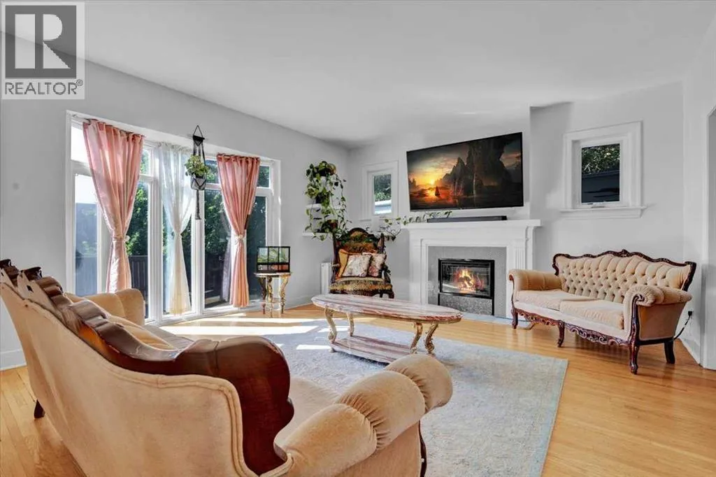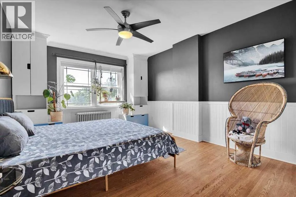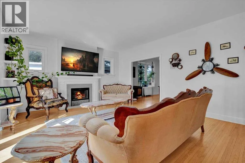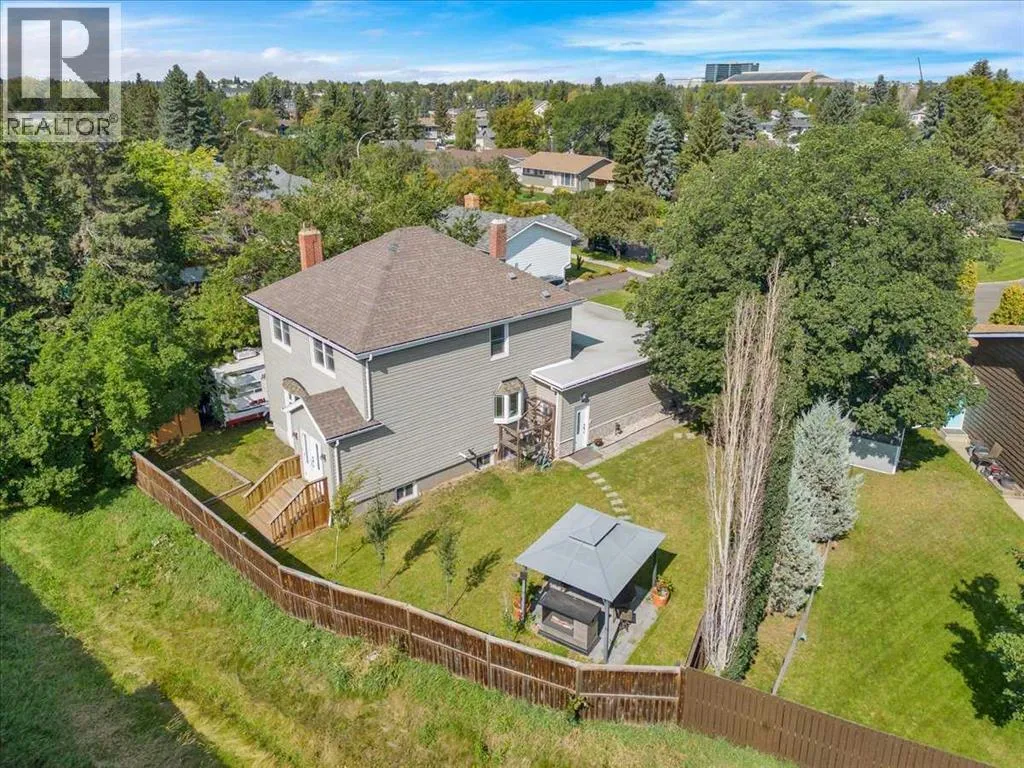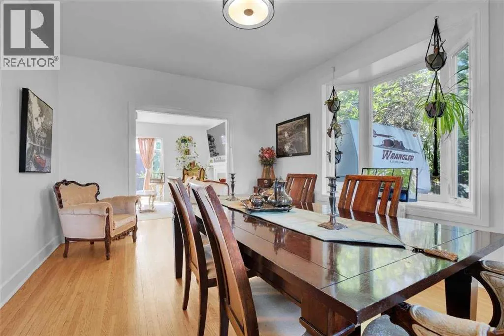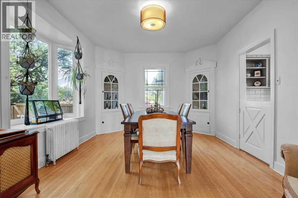 Once upon a time in 1940 this property was an Estate Ranch Home. City of Edmonton has grown around this charming character home! 4-LARGE BDRMS | 2-FULL BATH | ORIG. HARDWOOD FLOORS | 10ft CEILINGS | TRIPLE-PANE WINDOWS |SPACIOUS DINING ROOM & VINTAGE BUILT-IN CABINETRY | DUTCH & FRENCH DOORS | HEATED DOUBLE GARAGE |PIE-LOT. With over 1800 + sq ft. this home over the years has been loved and very well-maintained. The entrance has vinyl flooring extending into the basement. Hardwood flooring on main and upper level as well as the staircase. Beautiful cabinetry in the kitchen, quartz countertops and stainless-steel appliances. Dutch doors to and from the kitchen. A spacious dining room for hosting family and friends or your favourite Realtors for all occasions! Relax or entertain in the living room. Large windows with beaming sunlight or cozy up next to the fireplace. The upper-level bathroom has been renovated STUNNING! Large bedrooms with walk-in closets. The Primary room is massive with a walk-in closet and patio doors. This ranch home is very spacious with the large bedrooms unlike most homes build in this era. The lower level has an endless amount of storage. Large laundry room. BRAND NEW BOILER SYSTEM INSTALLED in August 2025 ($20K). Another large bedroom with 3-piece bathroom and a cozy flex or den room. A LARGE HEATED GARAGE with a driveway that can accommodate many visitors. Enjoy a garden Party with this enormous backyard on the deck off to the side or sit under the Pergola. Summer fun or Winter Wonderland! RV Parking, if needed. This pie-shaped offers you loads of space for flower beds or vegetable gardens with a shed for garden tools. It is an incredibly unique home with lots of history and character. The original entrance to the home faces the backyard. Close to all amenities and easy access in and out of the community. YOUR NEW HOME! (id:27476)