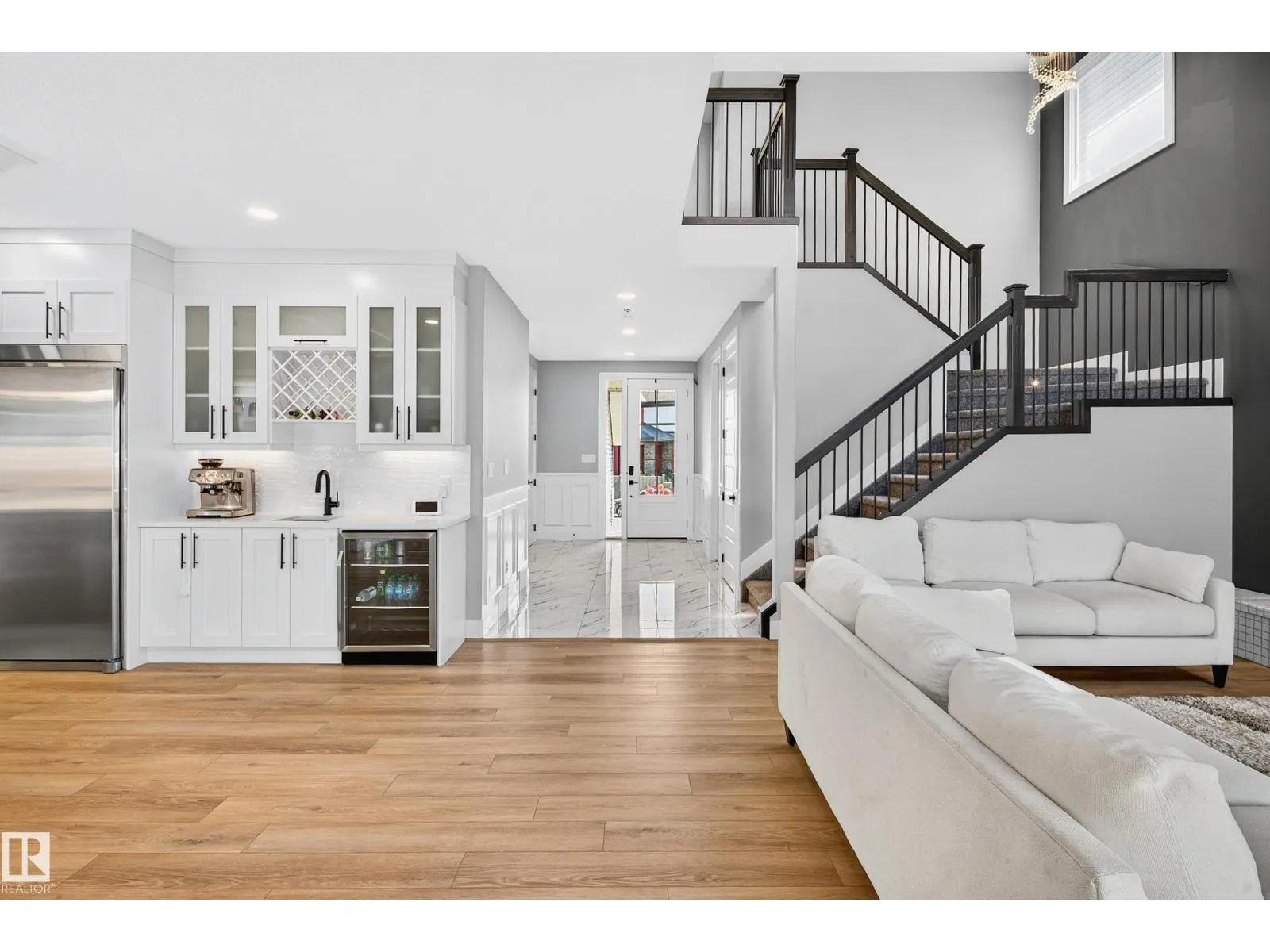 RARE FIND! The perfect home for large or multigenerational families...fully finished on 3 levels with 8 bedrooms and 5 full baths. The impressive main floor showcases soaring ceilings, a wall of windows flooding the space with natural light, a floor-to-ceiling fireplace, and a dream kitchen with upgraded cabinetry, under-cabinet lighting, huge island, walk-through pantry, elegant wainscoting, a large mudroom, plus a bedroom and full bath, complete the main. Upstairs offers 4 bedrooms including a stunning primary retreat with double-sided fireplace, jetted soaker tub, private bidet, double shower, and custom walk-in closet. The basement, with separate side entrance, boasts a theatre room with surround sound, wet bar, 3 more bedrooms, and a 5th full bath. Extras include central A/C, built-in speakers, water softener, window coverings, large deck with glass rails & gas hookup, triple garage with aggregate drive/walkway, landscaped yard with perennials...steps to trails, playgrounds, and Kim Hung School. (id:27476)