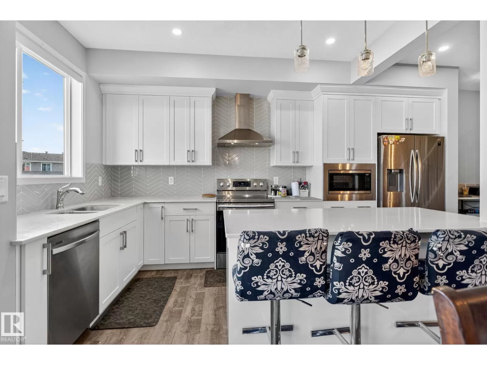 Discover modern family living in Walker, one of Southeast Edmontonâs most sought-after neighbourhoods. This 3-bedroom, 2.5-bath home built in 2020 offers a thoughtful layout with a massive bonus room upstairs, perfect for relaxation or play. The main floor features a spacious living area with a unique feature wall, stylish light fixtures, stainless steel appliances, and quartz countertops. There is also an insulted attached double car garage, perfect for those cold winter days. The unfinished basement provides future potential, while central living flows into an oversized backyard. Step out onto the finished deck or relax on the adjoining concrete pad, ideal for lounging or entertaining. Enjoy access to scenic parks, walking trails, schools, and a welcoming community vibe, all minutes from shopping at Harvest Pointe, the upcoming Movati gym, and quick Anthony Henday access. This home blends modern elegance, functional space, and outdoor living in a vibrant, growing area. (id:27476)