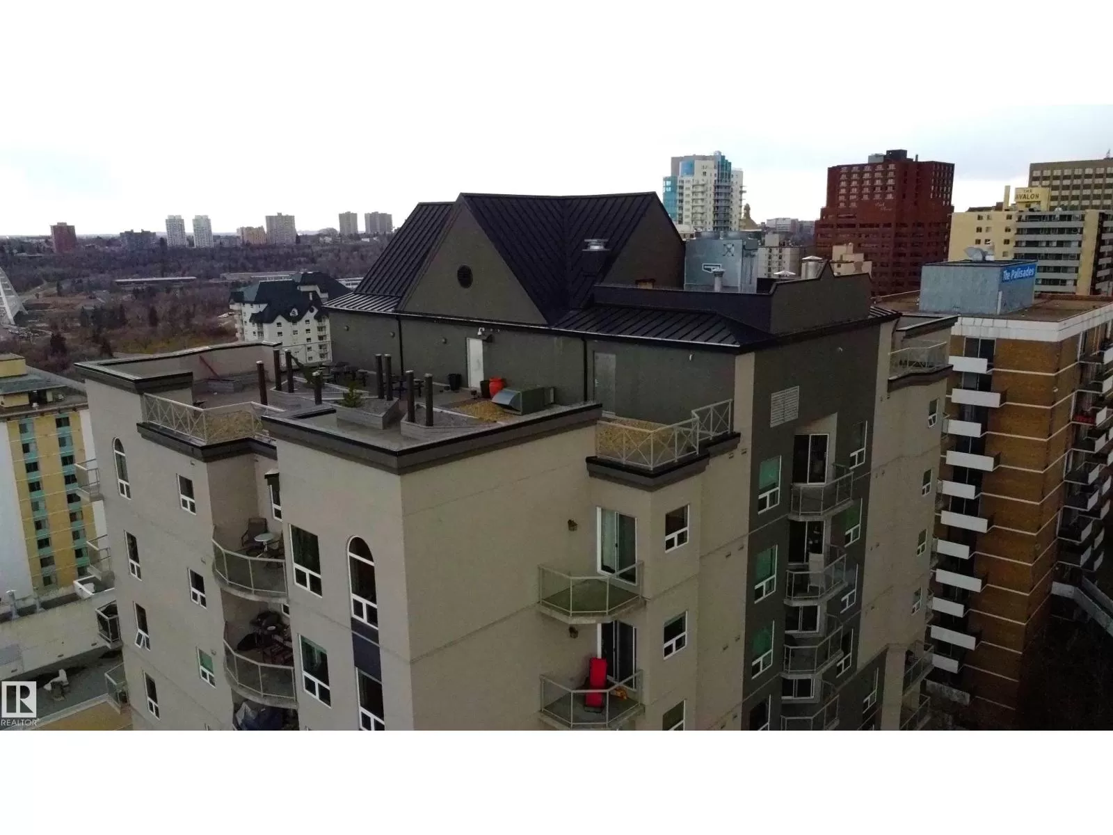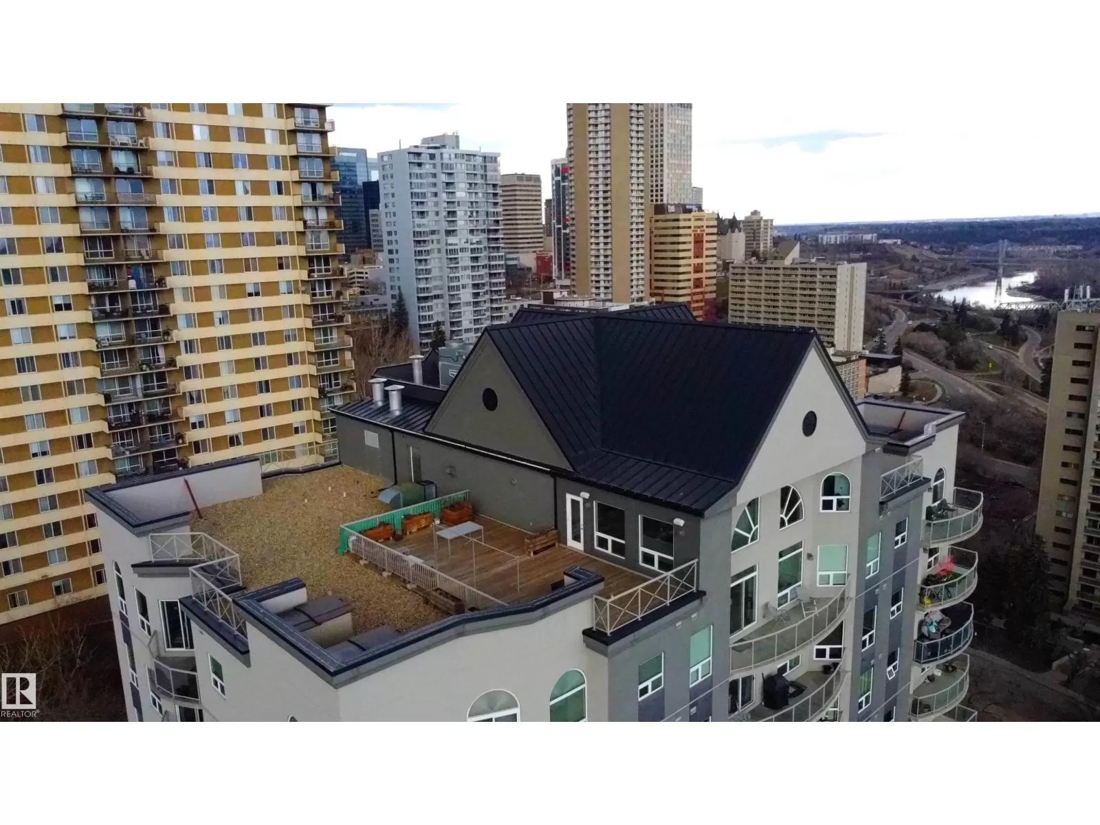 Experience downtown living at its finest in this stunning 1,253 sq. ft. high-rise condo with southwest views of Edmontonâs skyline and river valley. This 2 bedroom, 2 bathroom home offers soaring 10 ft ceilings, central air conditioning, rich hardwood, and ceramic tile flooring that create an open and inviting feel. The spacious living room, dining area, and kitchen are filled with natural light from the large windows, making it perfect for both relaxing and entertaining. The primary suite is a true retreat with a walk-in closet, a 4-piece ensuite, and direct access to a private balcony where you can unwind and take in the views. A second bedroom and another full 4-piece bath add comfort and convenience for guests. Step outside your unit and enjoy the rooftop terrace with plenty of space for summer gatherings or quiet evenings under the stars. Just minutes from Victoria Golf Course, the river valley, and shopping along Jasper Avenue, this condo offers not just a home but an exceptional downtown lifestyle. (id:27476)