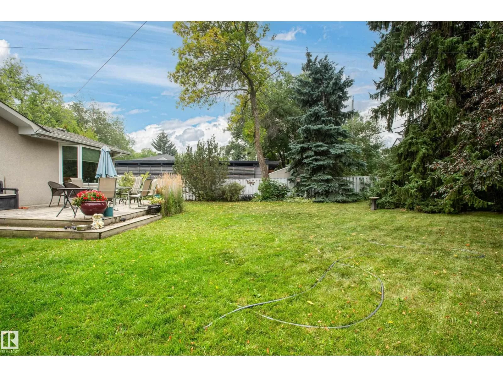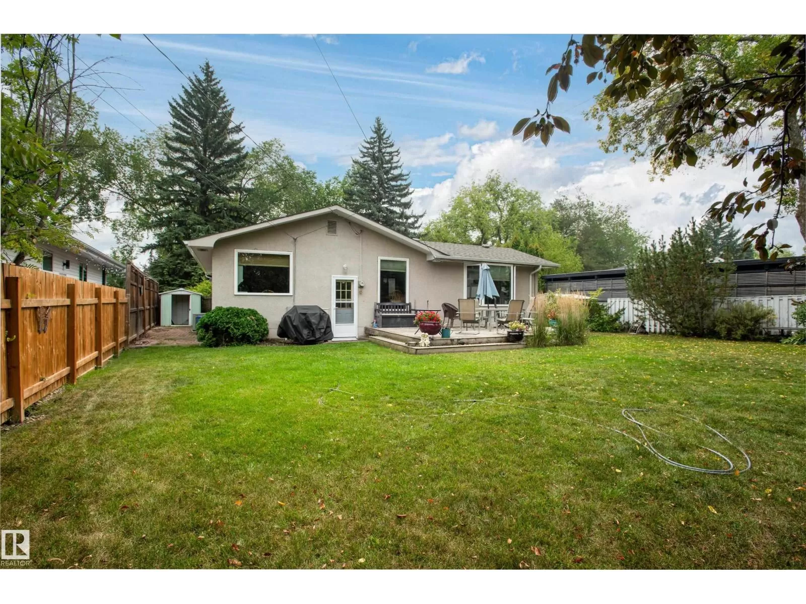 Welcome to the mature tree lined street in the desirable Rio Terrace neighborhood. This 1224 SQ/FT bungalow is situated on a MASSIVE 8500 SQ/FT SUBDIVIDABLE 70' x 130' lot with a west facing backyard. This spacious property offers endless potential for investors, builders, or families looking to develop. Main level features vinyl plank flooring 3 bedrooms and 2 bathrooms with an updated kitchen with ample cabinet space and quartz countertops. The fully finished basement offers a huge rec room with a gas fireplace, additional full bathroom and tons of storage space. Outside the oversized double detached garage finishes off the fully landscaped yard. Located close to downtown & freeways, schools. Now is your opportunity to live in one of Edmonton's premier communities! (id:27476)