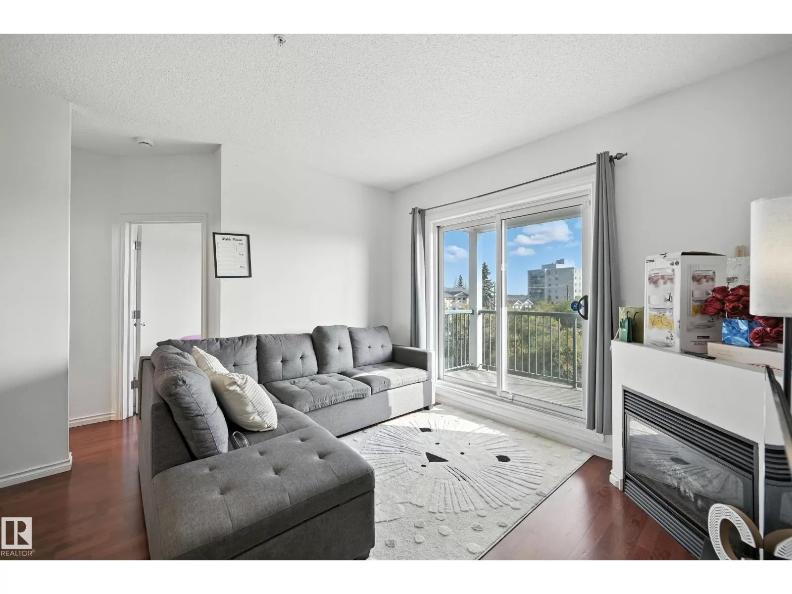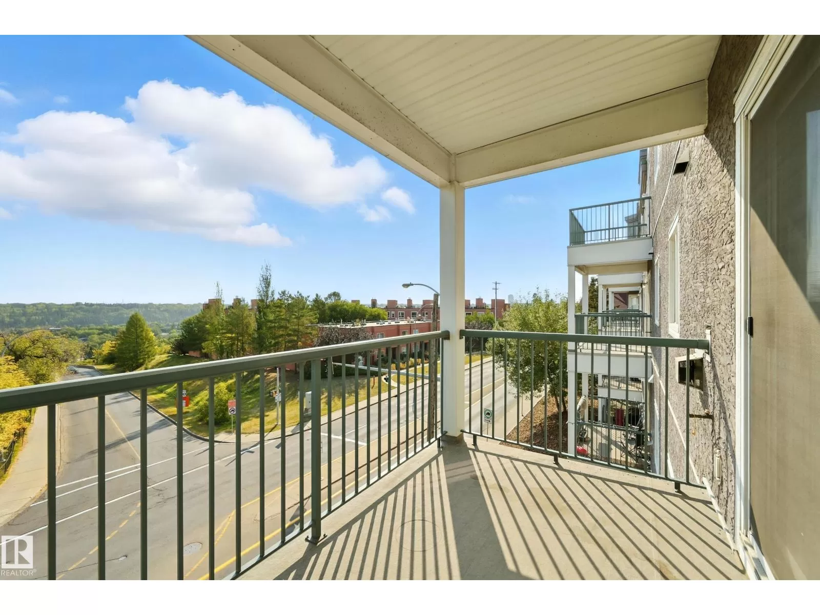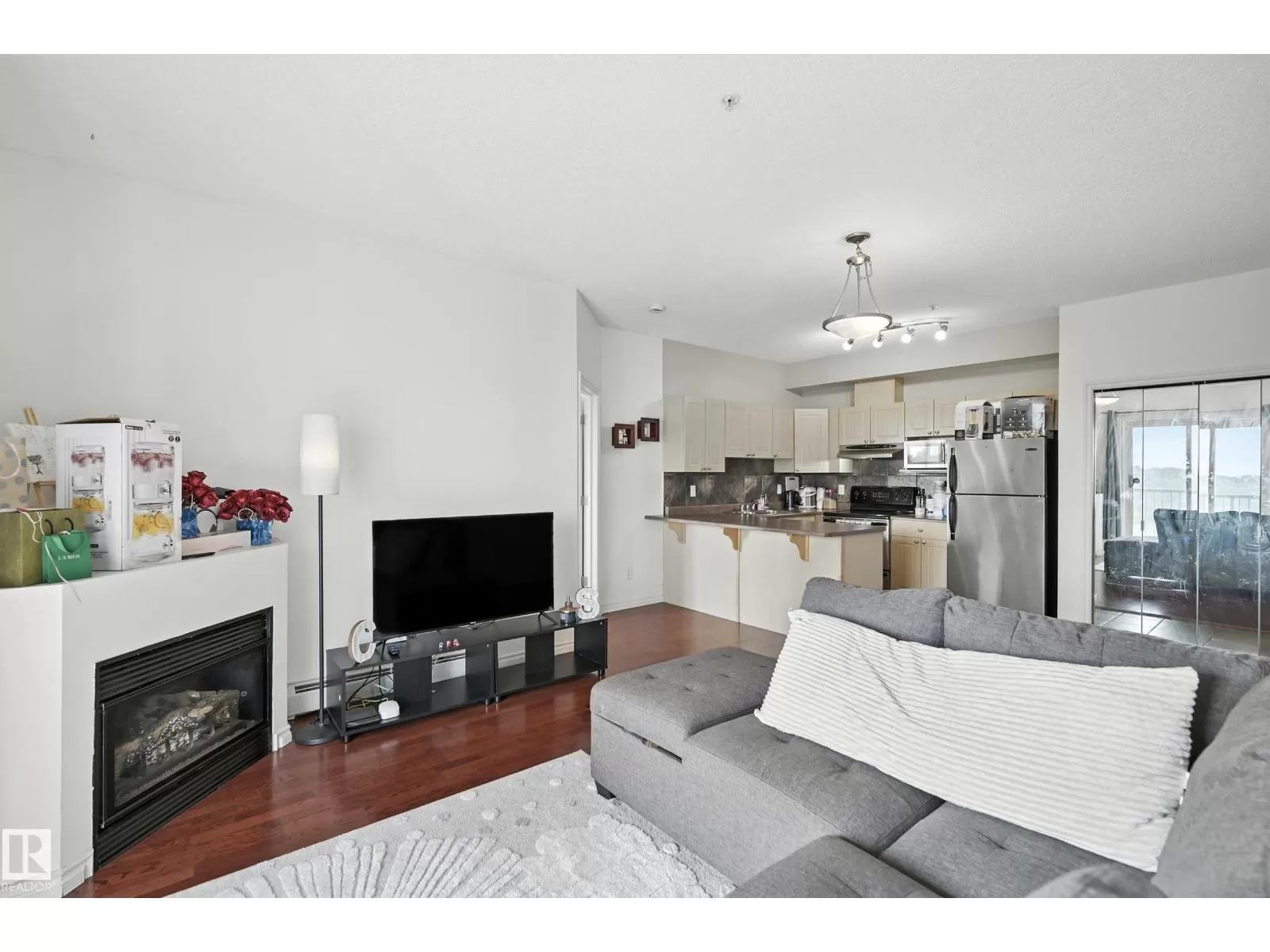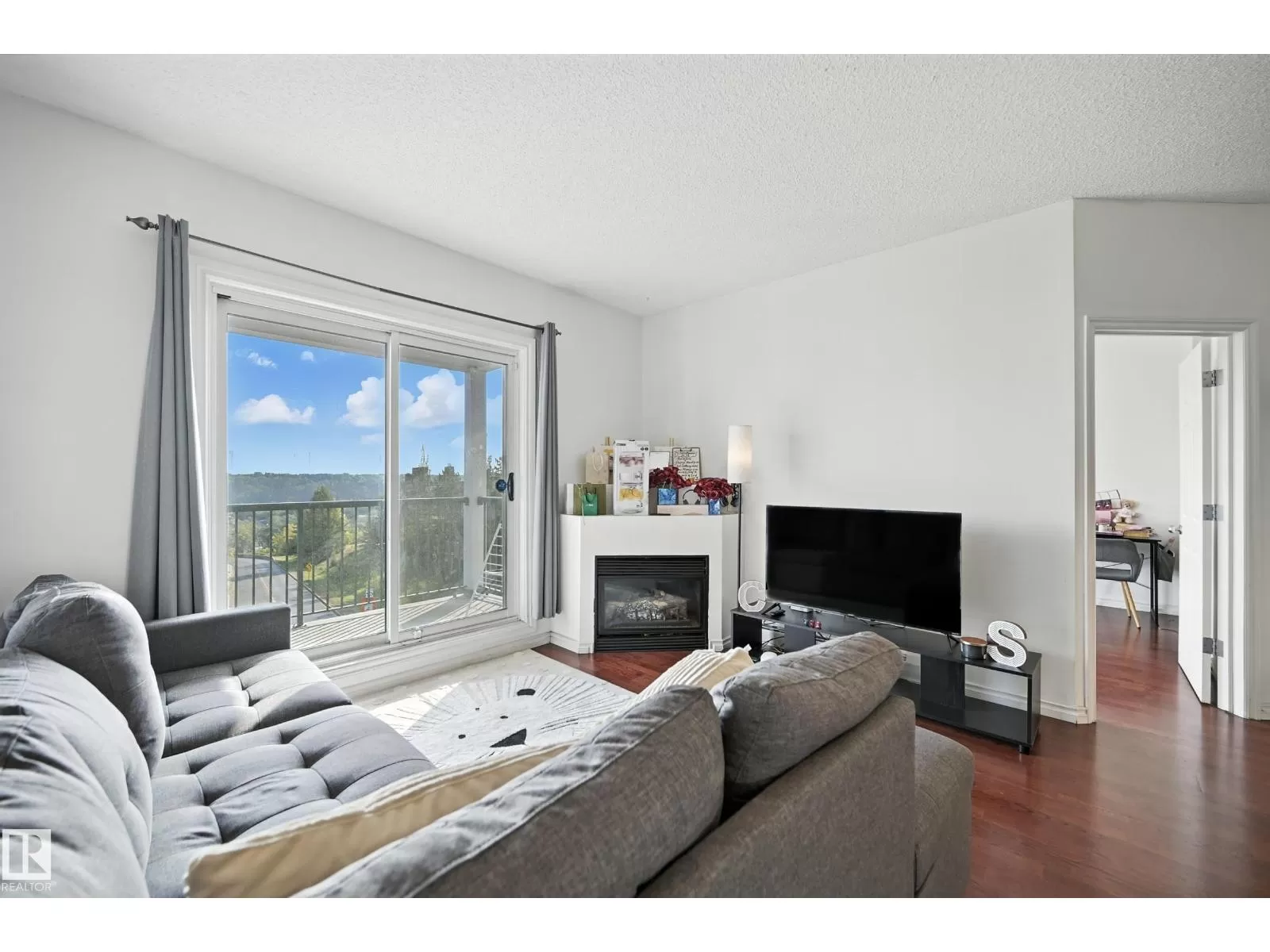 This exceptional 2 bedroom, 2 bathroom condo offers in-suite laundry, titled underground parking, and a bright open-concept layout. The unit features hardwood and tile flooring, a corner fireplace, and a modern kitchen with stainless steel appliances and a tile backsplash. Enjoy stunning views of the river valley from the comfort of your home. Well-maintained and move-in ready, this unit is a must see. (id:27476)