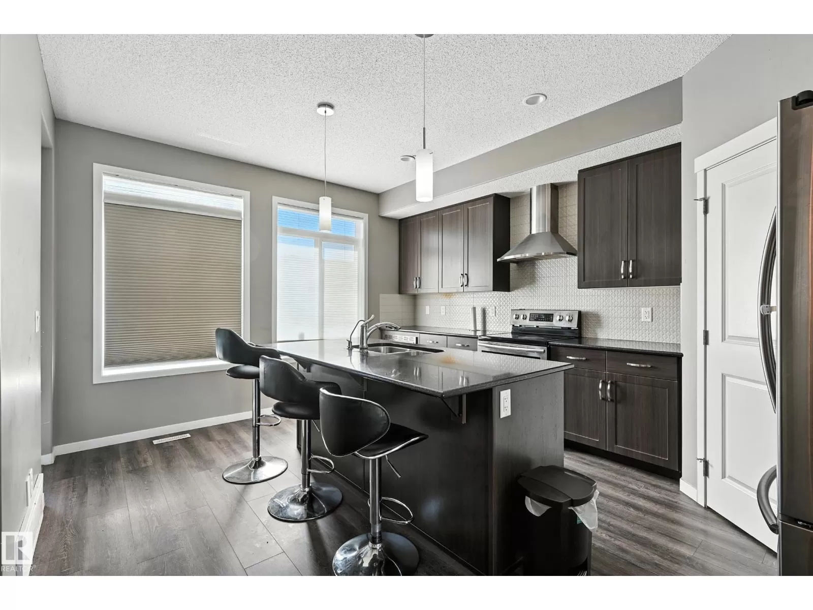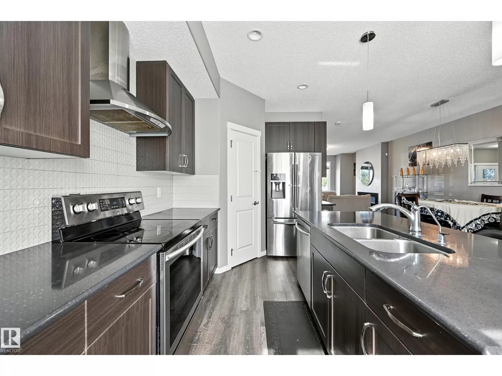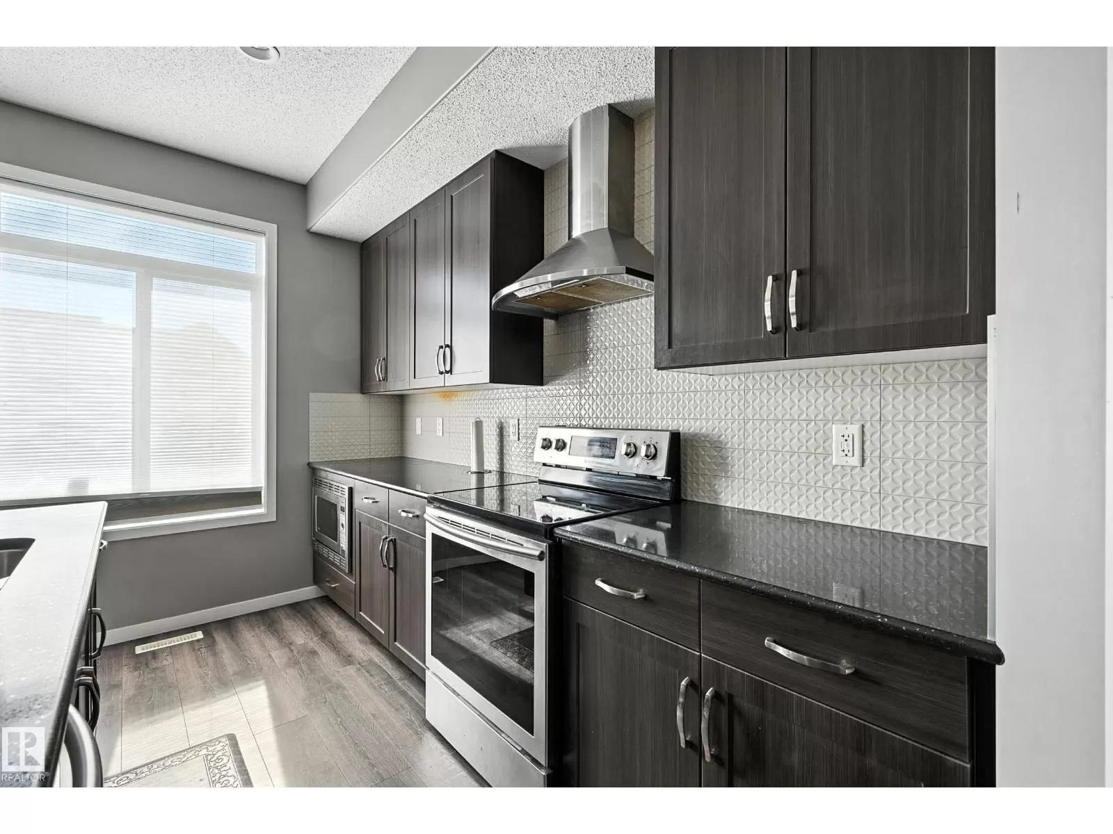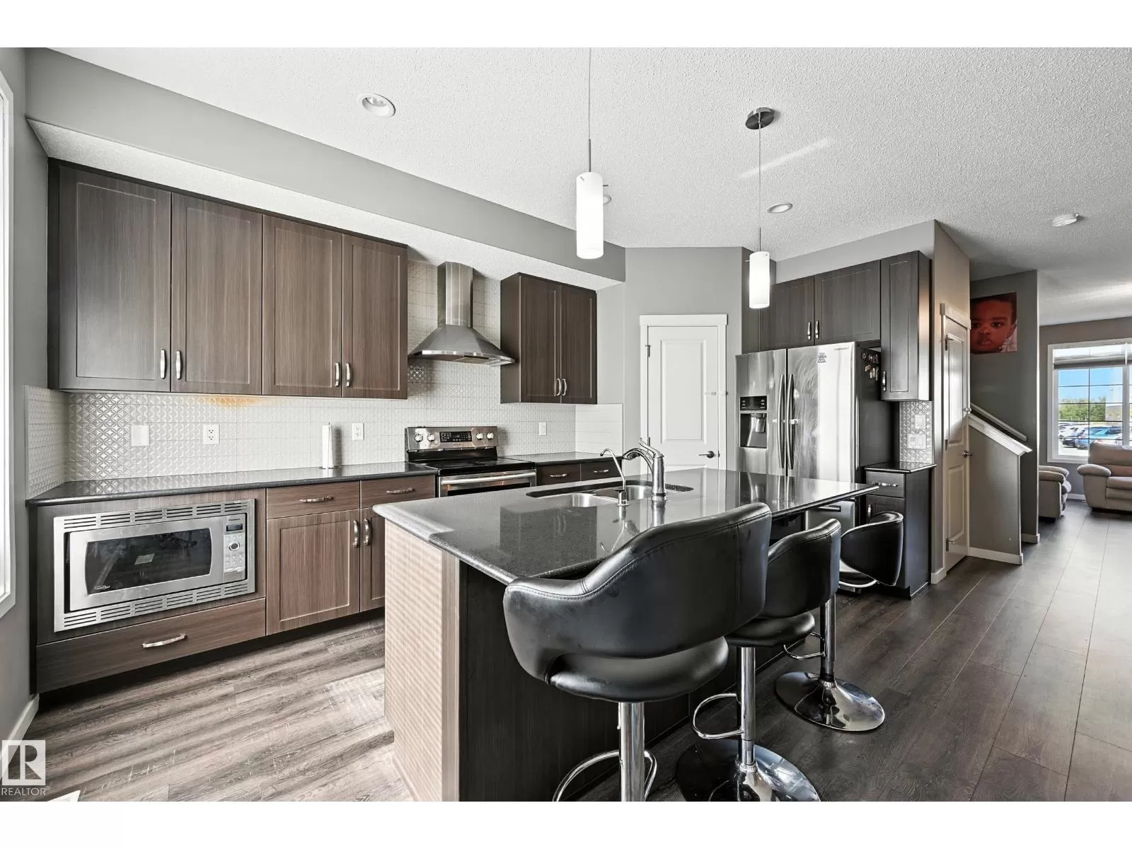 Beautiful 3-Bedroom Home in McConachie! This home offers style, comfort, and plenty of upgrades throughout and A/C! The main floor features 9 ft. ceilings, luxury hardwood and tile flooring, and large windows that fill the space with natural light. The gourmet kitchen is a showstopper with granite countertops, a chimney hood fan, stainless steel appliances, a French door fridge, tiled backsplash with upgraded accents, and a large island with eating bar. Upstairs, youâll find a spacious laundry room, and a spa-inspired ensuite with a separate tub and shower, ceramic tile, and elegant finishes. The fully finished basement includes an additional bedroom, bathroom, and living room perfect for family or guests. The exterior is just as impressive with landscaping complete and a double detached garage. Enjoy a quick possession and an ideal location close to the Henday, public transit, the new Kâ9 school, parks, walking trails, shopping, and playgrounds. This home truly has it all. Move in and enjoy! (id:27476)