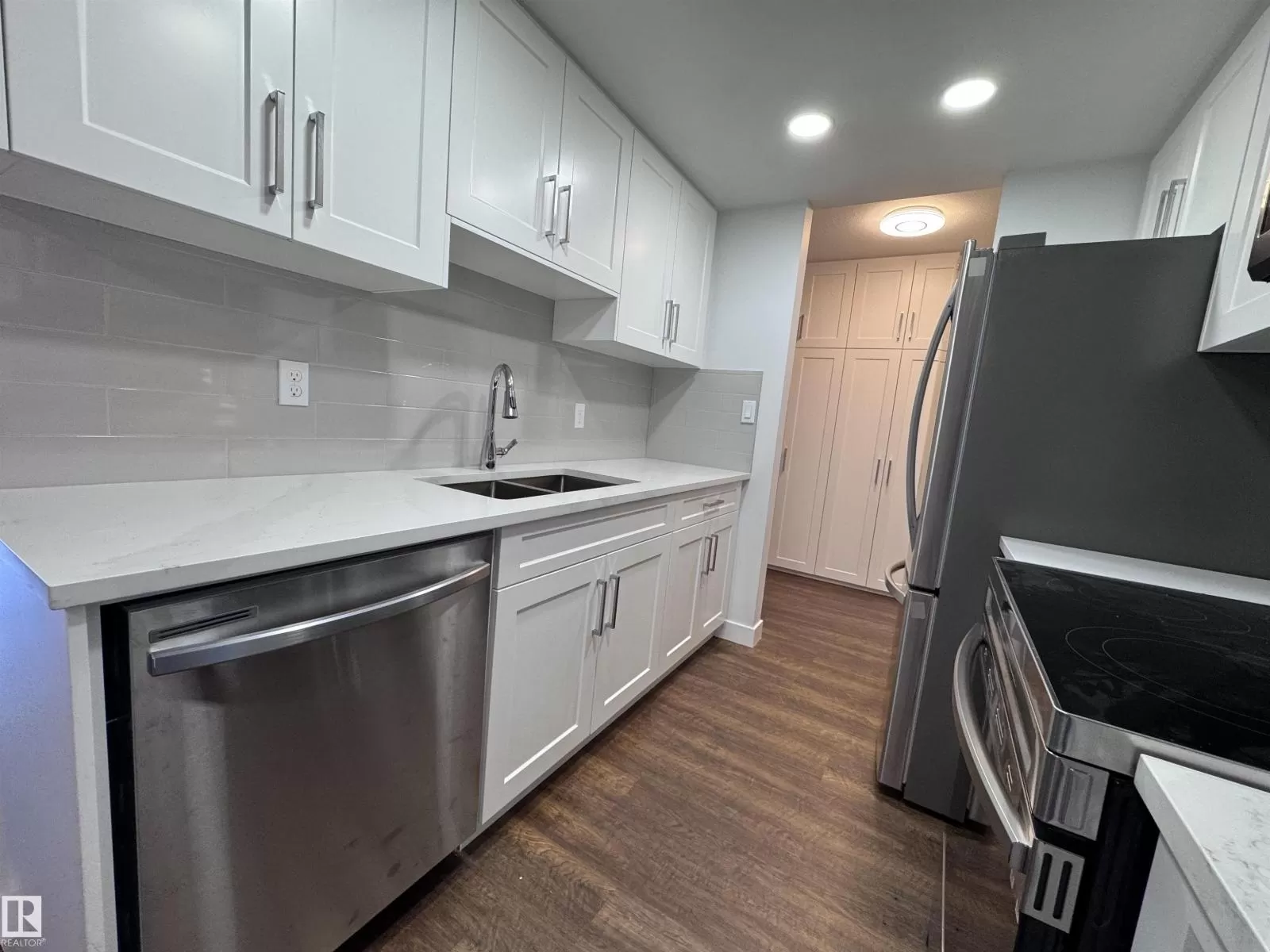 Over $45,000.00 on renovations! This like NEW two-bedroom suite located in the desired south Edmonton community of Keheewin, close to LRT and public transportation with easy access to Anthony Henday Drive. Unit is freshly painted with brand new vinyl plank flooring and bright light fixtures throughout; new clothes closets in foyer; large kitchen upgraded with new contemporary cabinets, quartz countertops, sink & fixtures, and 4 brand new appliances; new ceramic tiles, and all new fixtures in bathroom; the in-suite laundry room is equipped with new stacked washer & dryer, and storage shelves; sliding door to large patio with extra storage room; underground heated parking. Very well maintained and move in ready. (id:27476)