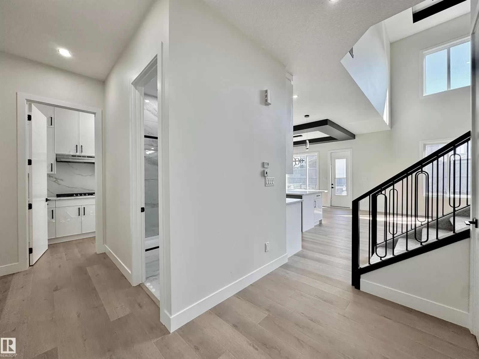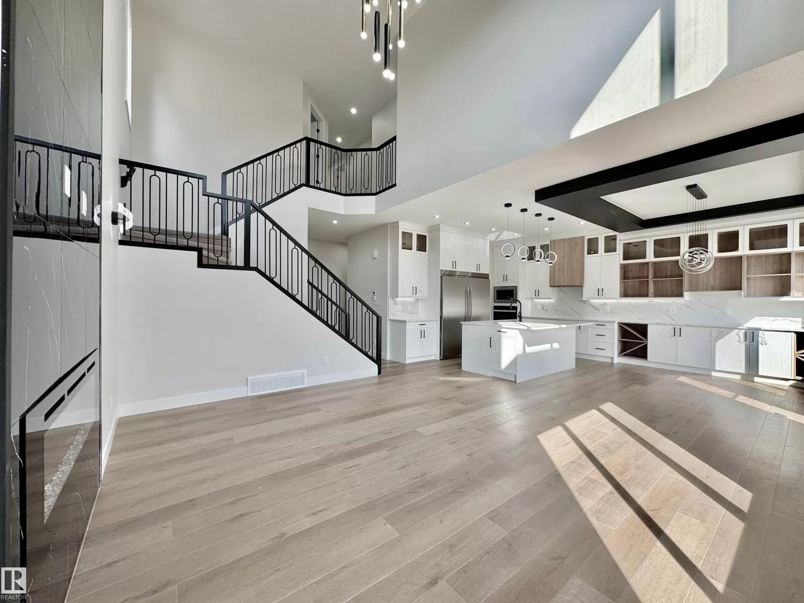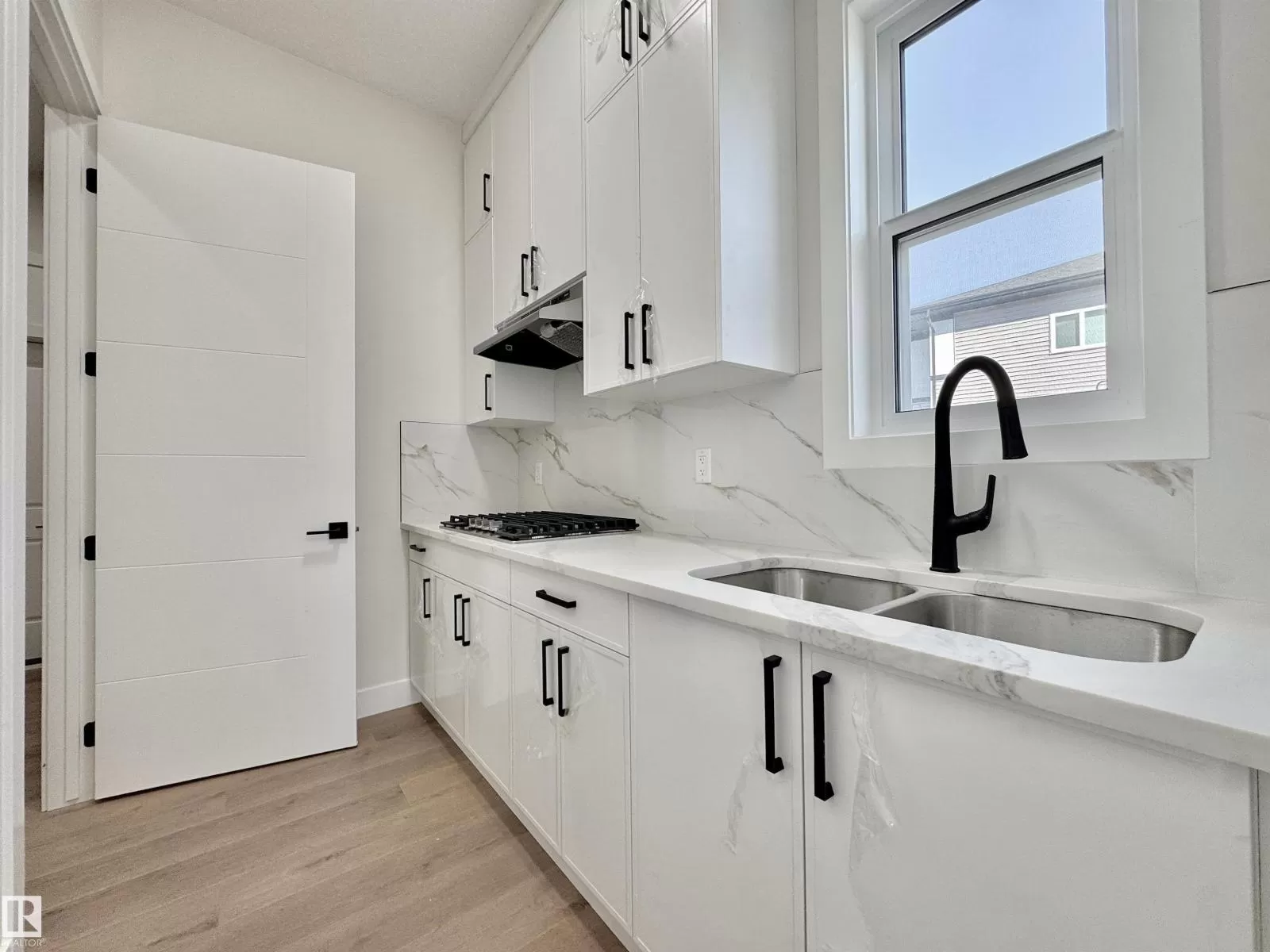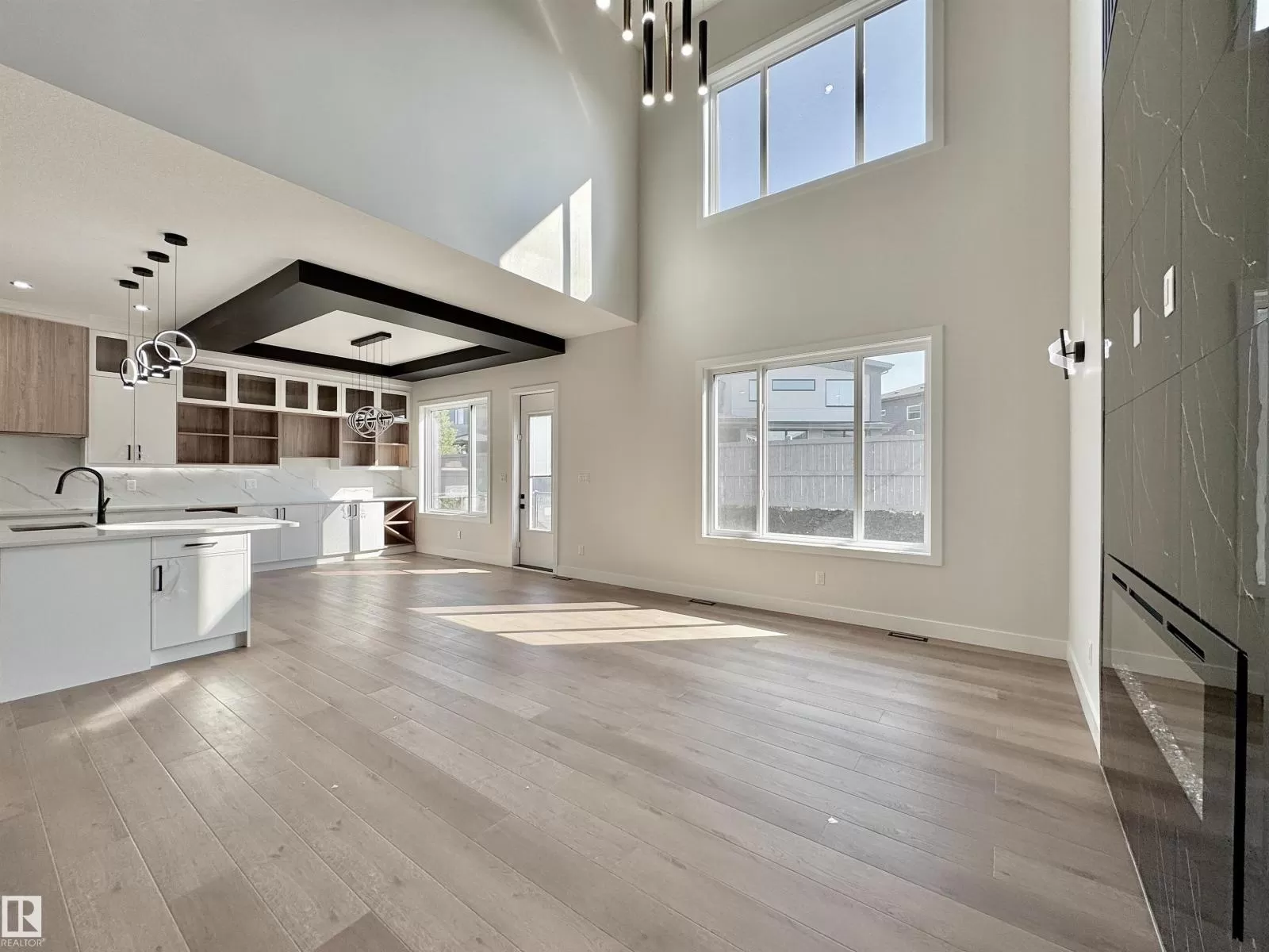 Introducing an unparalleled masterpiece of modern design, nestled in the exclusive southwest Edmonton neighborhood of Keswick. Backing on to a walkway. This highly upgraded stunning 5 bedroom, 3 full bathroom brand-new construction home is a testament to the exceptional craftsmanship of one of Edmonton's top-notch builders. Open-concept living room, featuring soaring ceilings that stretch up to the second floor. Perfect for entertaining, this expansive space seamlessly blends the living, dining, spice kitchen and main kitchen areas. You'll discover an array of upscale finishes, including premium materials, sleek designs, and meticulous attention to detail. From the gourmet kitchen to the spa-inspired bathrooms, every aspect of this home exudes luxury and sophistication. Come, See, Believe (id:27476)