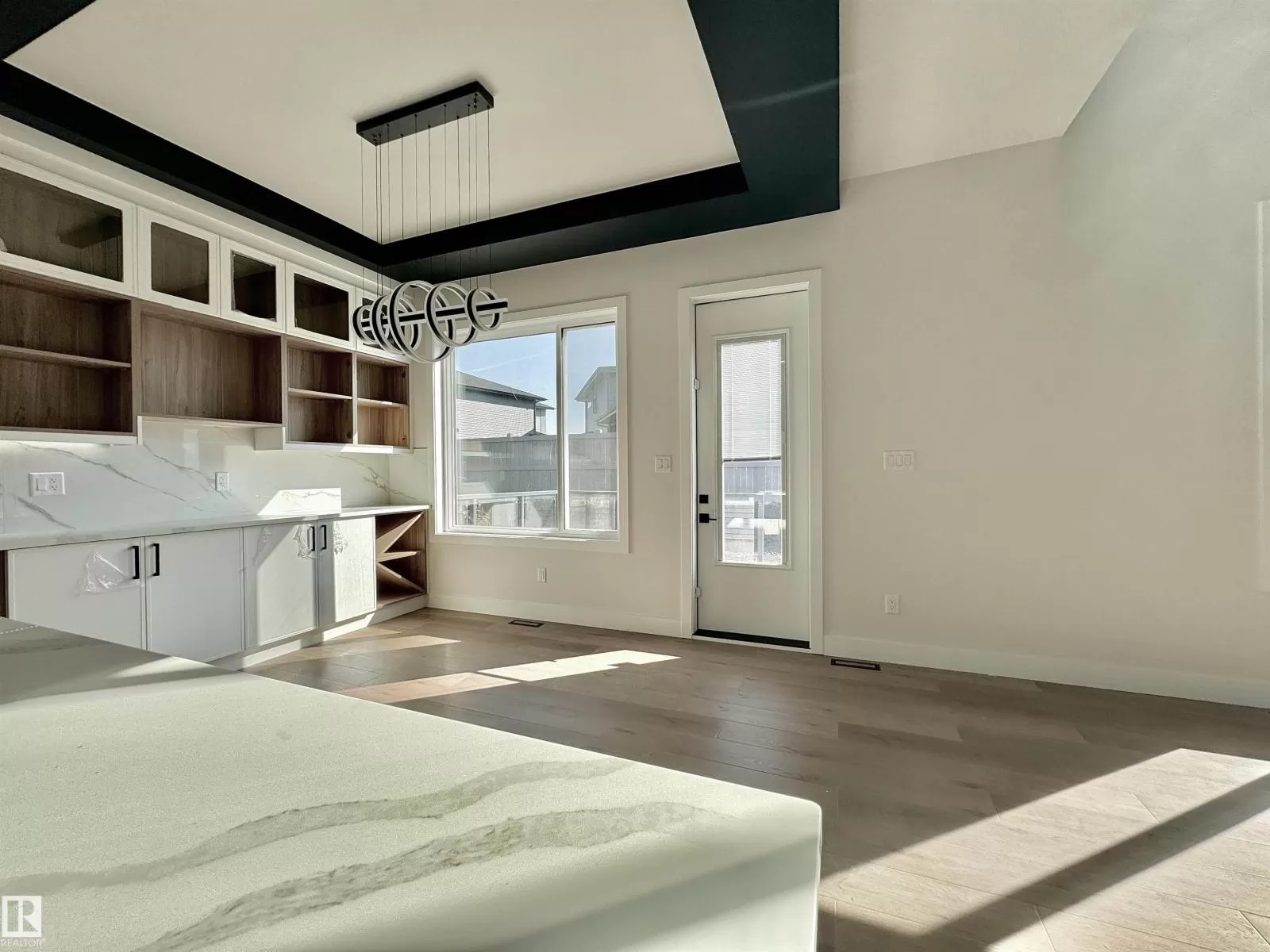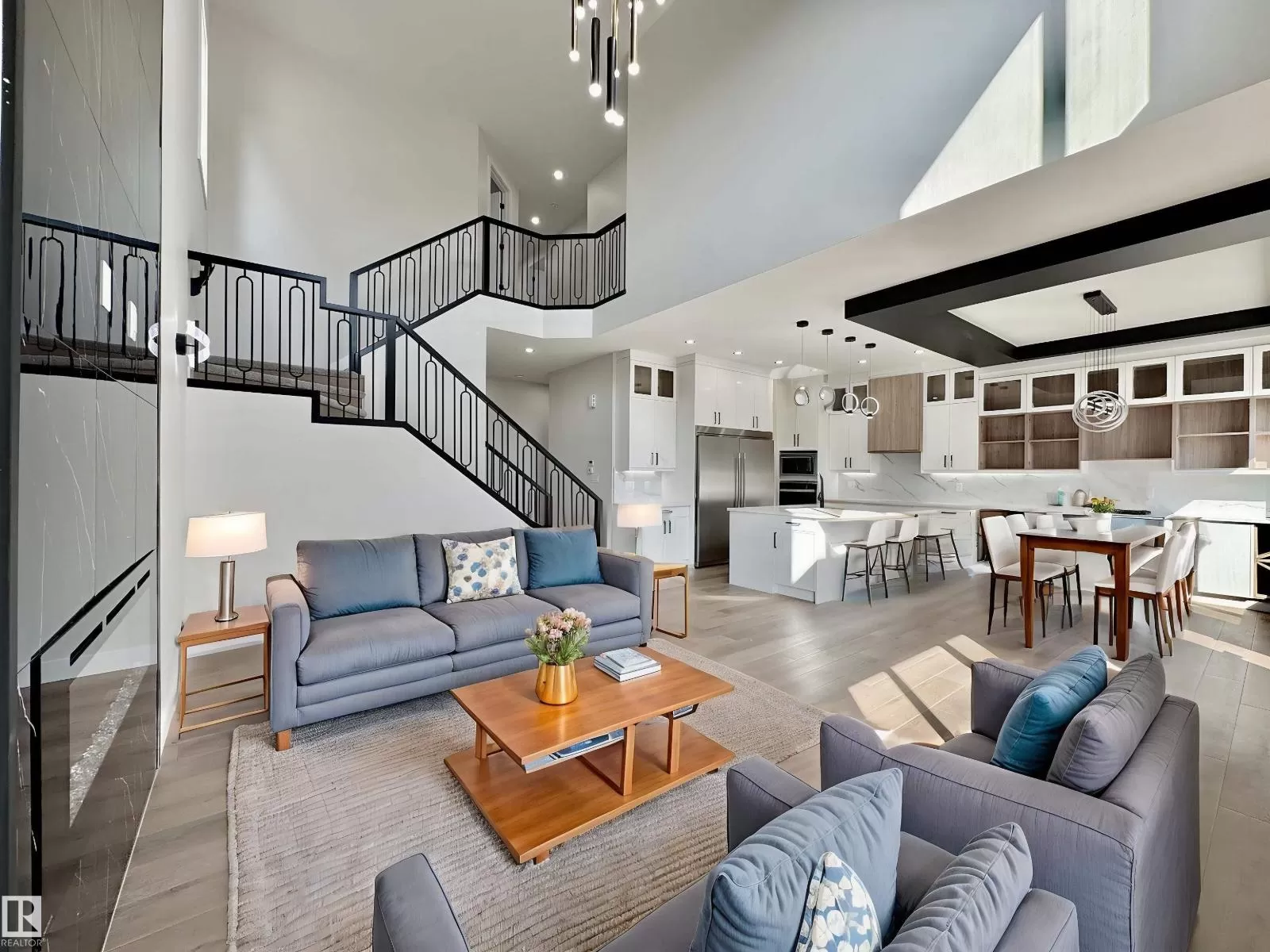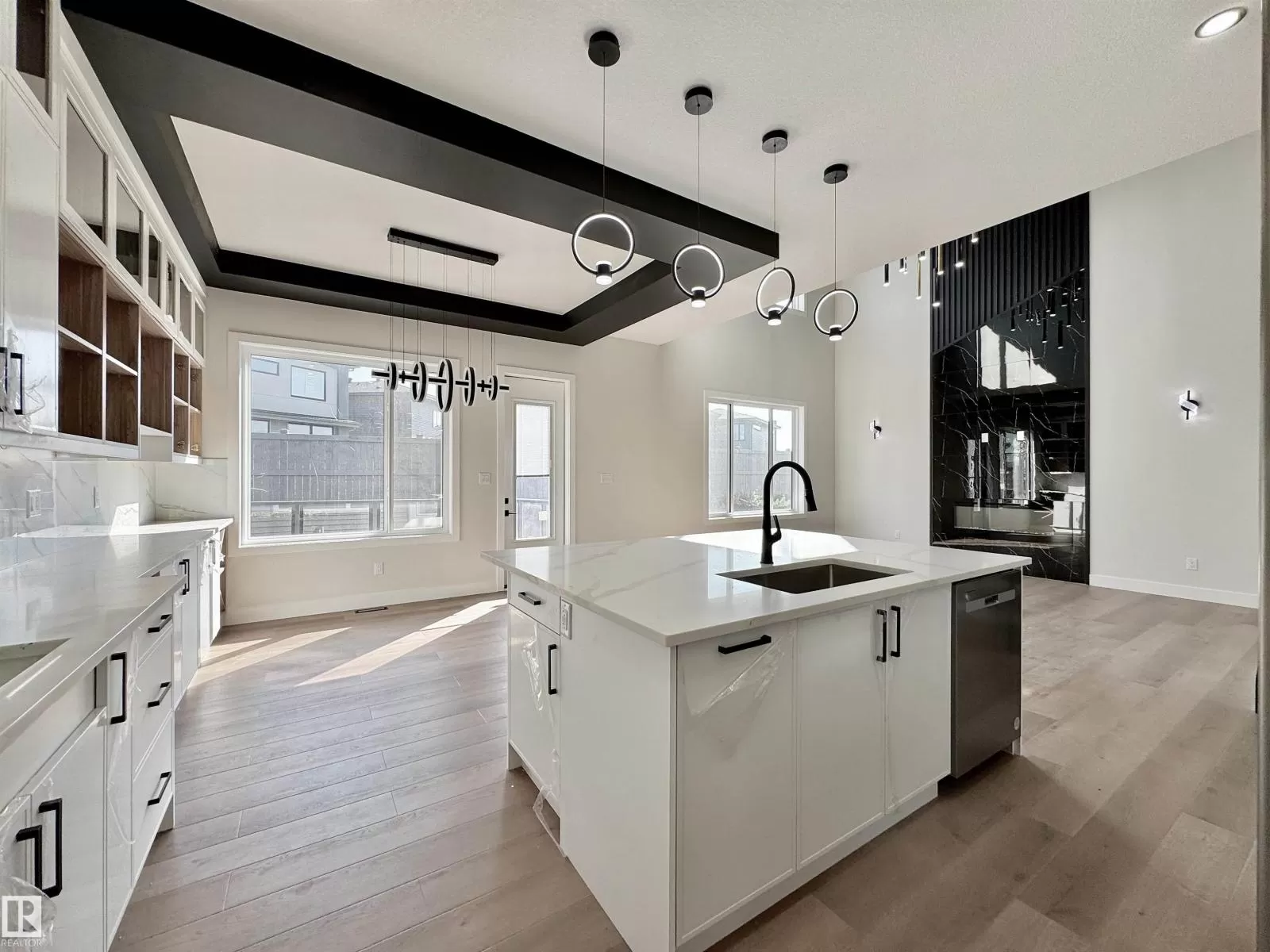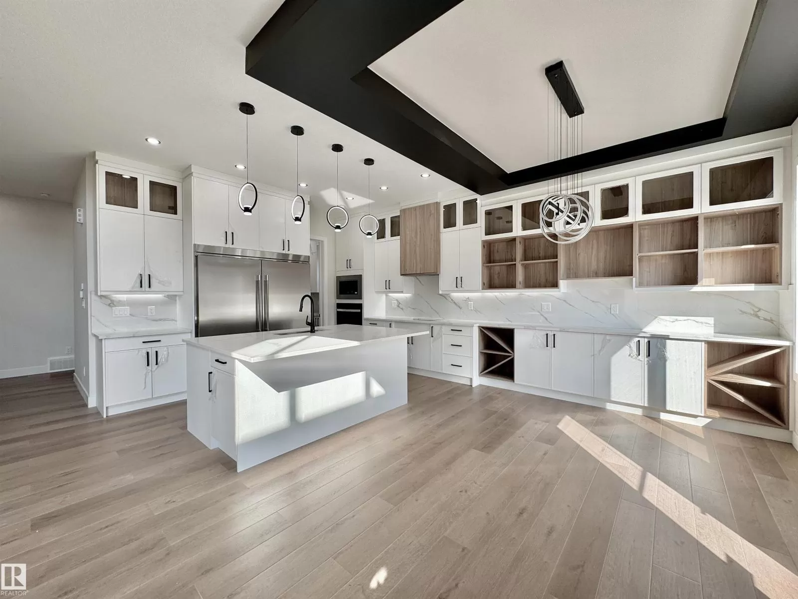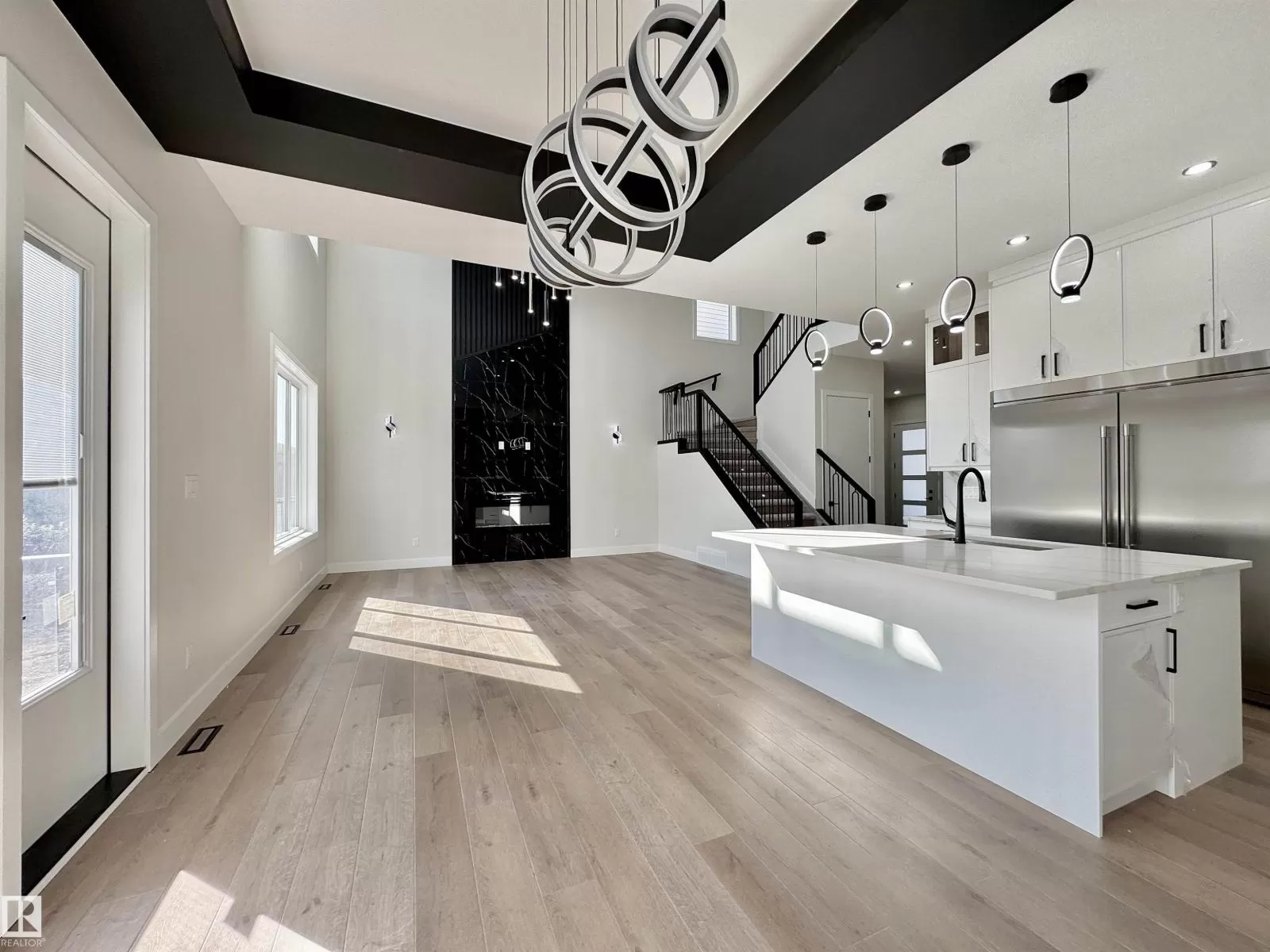 Introducing an unparalleled masterpiece of modern design, nestled in the exclusive southwest Edmonton neighborhood of Keswick. Backing on to a walkway. This highly upgraded stunning 5 bedroom, 3 full bathroom brand-new construction home is a testament to the exceptional craftsmanship of one of Edmonton's top-notch builders. Open-concept living room, featuring soaring ceilings that stretch up to the second floor. Perfect for entertaining, this expansive space seamlessly blends the living, dining, spice kitchen and main kitchen areas. You'll discover an array of upscale finishes, including premium materials, sleek designs, and meticulous attention to detail. From the gourmet kitchen to the spa-inspired bathrooms, every aspect of this home exudes luxury and sophistication. Come, See, Believe (id:27476)