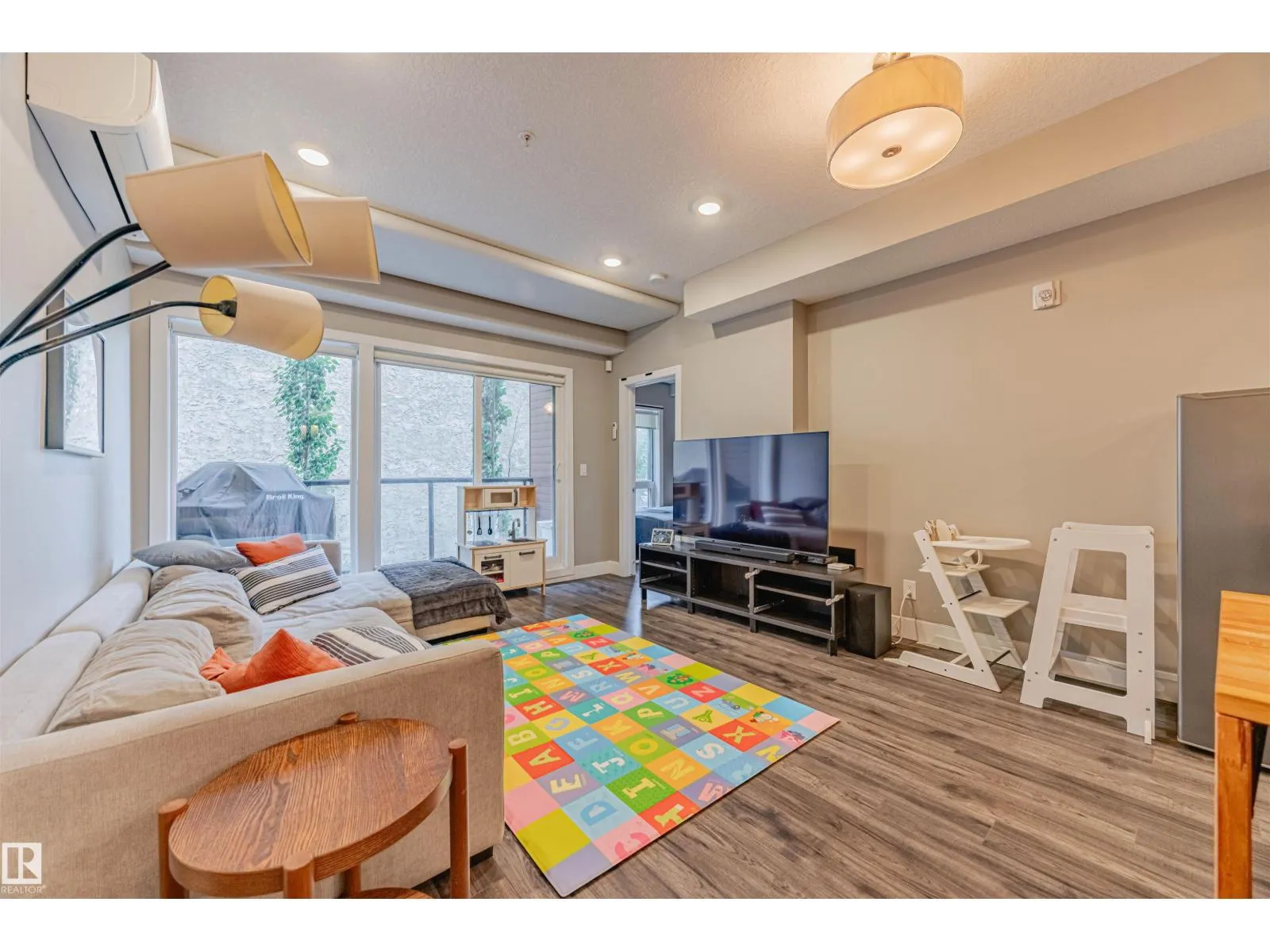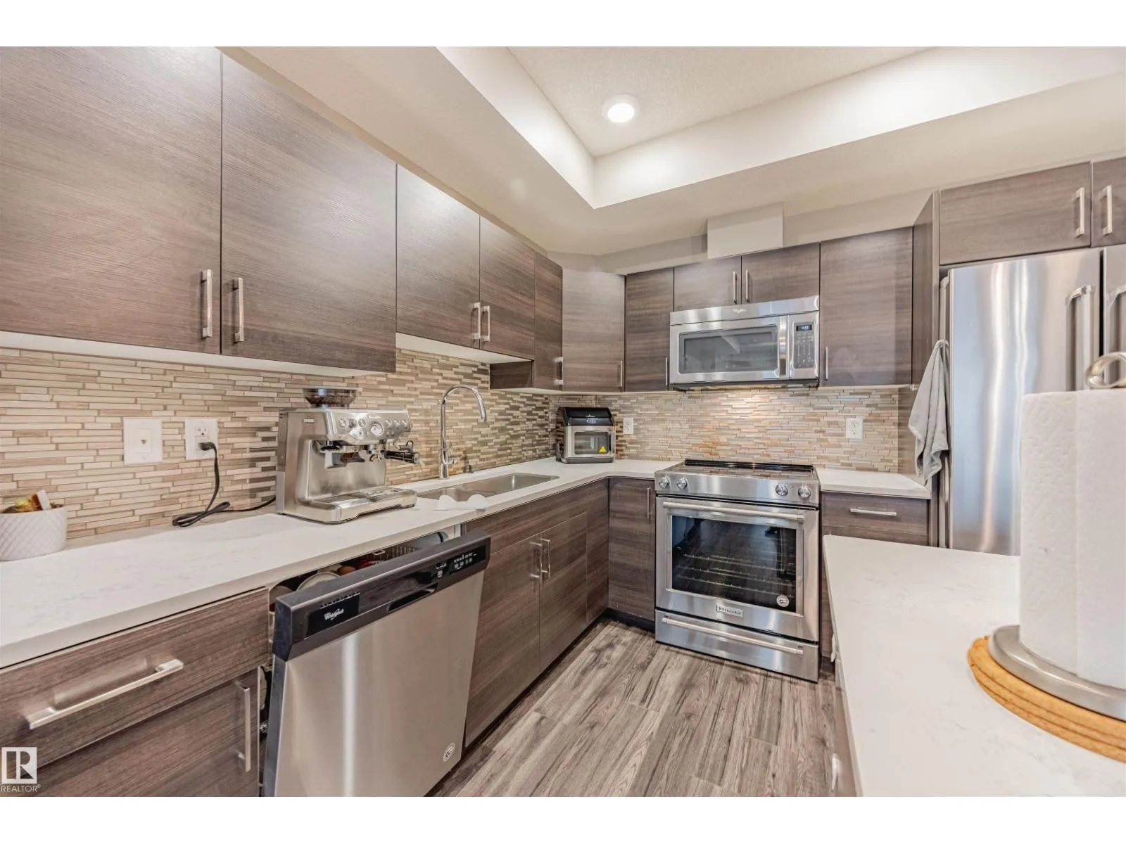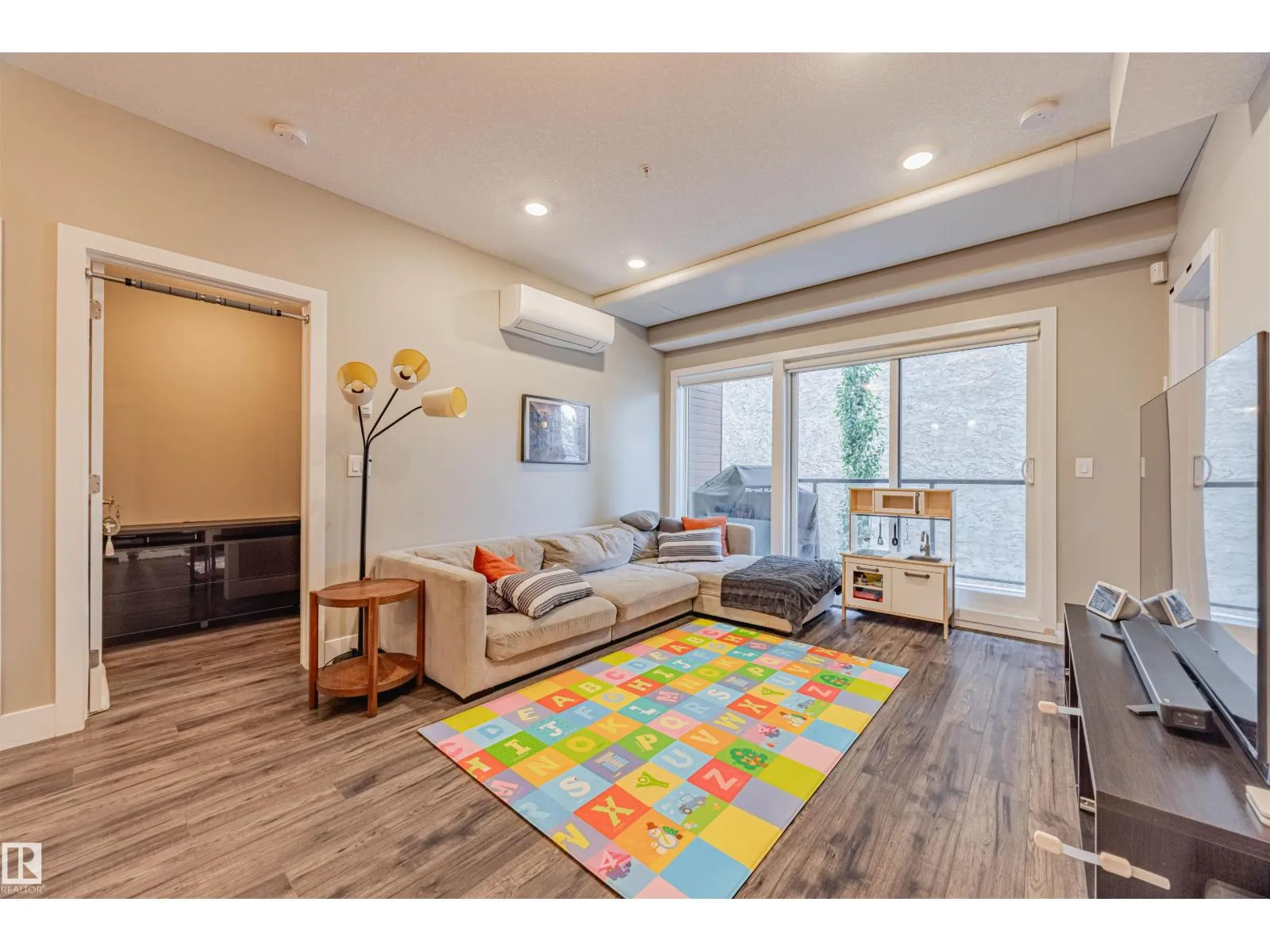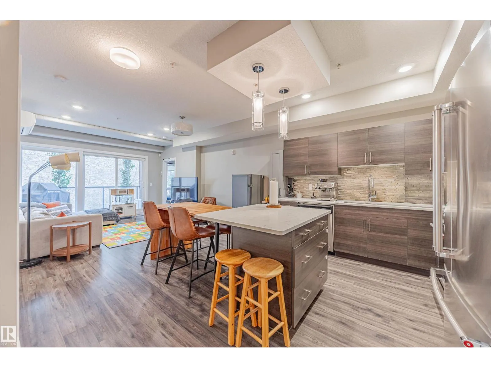 Near Whyte Avenue, the University of Alberta, and Edmonton's River Valley, Arbor 83 offers an ideal lifestyle with easy access to transportation, shops, dining, and more. This building has amenities like a lush living wall, a cozy fireplace lounge, bicycle storage, and a communal rooftop patio that offers breathtaking views of the Downtown Skyline. The contemporary 2-bedroom, 2-bathroom condo is designed with sophistication, featuring an airy layout with an upgraded kitchen boasting high-end cabinets. The Primary Bedroom includes a private 3-piece ensuite, while the second bedroom has convenient access to a 4-piece bathroom. Added benefits include air conditioning, in-suite laundry, UNDERGROUND TITLED HEATED PARKING, additional nearby storage, and a spacious balcony. Condo fees cover heating, insurance, reserve fund contributions and water; pets are allowed with board approval. Don't miss out! (id:27476)