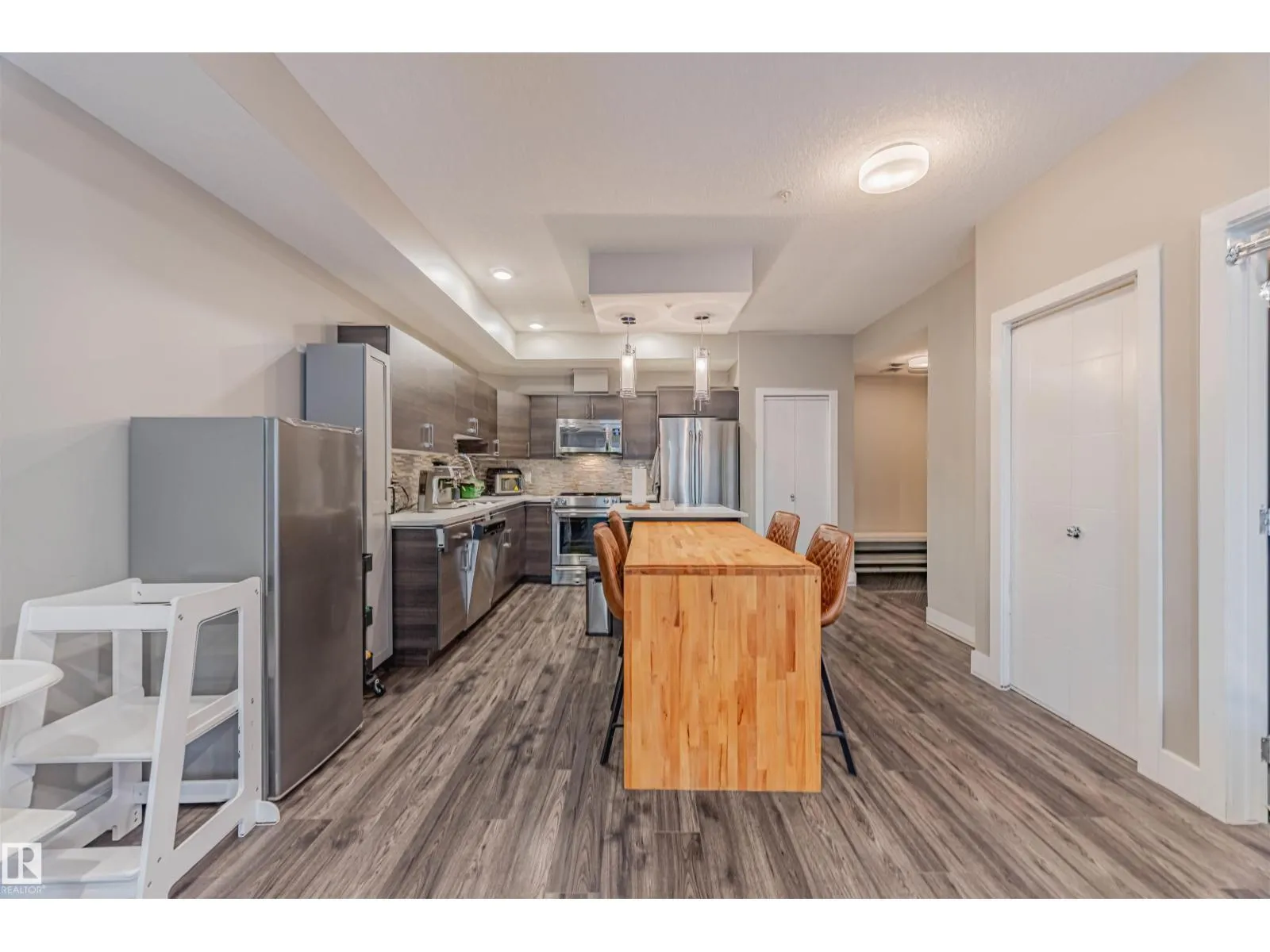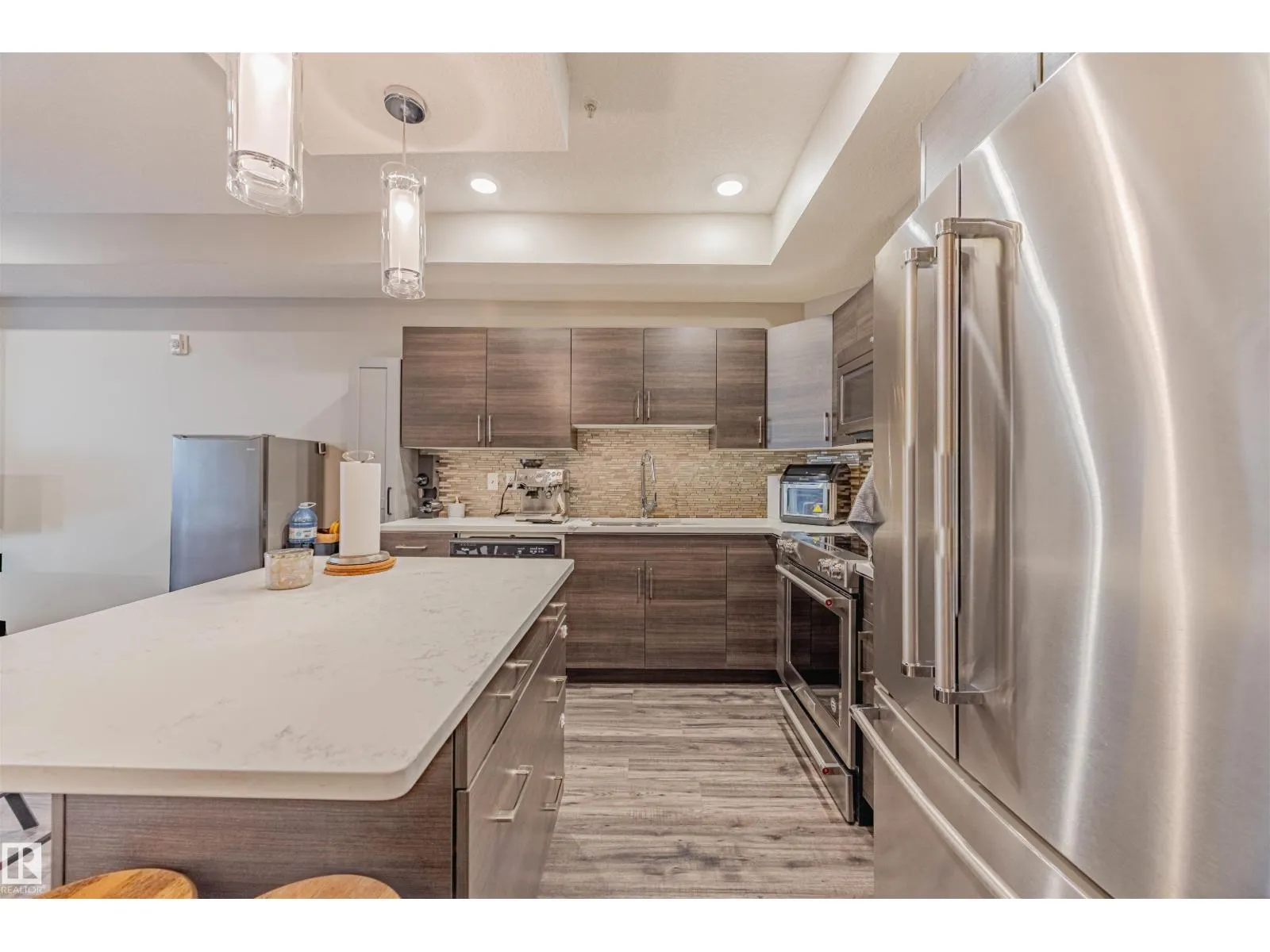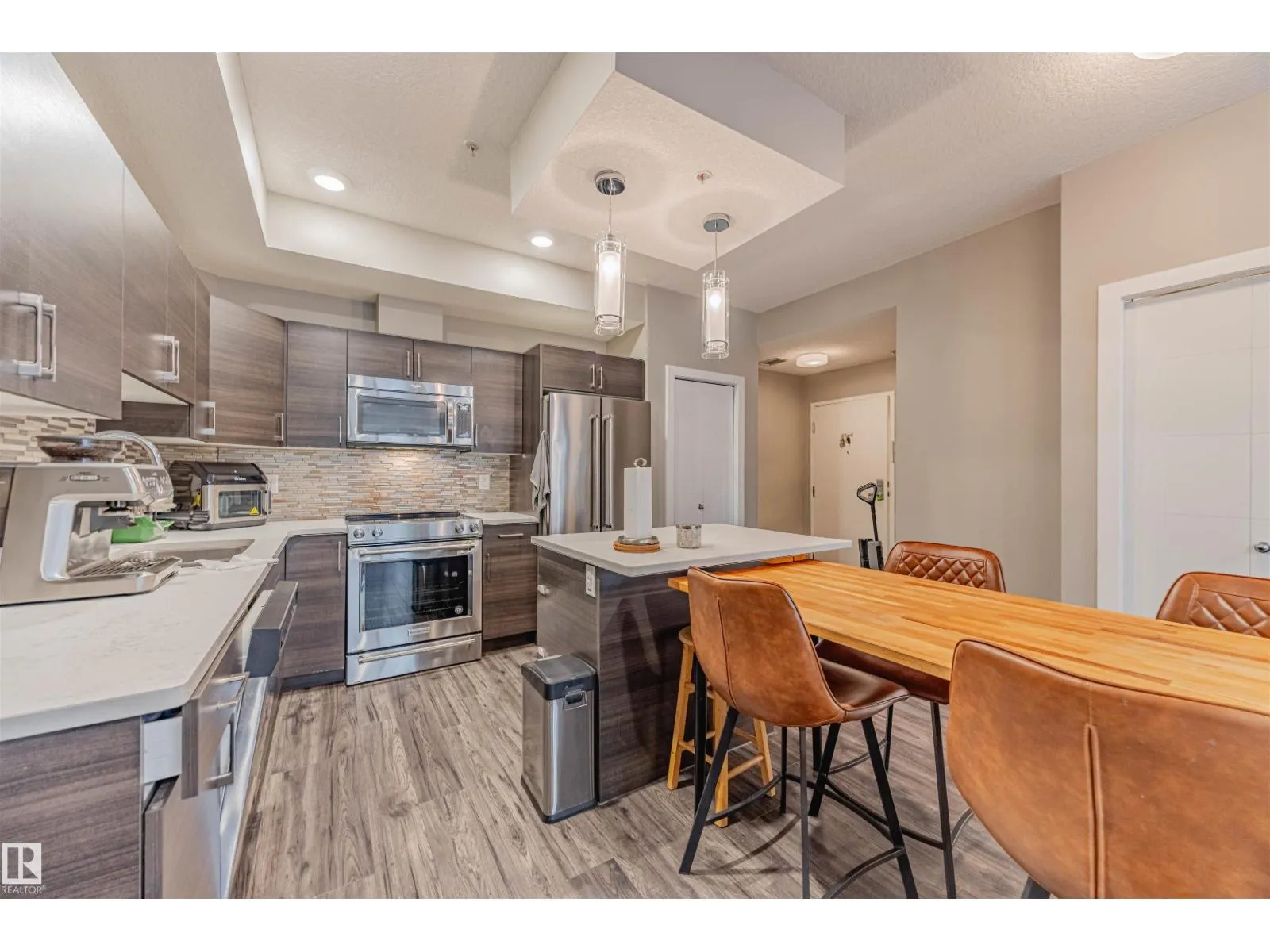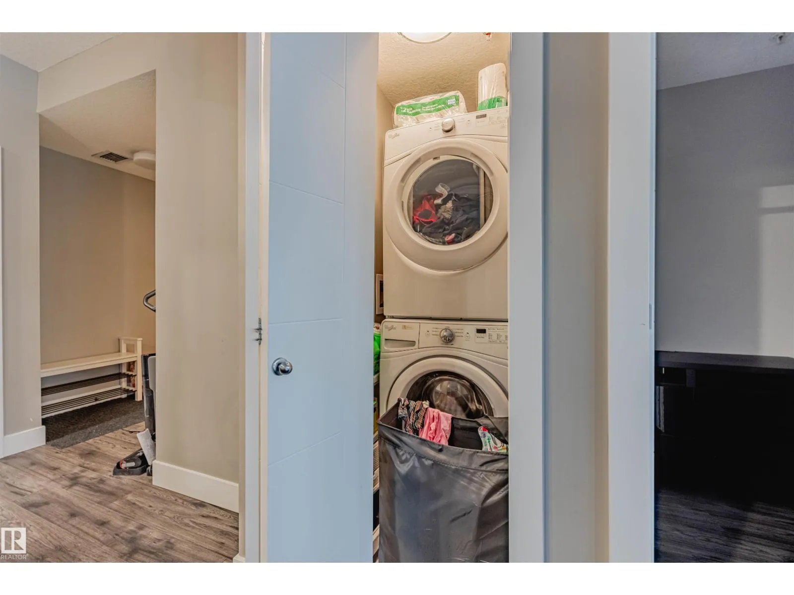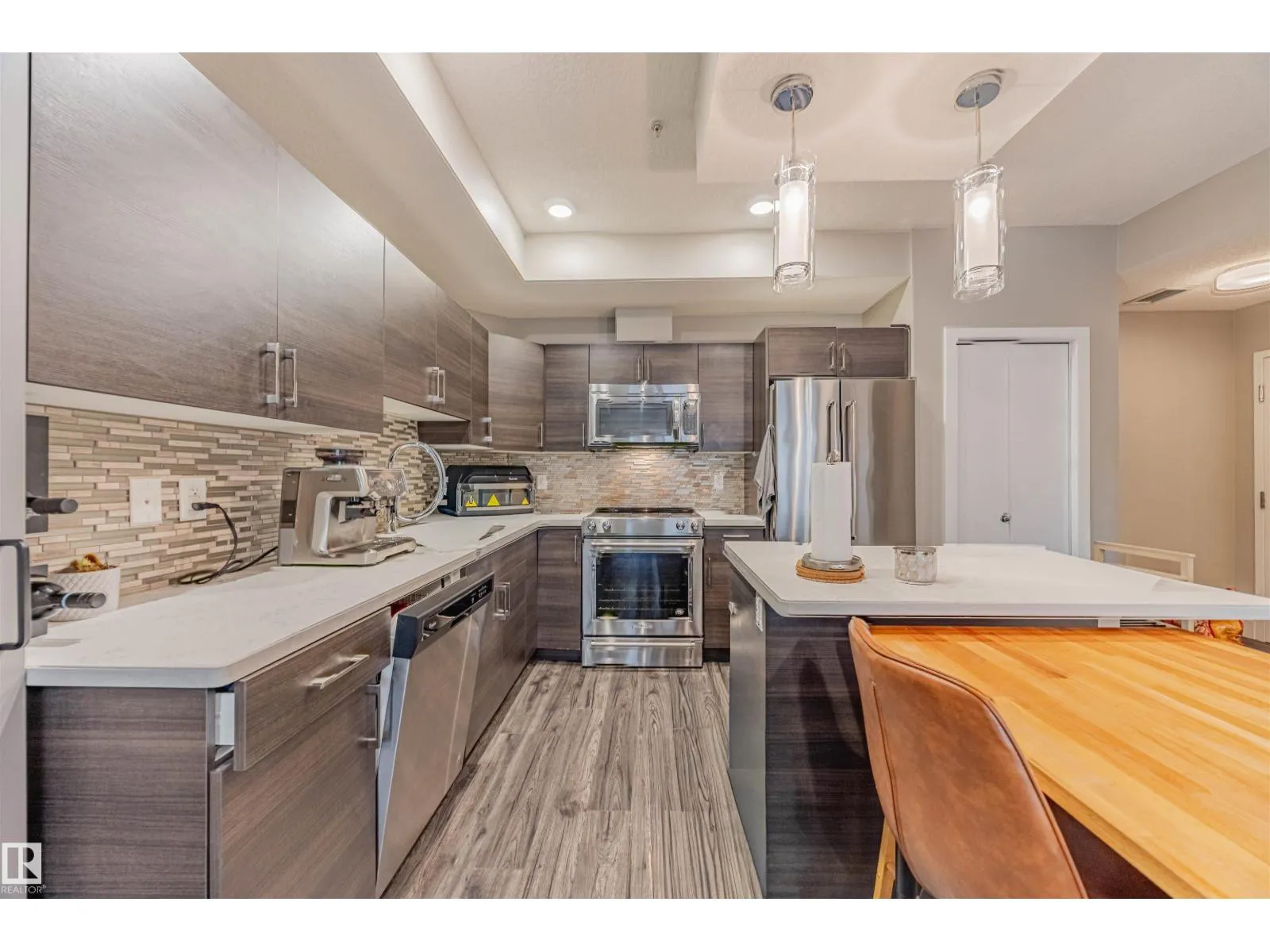 Near Whyte Avenue, the University of Alberta, and Edmonton's River Valley, Arbor 83 offers an ideal lifestyle with easy access to transportation, shops, dining, and more. This building has amenities like a lush living wall, a cozy fireplace lounge, bicycle storage, and a communal rooftop patio that offers breathtaking views of the Downtown Skyline. The contemporary 2-bedroom, 2-bathroom condo is designed with sophistication, featuring an airy layout with an upgraded kitchen boasting high-end cabinets. The Primary Bedroom includes a private 3-piece ensuite, while the second bedroom has convenient access to a 4-piece bathroom. Added benefits include air conditioning, in-suite laundry, UNDERGROUND TITLED HEATED PARKING, additional nearby storage, and a spacious balcony. Condo fees cover heating, insurance, reserve fund contributions and water; pets are allowed with board approval. Don't miss out! (id:27476)