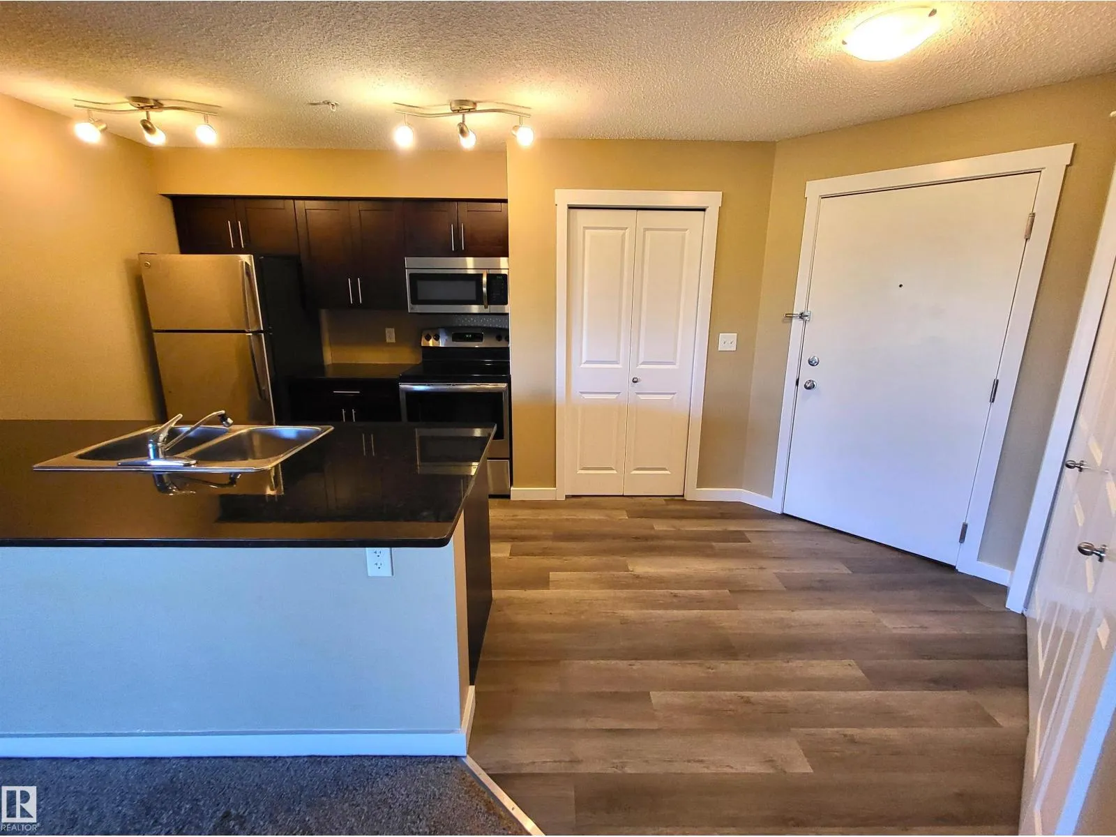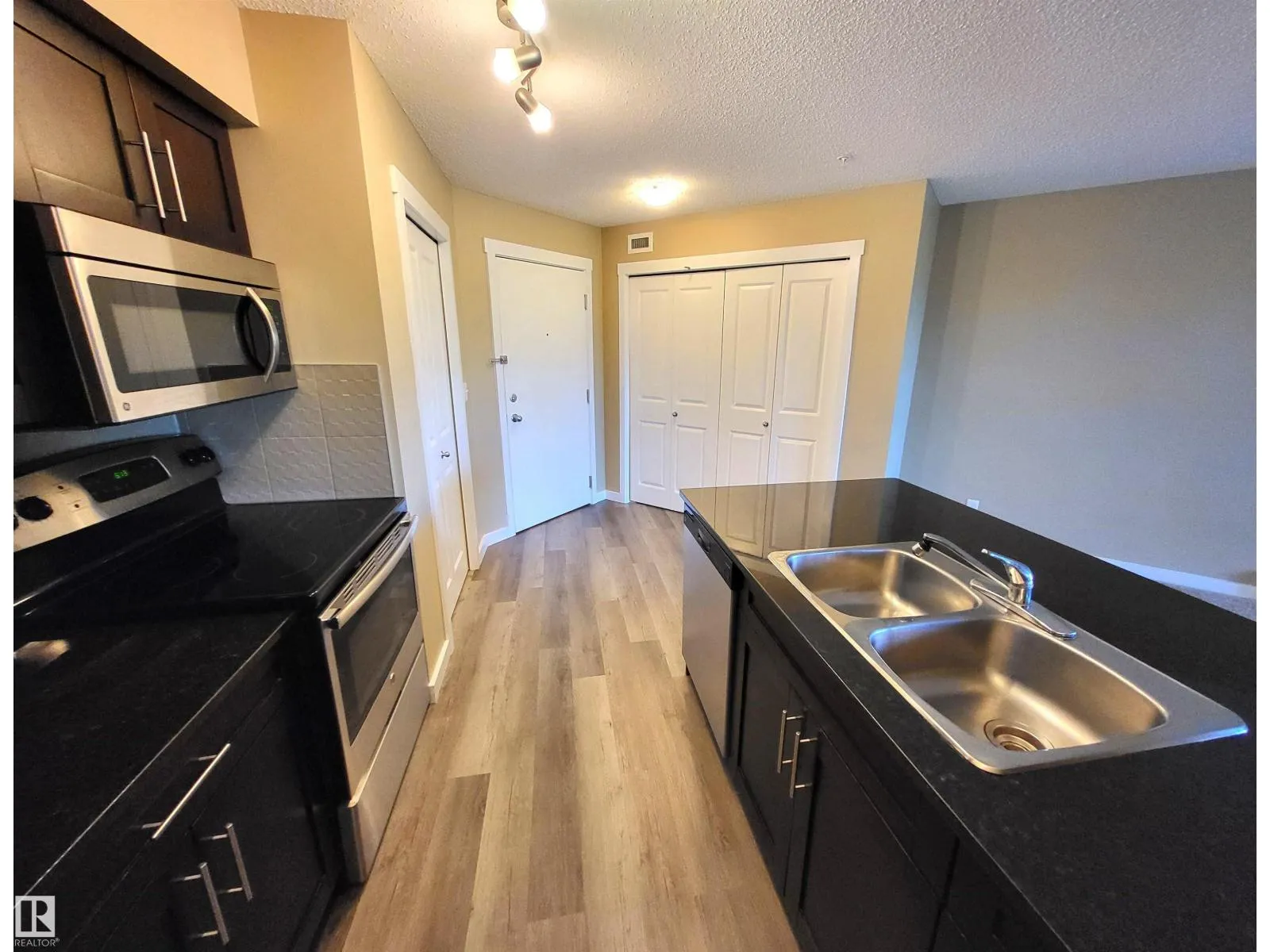 Discover modern elegance and unparalleled convenience in this breathtaking 2-bedroom, 1-bathroom condo nestled in the vibrant Aurora Greens community of South Edmonton. Perfectly positioned on the third floor with serene views of lush green space, this open-concept gem combines sophisticated design, premium finishes, and a prime location to offer a lifestyle of comfort and ease. With low condo fees that include heat and water, underground parking, and a well-managed building, this move-in-ready home is ideal for first-time buyers, young professionals, or savvy investors seeking a turnkey property in one of Edmontonâs most sought-after neighborhoods. The unit offers a huge balcony, rough in for future A/C, ceiling fan in the master, granite countertops, dark caramel cabinets, stainless appliances, stacked in suite laundry, bidet, and new flooring throughout. This one is a beauty! (id:27476)