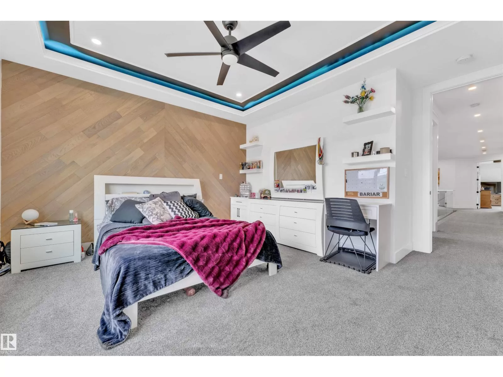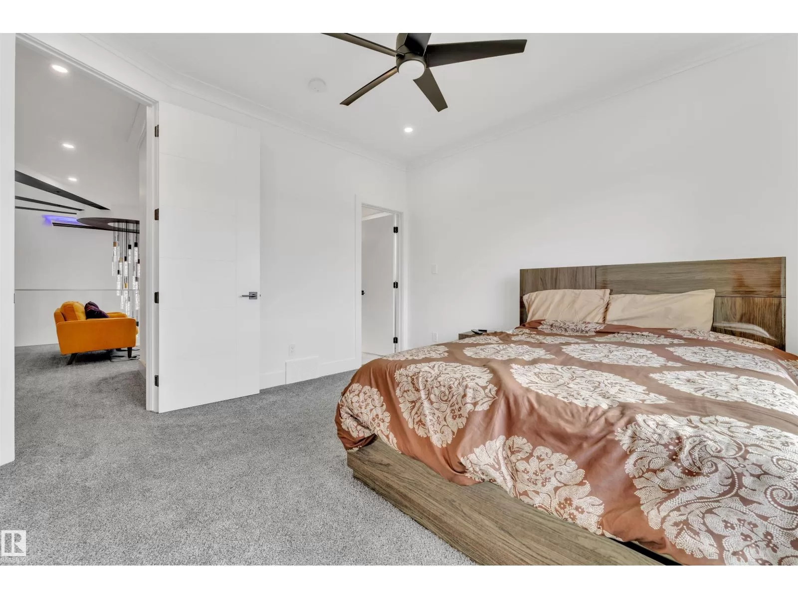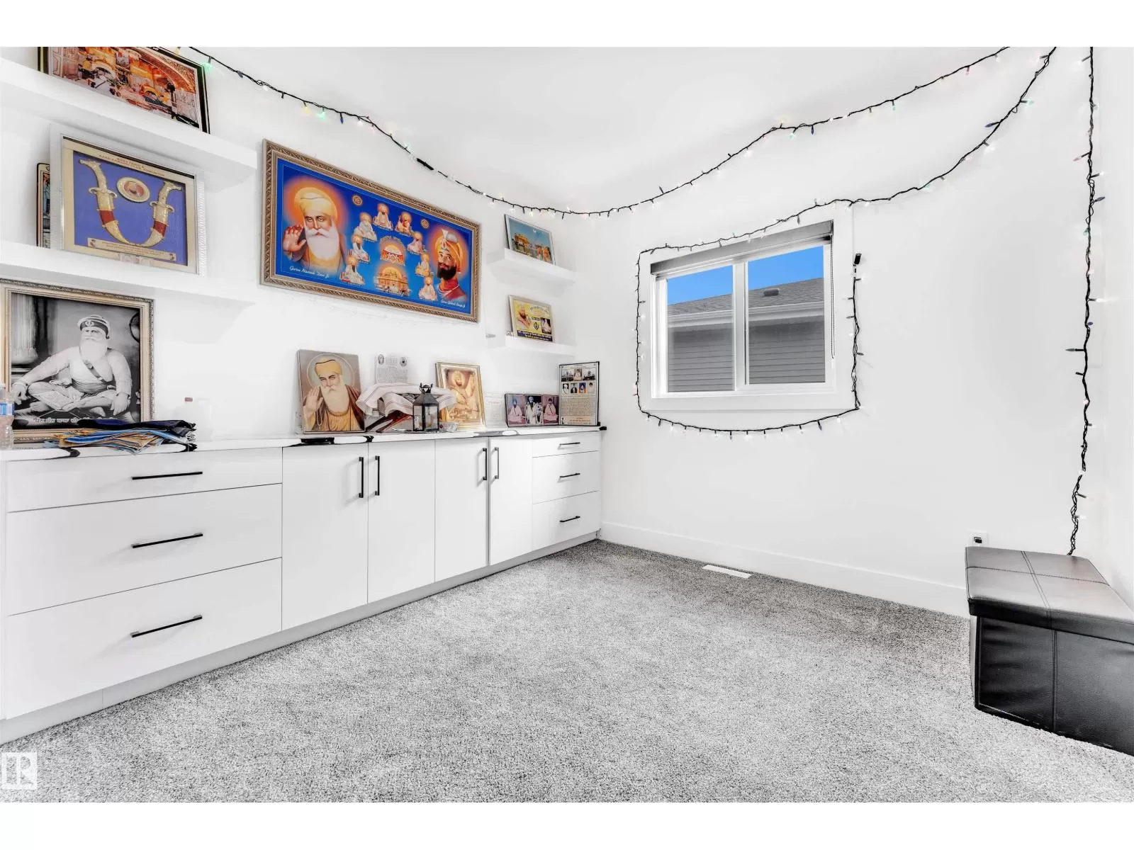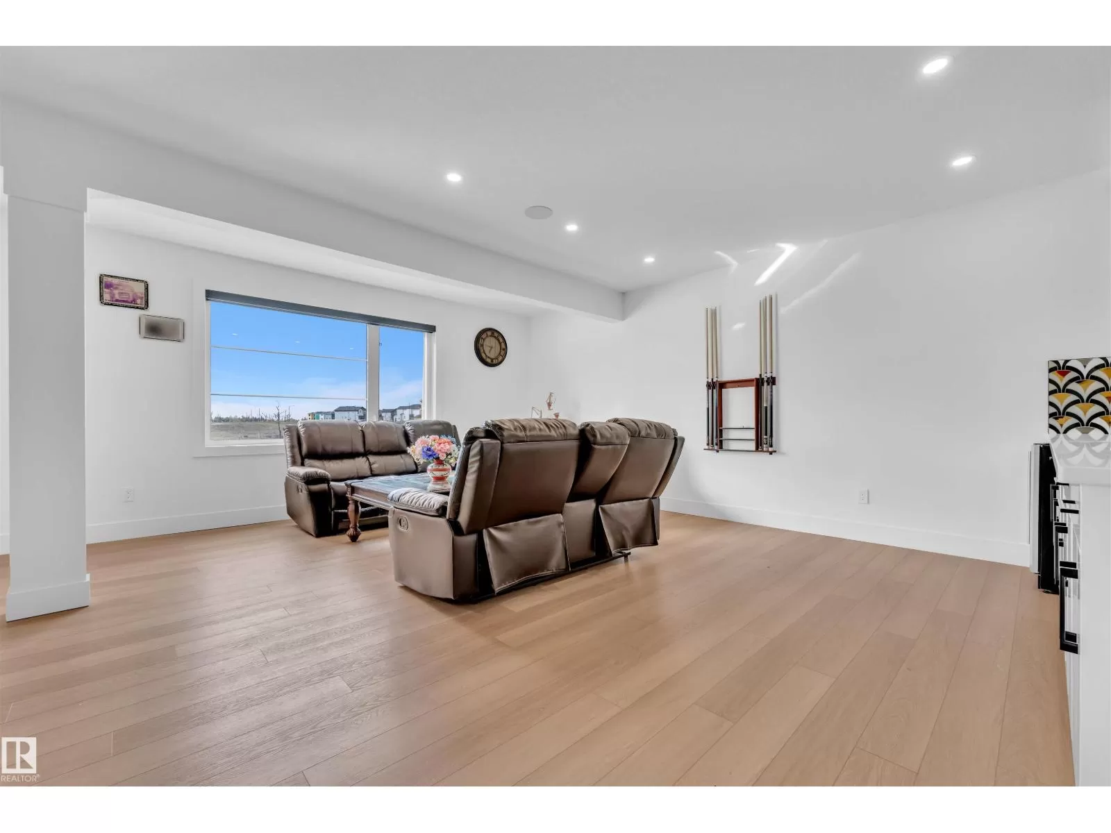 Experience luxury living in this 3920.71 sq.ft walkout home with a triple attached garage, backing onto a peaceful pond. The main floor boasts a bright open-to-below living room, cozy family area, a versatile bedroom/den, 3-pc bath, mudroom, and a beautifully finished main kitchen with quartz countertops and a separate spice kitchen. Upstairs offers a spacious primary suite, 3 additional bedrooms each with private ensuites, a laundry room, and a flexible bonus room, prayer/storage room. The walkout basement is an entertainerâs dream with 2 bedrooms, 2 full baths, a theatre room, and a large recreation area. (id:27476)