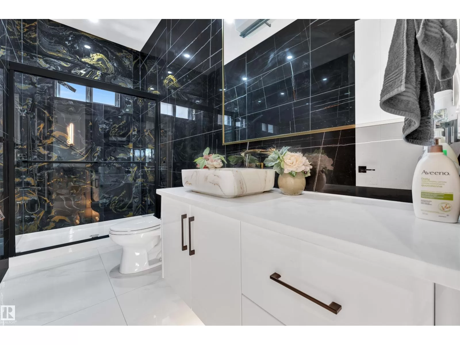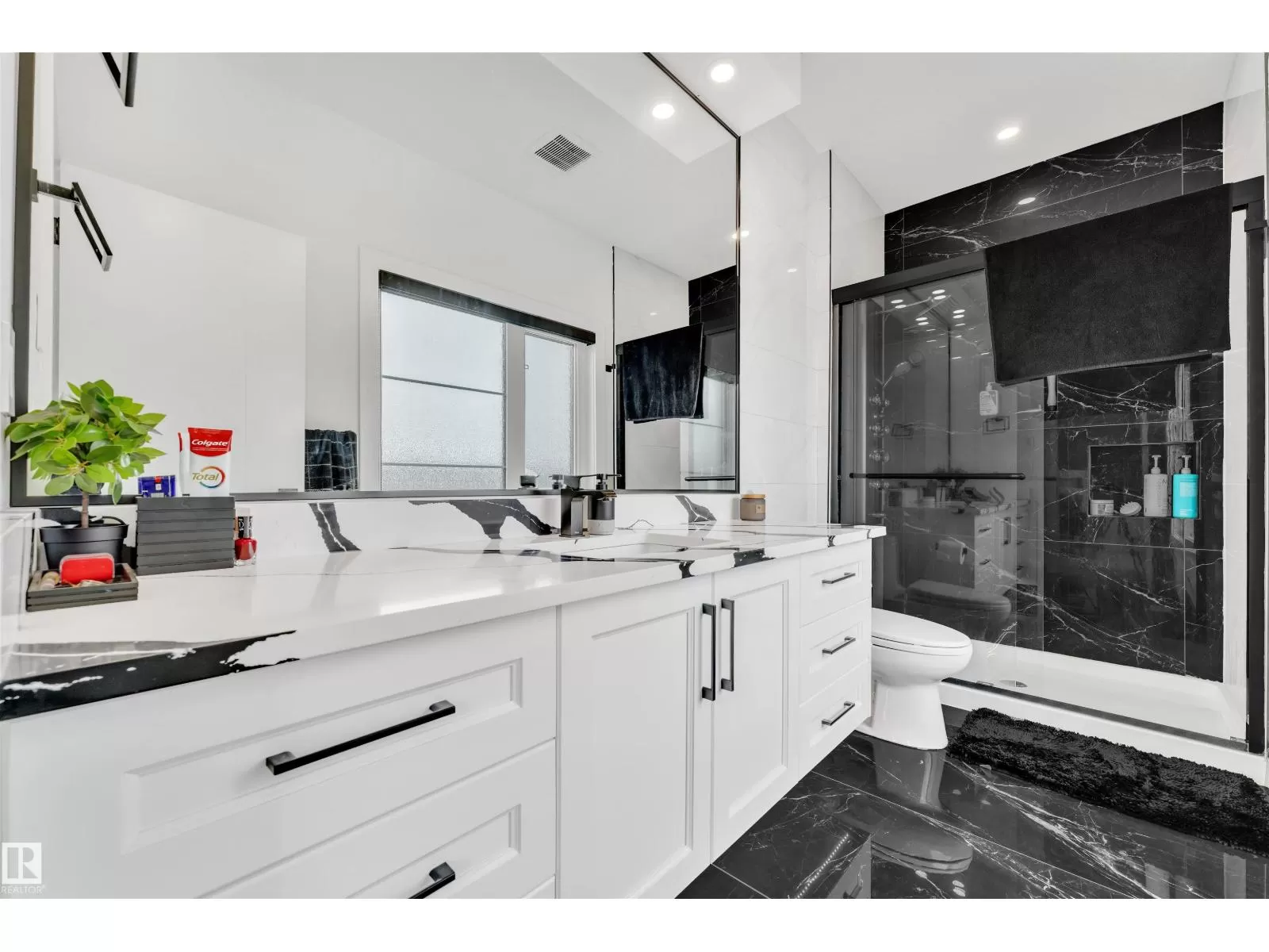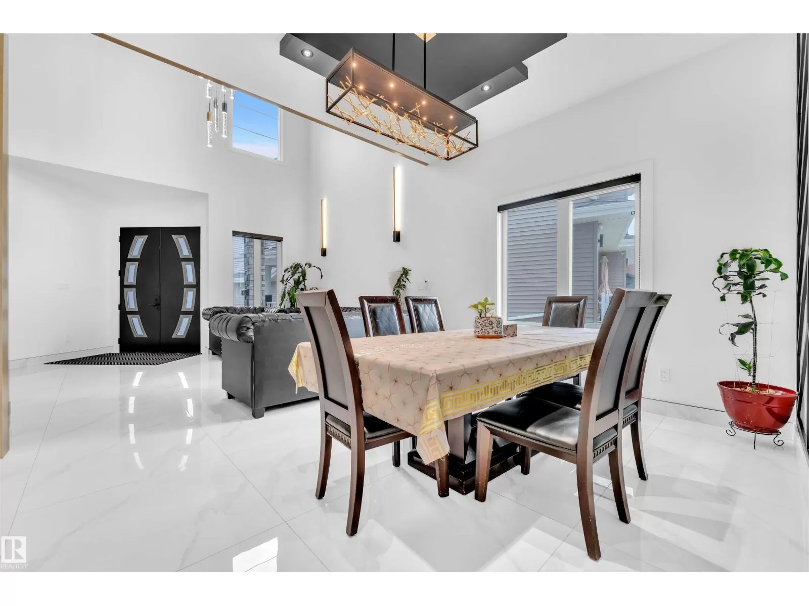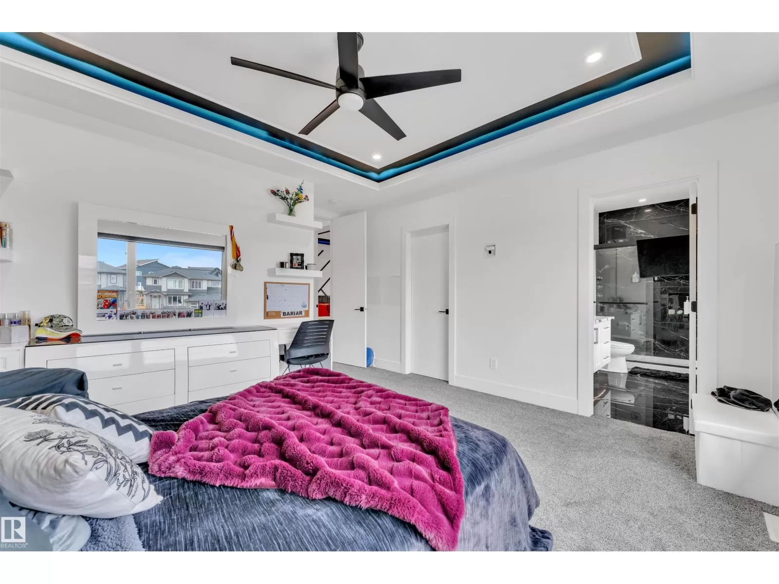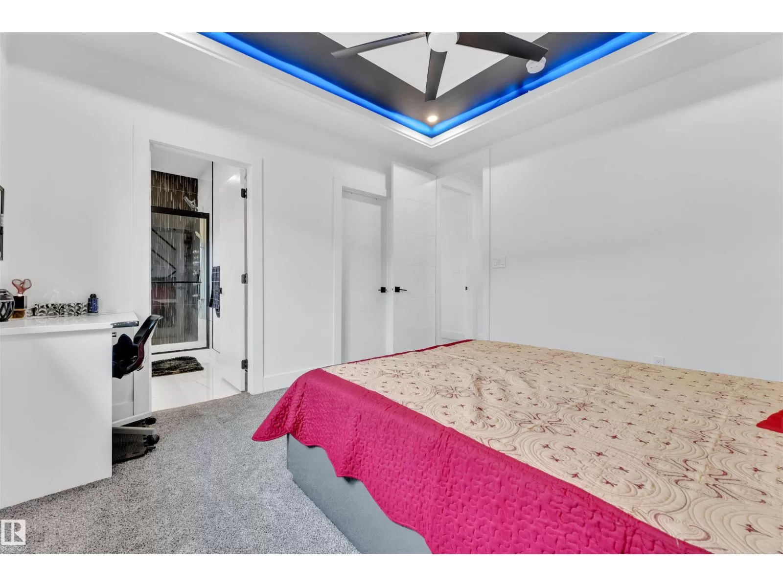 Experience luxury living in this 3920.71 sq.ft walkout home with a triple attached garage, backing onto a peaceful pond. The main floor boasts a bright open-to-below living room, cozy family area, a versatile bedroom/den, 3-pc bath, mudroom, and a beautifully finished main kitchen with quartz countertops and a separate spice kitchen. Upstairs offers a spacious primary suite, 3 additional bedrooms each with private ensuites, a laundry room, and a flexible bonus room, prayer/storage room. The walkout basement is an entertainerâs dream with 2 bedrooms, 2 full baths, a theatre room, and a large recreation area. (id:27476)
