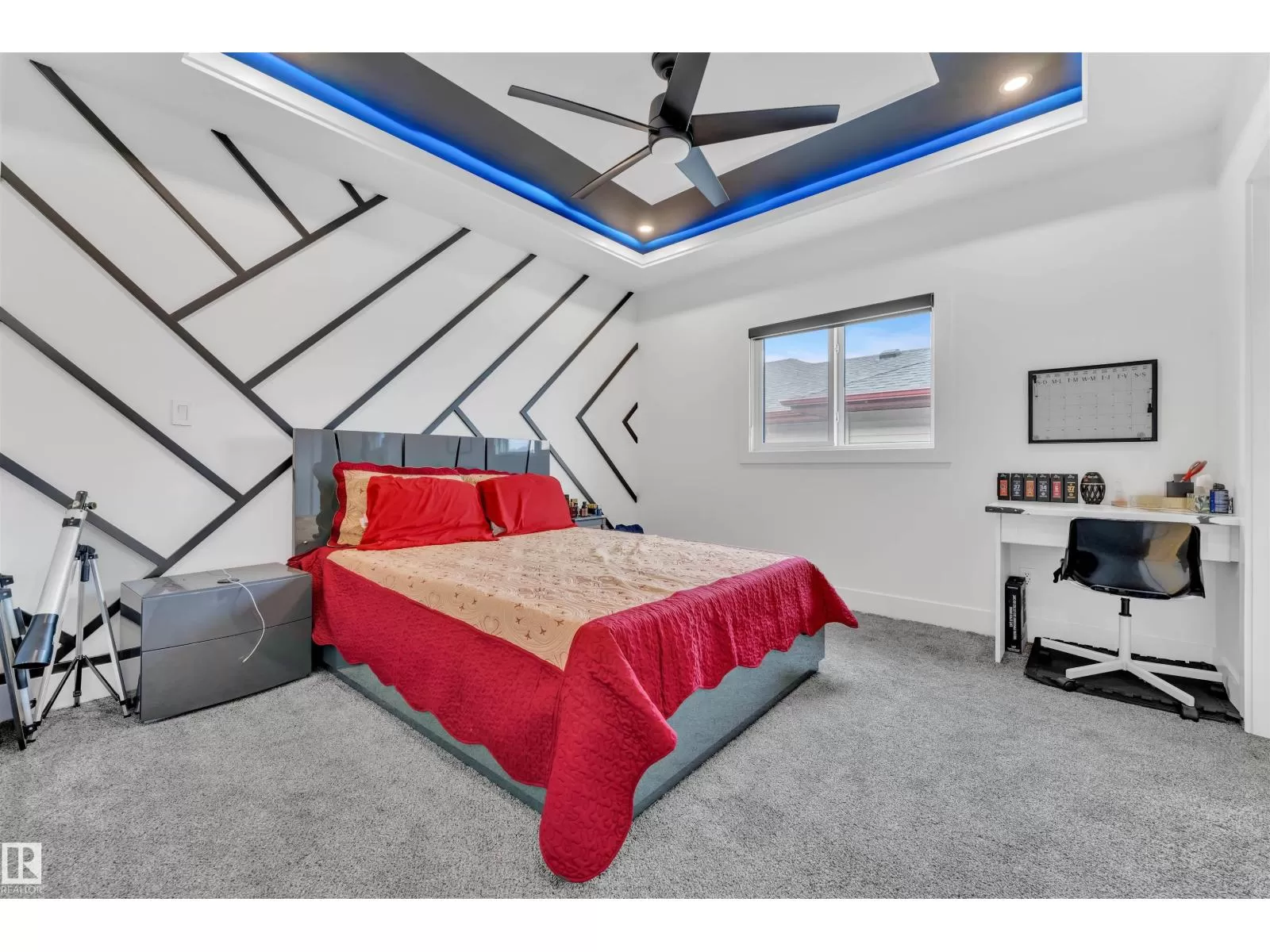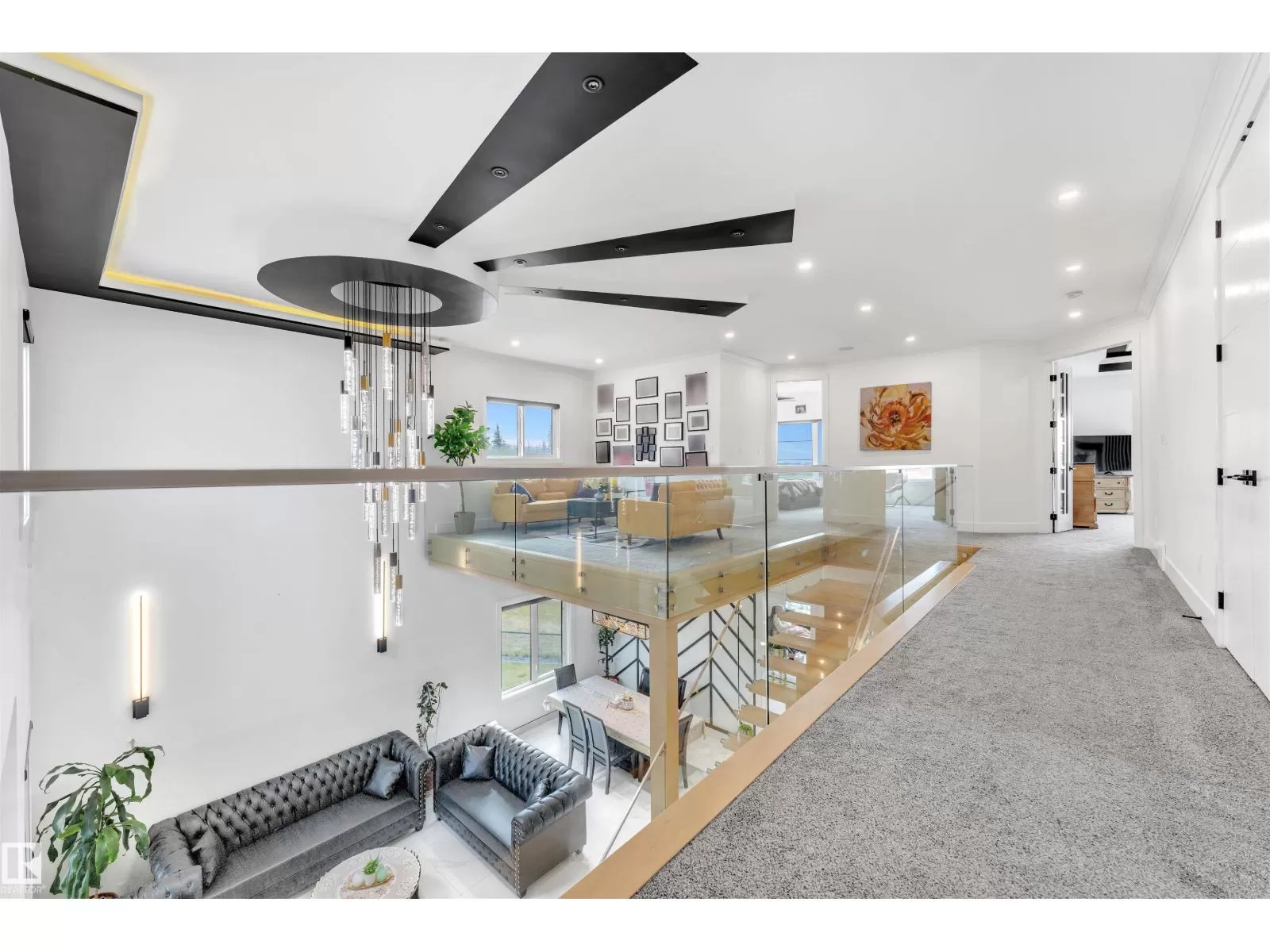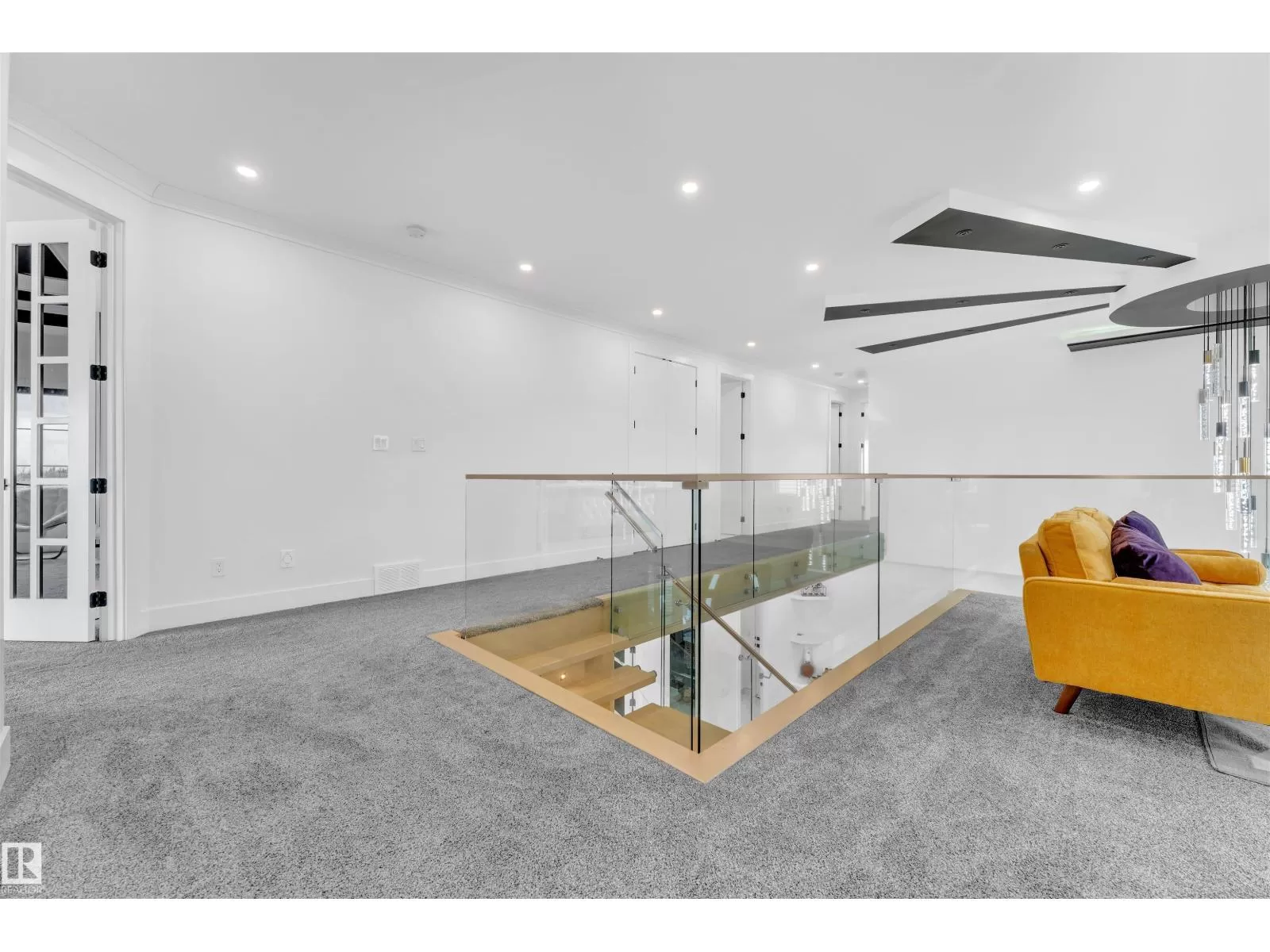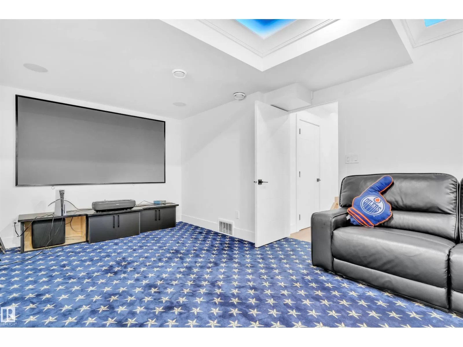 Experience luxury living in this 3920.71 sq.ft walkout home with a triple attached garage, backing onto a peaceful pond. The main floor boasts a bright open-to-below living room, cozy family area, a versatile bedroom/den, 3-pc bath, mudroom, and a beautifully finished main kitchen with quartz countertops and a separate spice kitchen. Upstairs offers a spacious primary suite, 3 additional bedrooms each with private ensuites, a laundry room, and a flexible bonus room, prayer/storage room. The walkout basement is an entertainerâs dream with 2 bedrooms, 2 full baths, a theatre room, and a large recreation area. (id:27476)