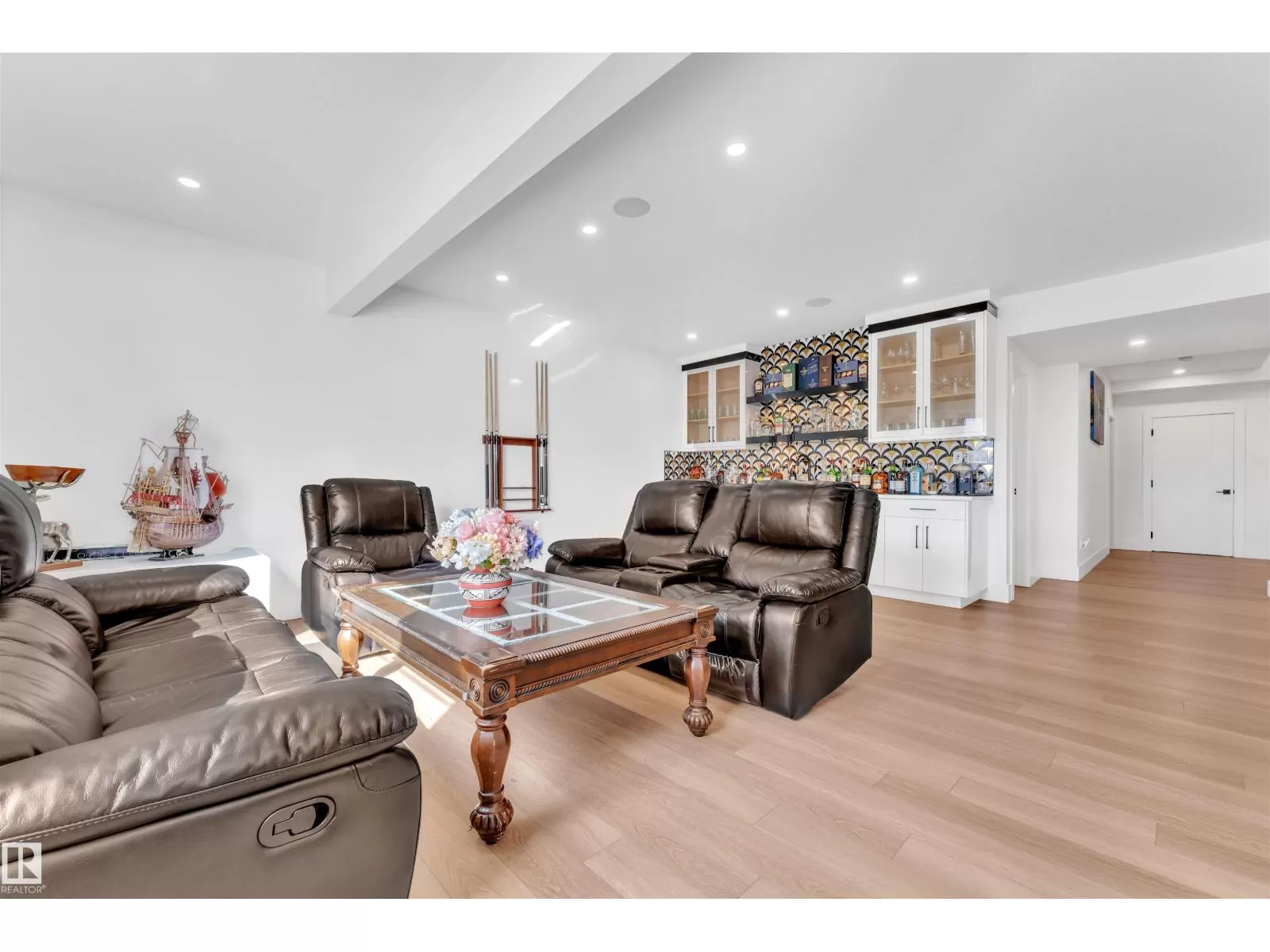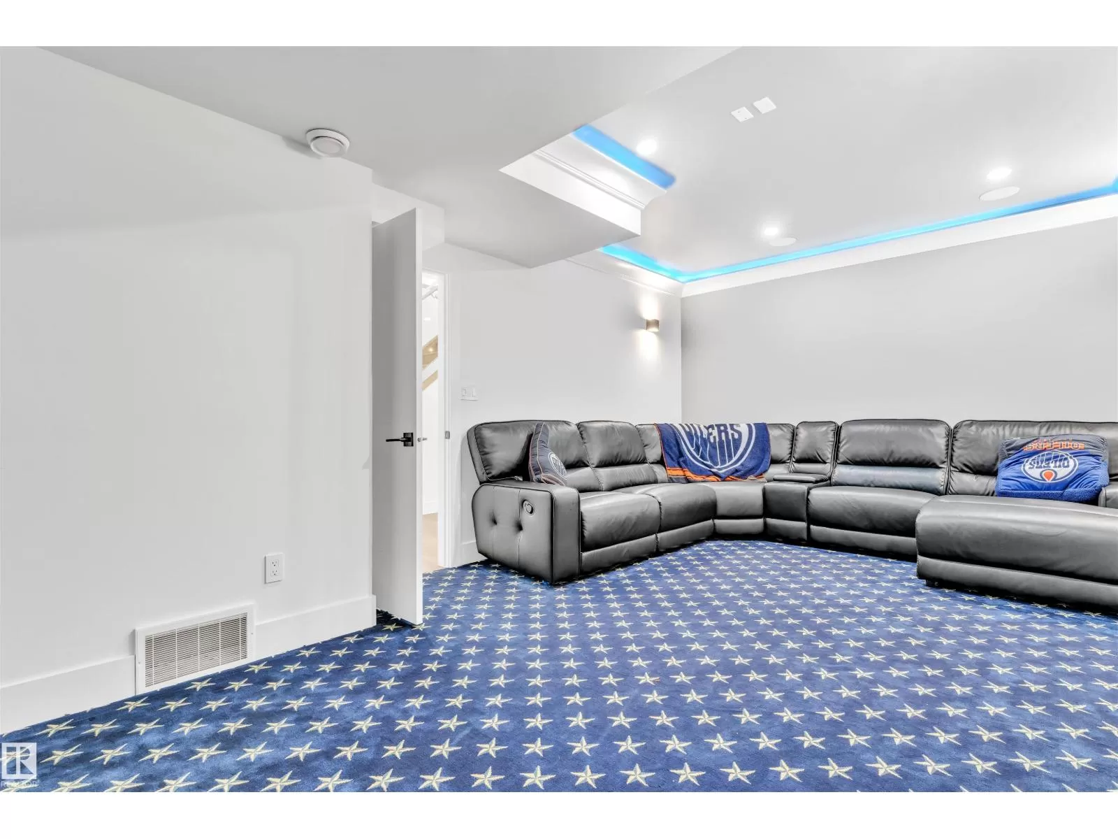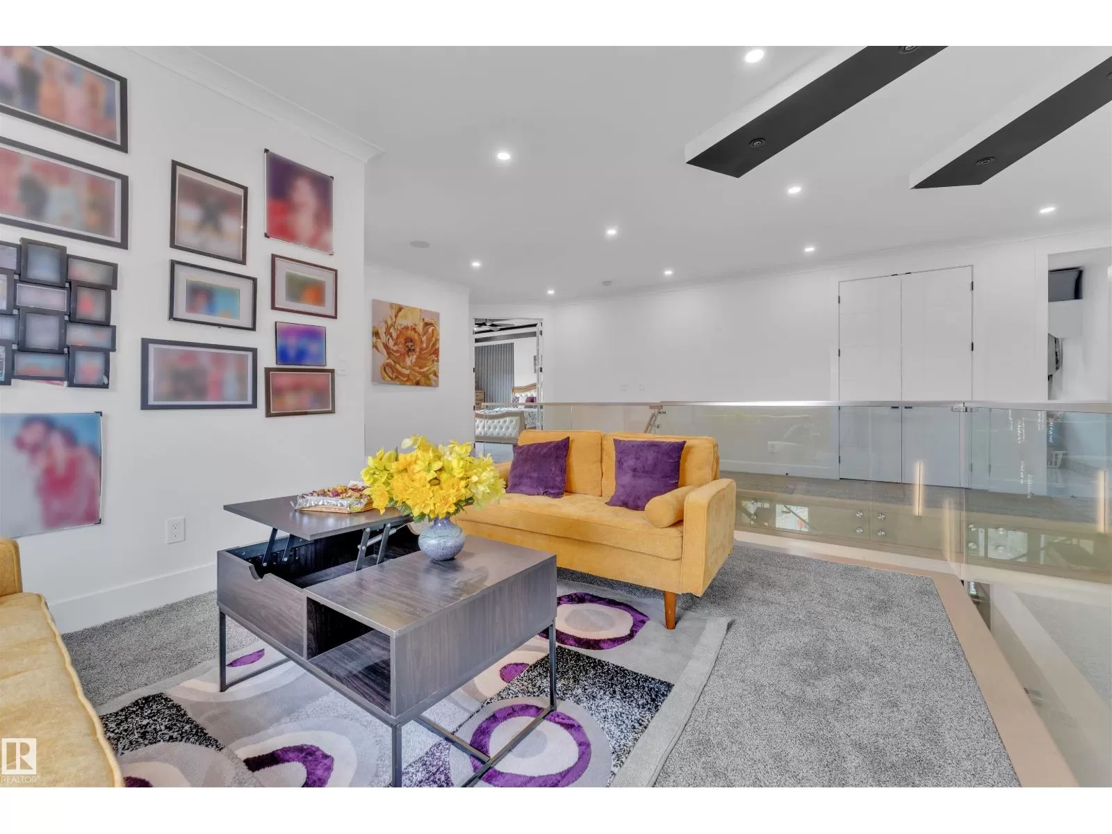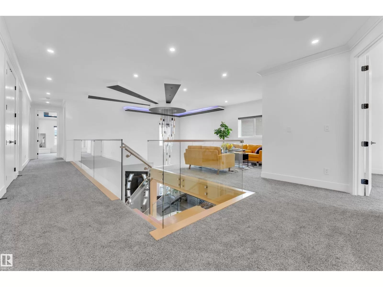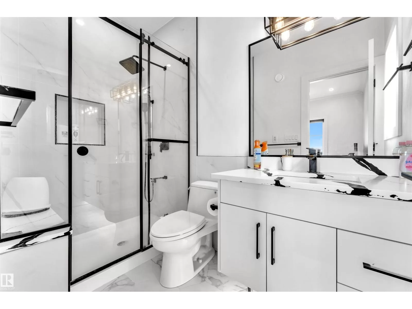 Experience luxury living in this 3920.71 sq.ft walkout home with a triple attached garage, backing onto a peaceful pond. The main floor boasts a bright open-to-below living room, cozy family area, a versatile bedroom/den, 3-pc bath, mudroom, and a beautifully finished main kitchen with quartz countertops and a separate spice kitchen. Upstairs offers a spacious primary suite, 3 additional bedrooms each with private ensuites, a laundry room, and a flexible bonus room, prayer/storage room. The walkout basement is an entertainerâs dream with 2 bedrooms, 2 full baths, a theatre room, and a large recreation area. (id:27476)