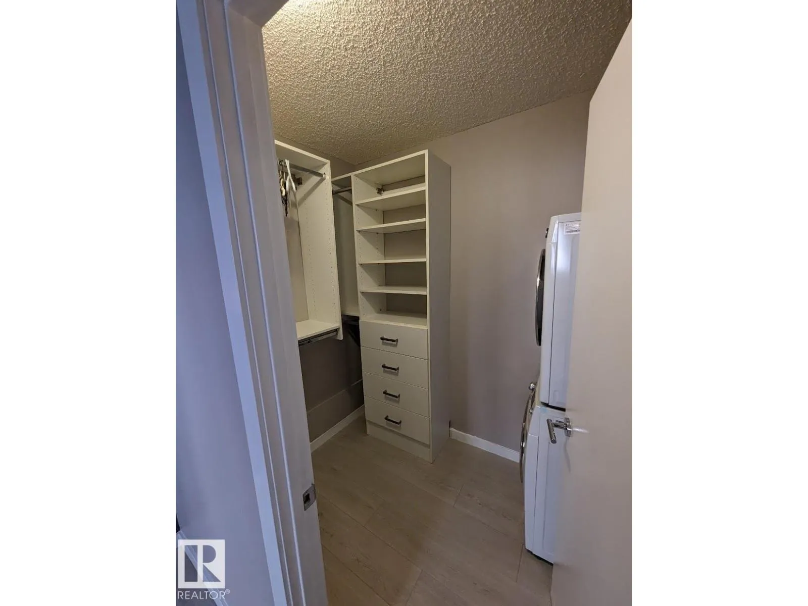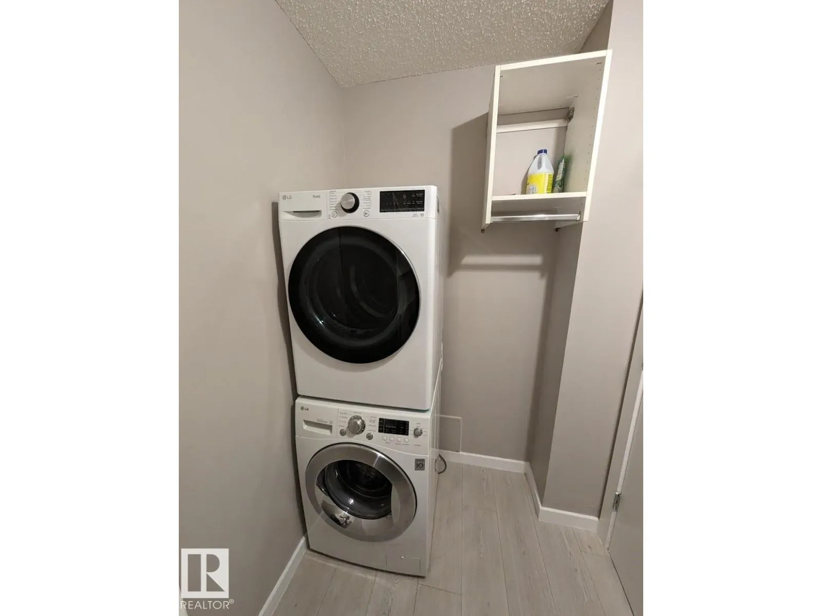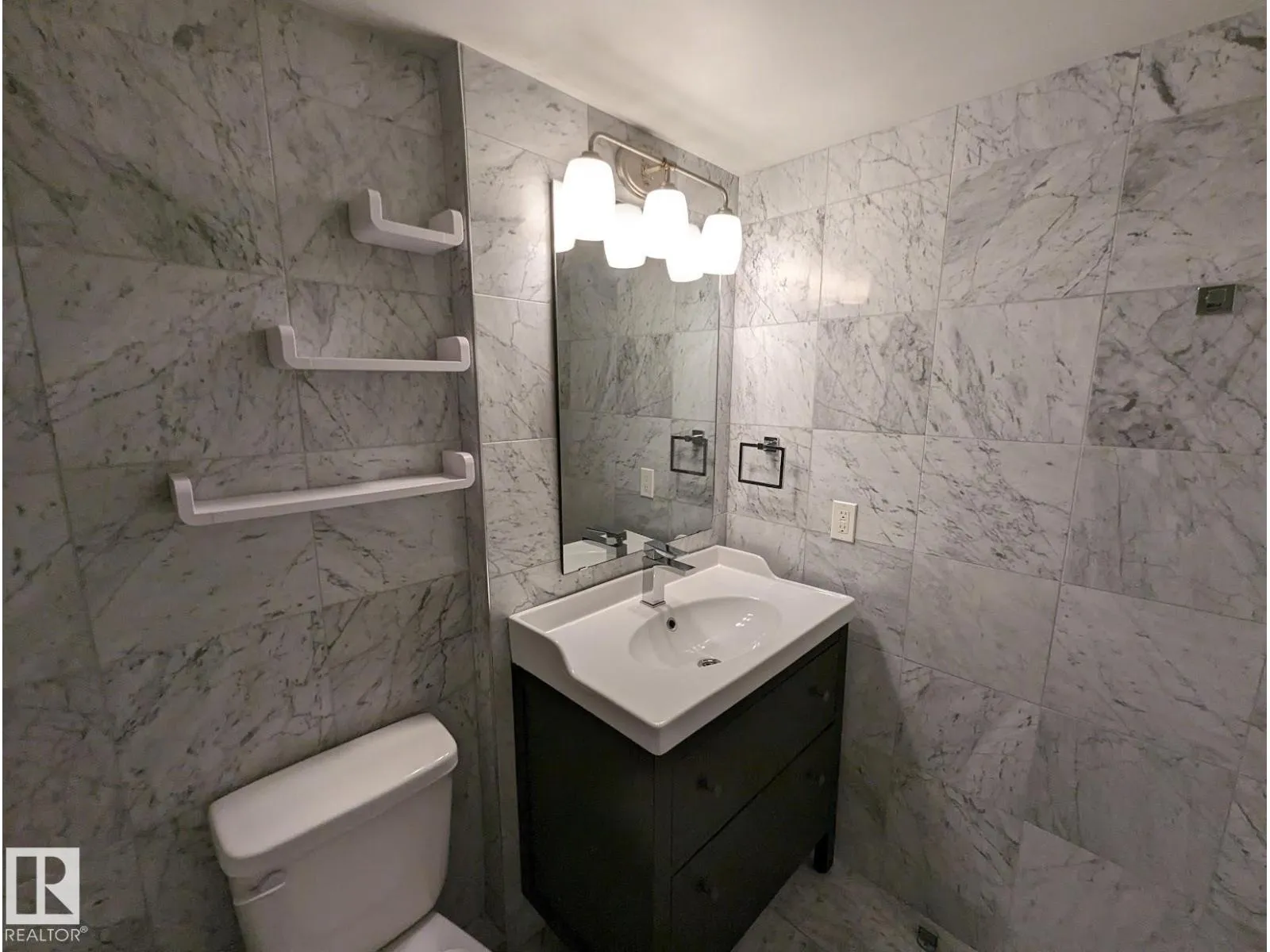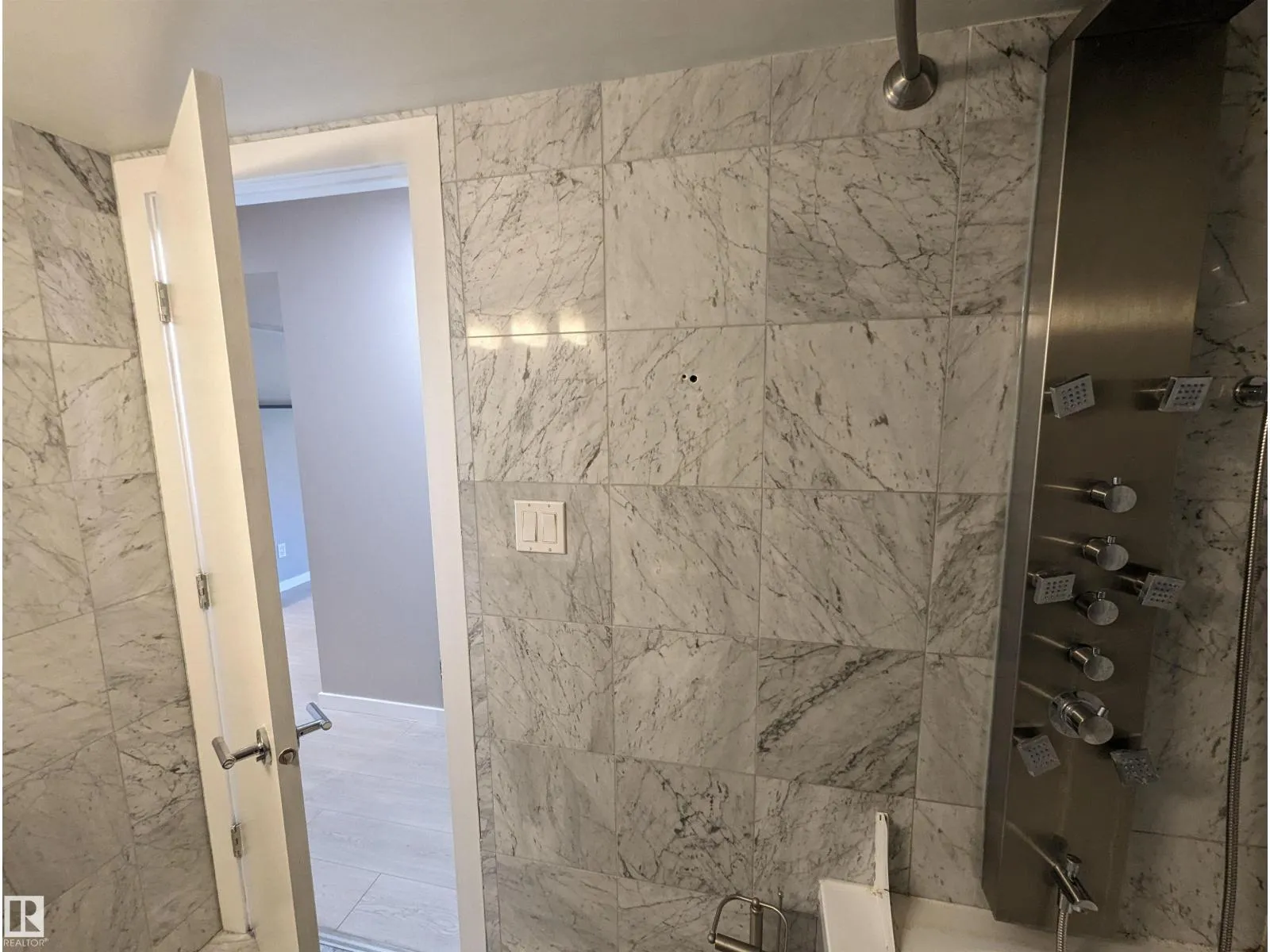 Welcome to The Fifteen! Located on the second level, just off Jasper Ave & blocks away from the BREWERY & ICE DISTRICT! Prime location, residents easy access to superb shopping, dining, the University of Alberta & Grant MacEwan. This sleek unit boasts a modern design with pristine white tile floors, white kitchen featuring Quartz countertops, eating bar, & stainless steel appliances. The spacious layout includes a bright living room, dining area, dedicated office space, convenient in-suite laundry facilities, and an impressive 4-piece marble bathroom equipped with a high-end multi-body spray nozzle shower and luxurious soaker tub. The master bedroom features a walk-in closet for added convenience. Complete with air conditioning, a parking stall, and a covered patio, this unit offers both comfort and functionality. Residents of this well-managed building also enjoy access to top-floor amenities including an exercise/yoga area and a rooftop deck boasting breathtaking 360-degree views of downtown/Oliver. (id:27476)