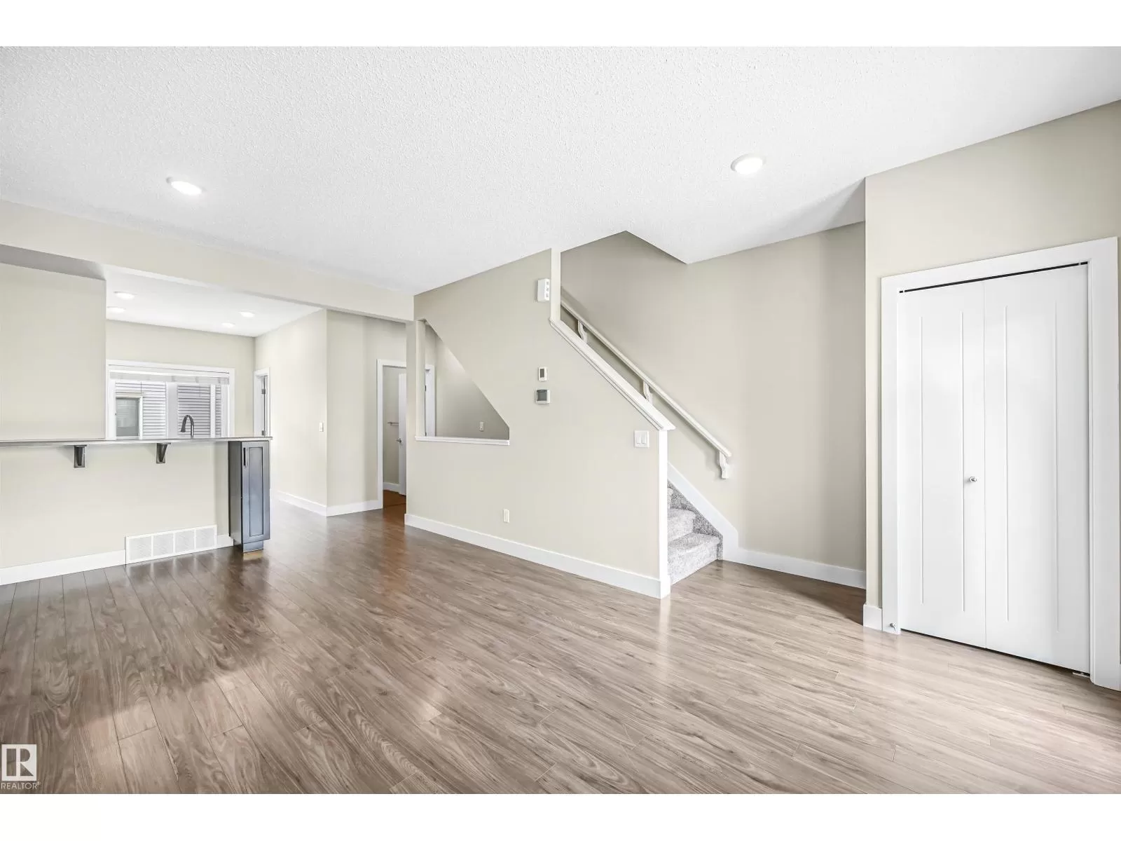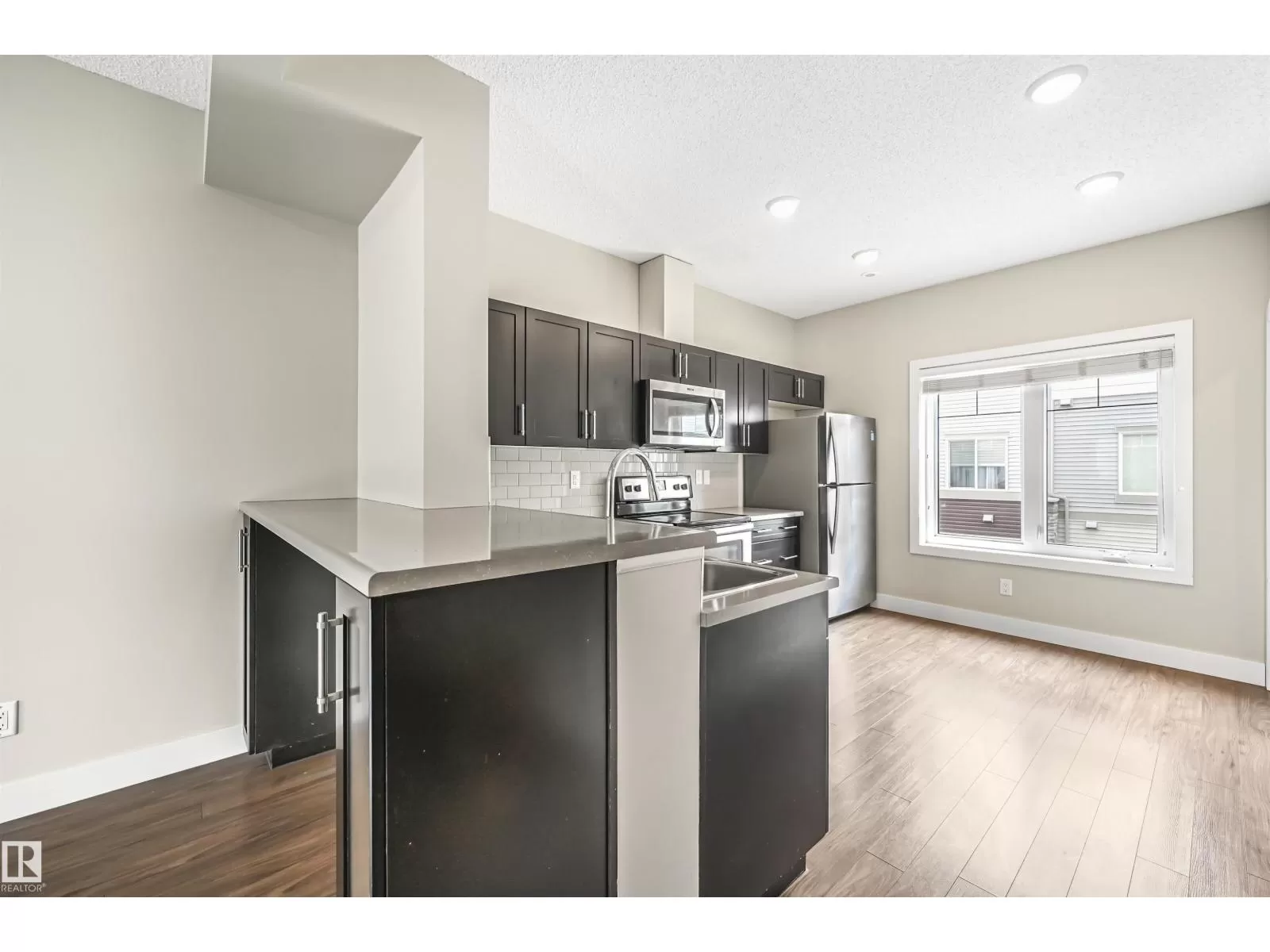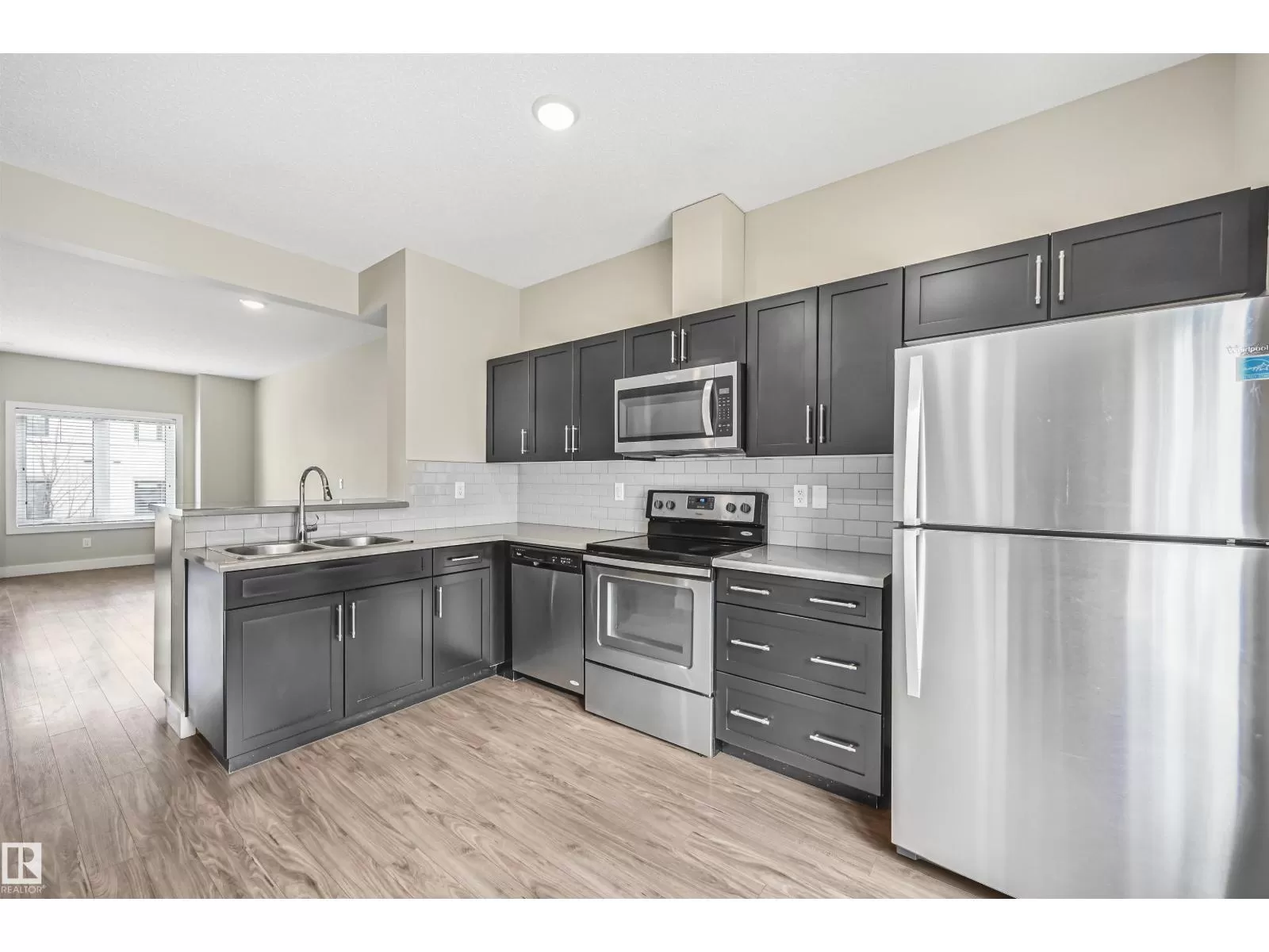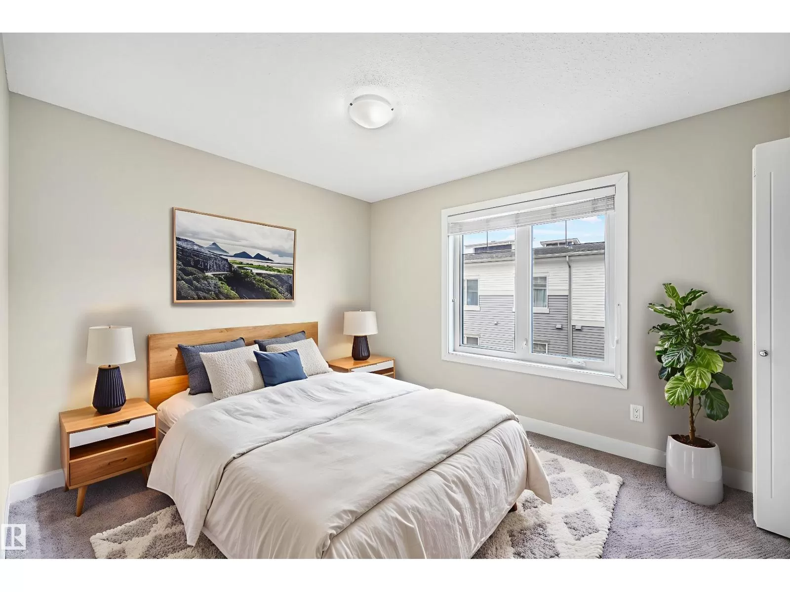 Welcome to this absolutely stunning and spacious 2 bedroom/2.5 bath townhome in desirable Walker. Main floor boasts 9' ceilings & quality finishings. The gorgeous kitchen has SS appliances, walk-in pantry & eating bar. Living room features an attached balcony to enjoy the fresh air & green space. The main level is equipped with a 2.5 bath & vinyl flooring. Upper level boasts 2 well-sized bedrooms. Primary bedroom has 3pc ensuite & walk in closet. Plus 2nd 4pc bathroom upstairs & laundry. Other features include a single attached garage, a flex room for office or play room, plenty of storage, energy-efficient mechanical including tankless hot water for a lower utility bill. This well maintained complex offers visitor parking & is conveniently located close to shopping, walking trails & lake. Quick proximity to Anthony Henday, South Common, schools & public transportation. A must see! (id:27476)