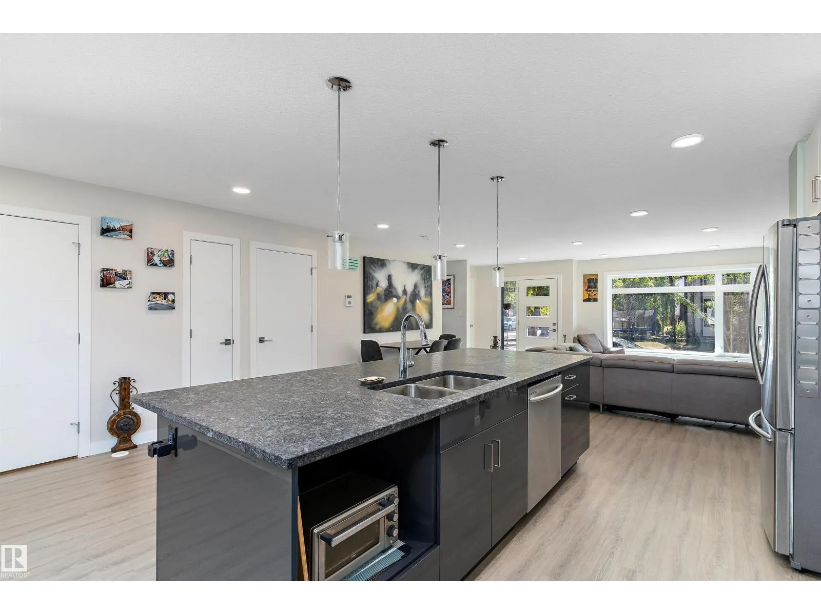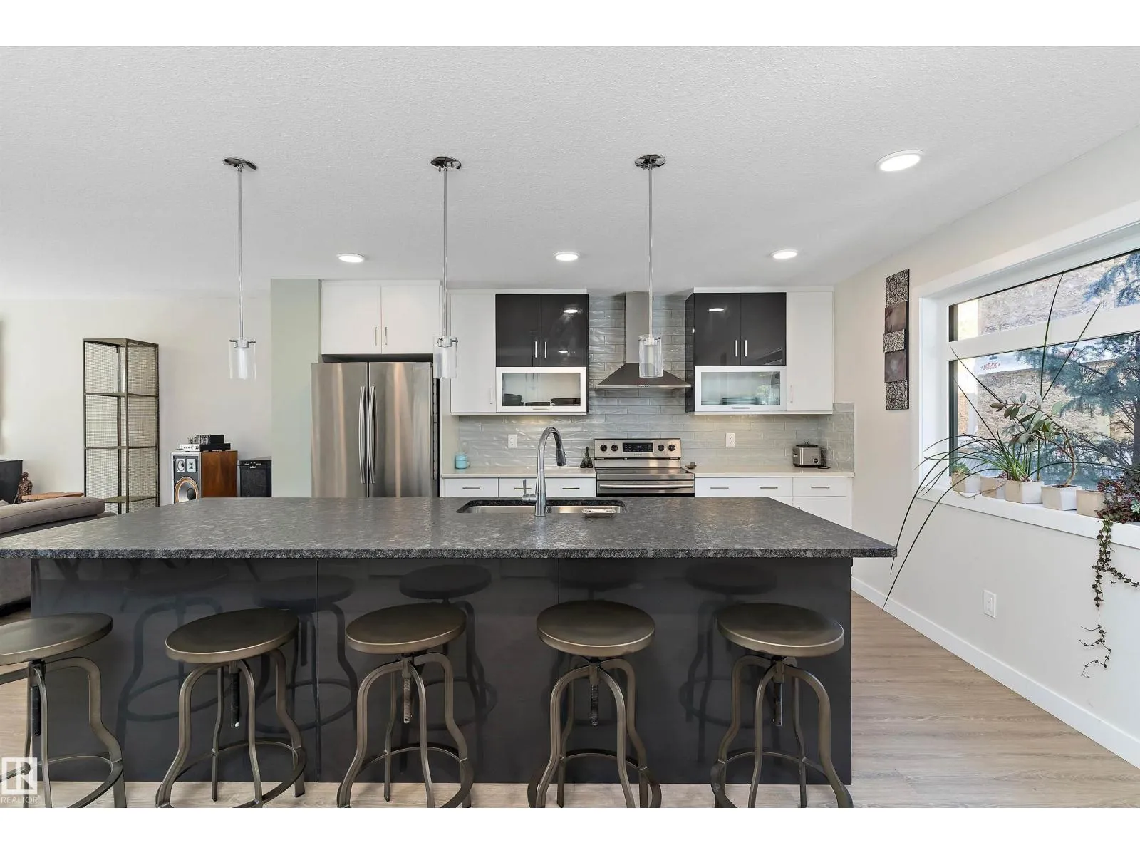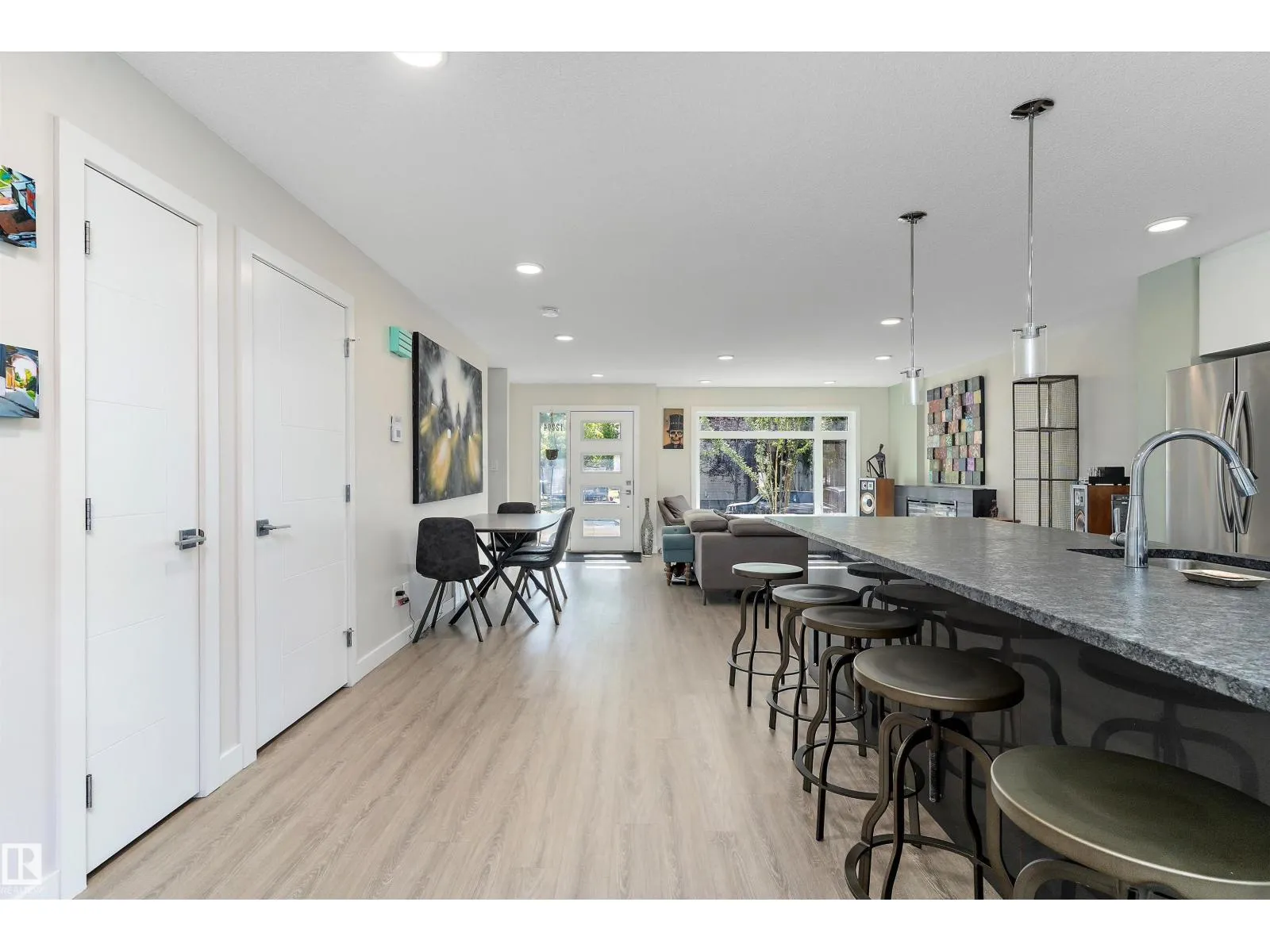 Modern 3-storey triplex townhouse in Inglewood offering 4 bedrooms, 3.5 baths, and almost 2,000 sq. ft. of living space with garage parking. Steps from the 124 St Arts District and U of A trails, this home blends style and location. Enjoy a private rooftop terrace with stunning city views and a loft with wet barâperfect for entertaining. The open-concept main floor features a chefâs kitchen with high-end appliances, granite & quartz counters, large eating bar, and bright dining and family rooms. Upstairs offers 3 bedrooms, a 5-pc bath, laundry, and a primary suite with 4-pc ensuite and walk-in closet. The finished basement adds a bedroom and 3-pc bath, ideal for guests or a home office. All furniture and household items included, making this a true turn-key, move-in ready home. Donât miss this rare opportunity in one of Edmontonâs most desirable infill communities! (id:27476)