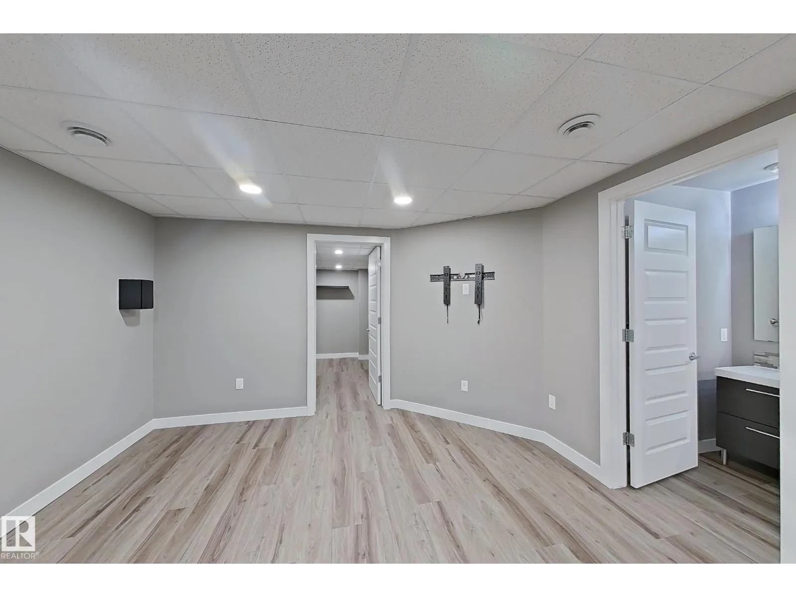 Welcome to this stunning ,meticulously maintained, centrally air-conditioned two-story home with over 2,100 sq. ft. of thoughtfully designed living space blending comfort and style at every turn The main floor boasts 9-foot ceilings and a spacious kitchen with dark cabinetry, a large island, and a walk-in pantry. The open-concept living and dining area flows effortlessly, complemented by a dedicated office space and a half bathroom. Upstairs offers a large primary bedroom with two walk-in closets and a 4-piece luxurious ensuite, plus two additional bedrooms, a 3-piece bathroom, and convenient upstairs laundry. The fully finished (permitted) basement includes a bedroom, den, bar area, 3-piece bath, and extra living spaceâideal for entertaining or relaxing. A rare detached garage adds significant value, providing secure parking and extra storage. The beautifully landscaped yard adds charm and curb appeal. Enjoy exclusive lake access and premium community amenities in this desirable neighborhood. (id:27476)