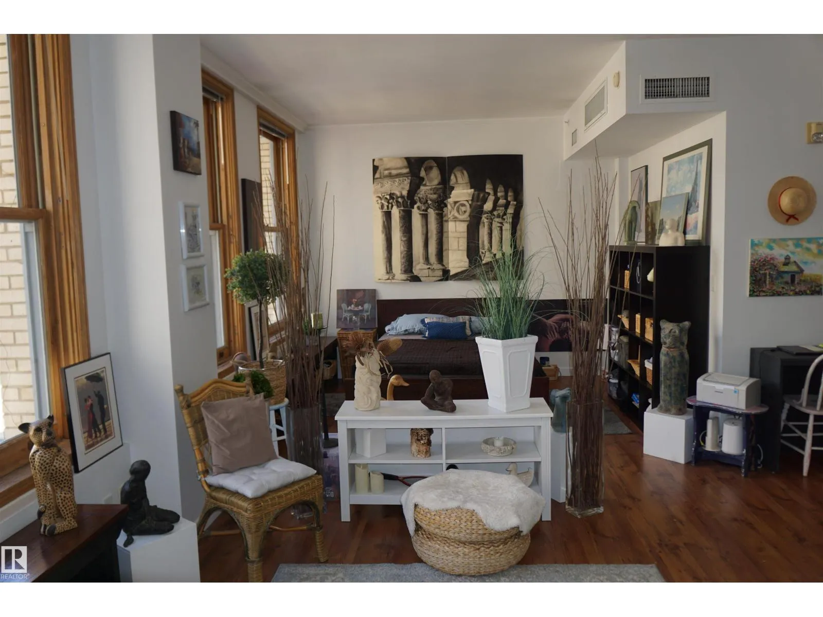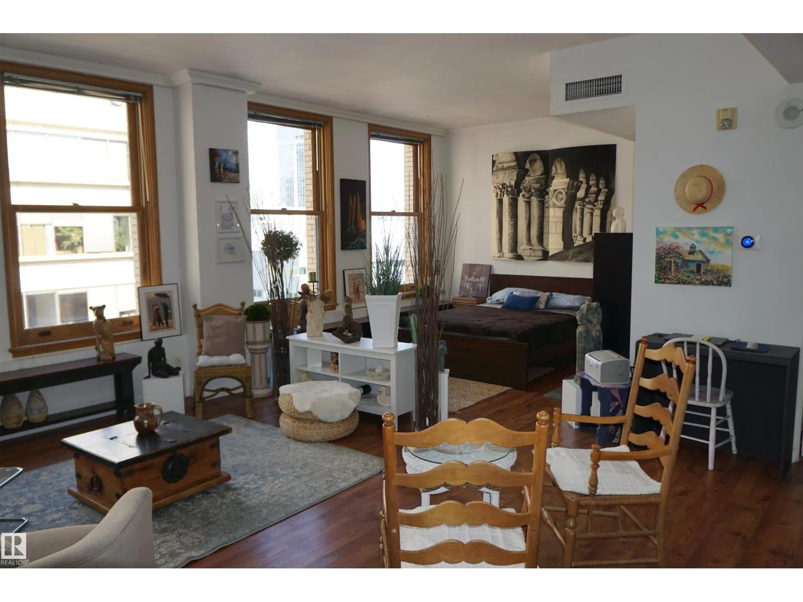 Experience elevated downtown living in this beautifully updated north-facing loft in the iconic McLeod Building Built in 1915 and designated as a Provincial Historic Resource, this landmark was constructed with such precision and quality that it still stands today as a symbol of Edmontonâs early 20th-century growth and architectural ambition. Perched above the bustle, Unit #808 offers a peaceful urban retreat overlooking Rice Howard Way, where leafy summer trees, vibrant patios, and pedestrian charm set the scene. Inside, youâll enjoy a spacious open-concept layout flooded with natural light, soaring ceilings, and character-rich original wood-framed windows. Recent upgrades with a renovated kitchen with modern appliances, stylish flooring and tilework. The condo combines timeless heritage with modern convenience â and the condo fees include power, heat, and water, adding value and ease to your lifestyle. Youâre just steps from the LRT, bus routes, and some of Edmontonâs most notable landmarks. (id:27476)