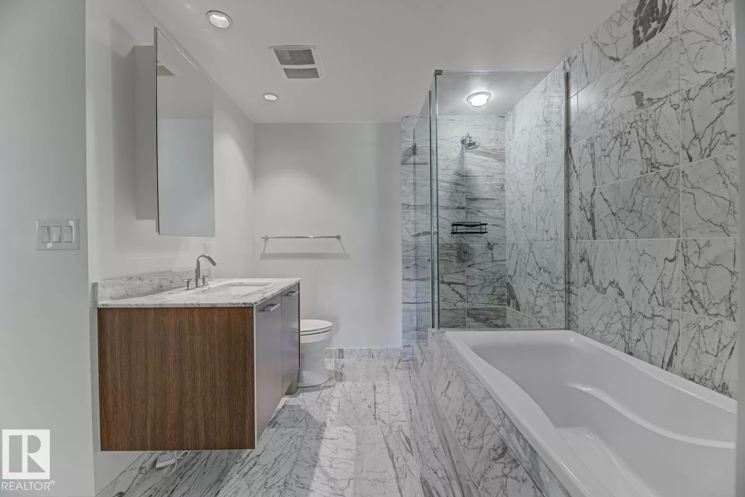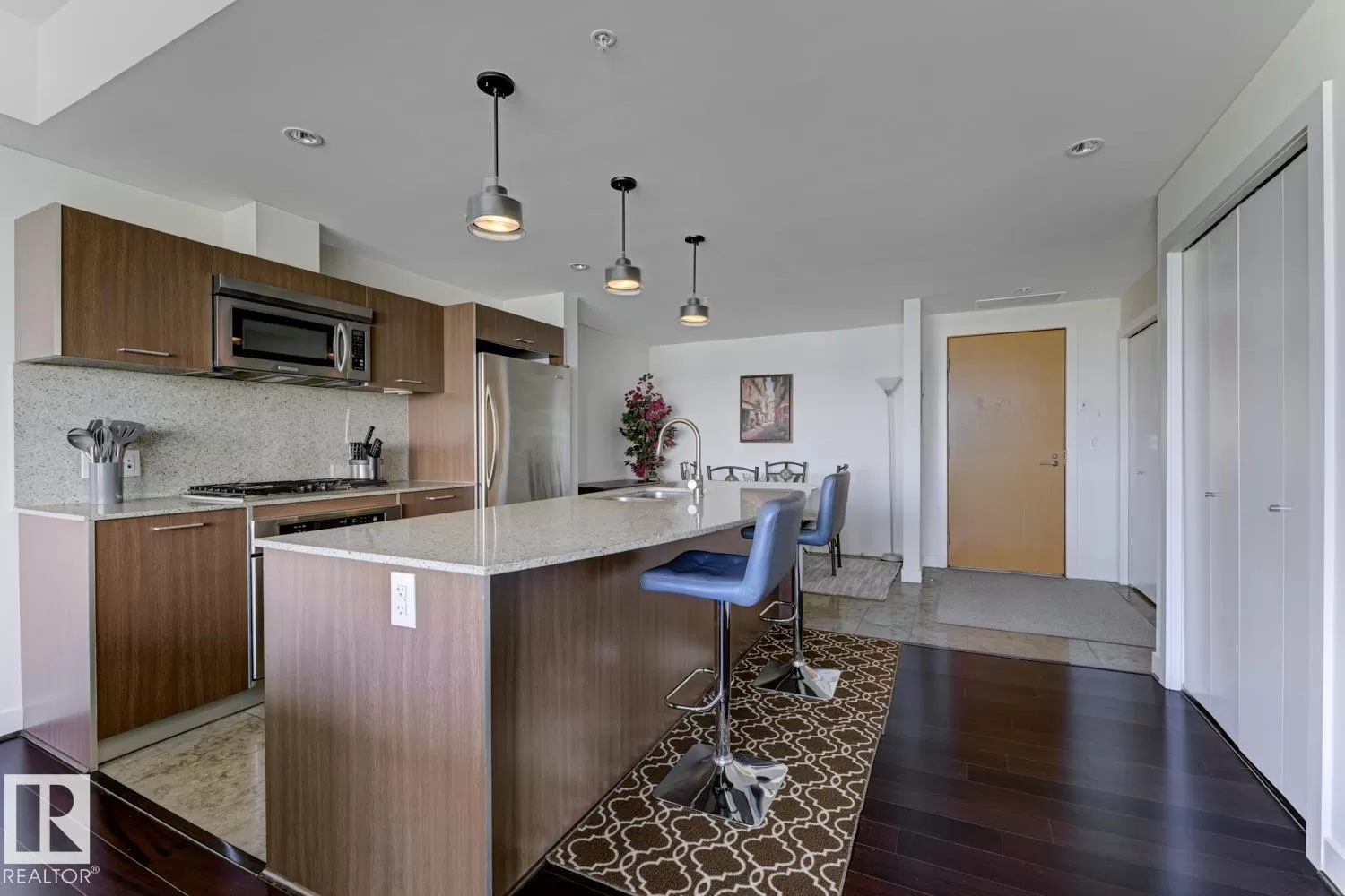 This Bright Top floor condo has a gourmet kitchen with granite countertops, stainless steel appliances with a gas stove and a large island which is perfect for entertaining! The spacious bedroom has a walkthrough closet with direct access to your spa bathroom with both shower and soaker tub. This well maintained unit has an electrical fireplace and a balcony with a gas line for your BBQ. There is an underground parkade alongside your titled parking spot and personal storage. Steps away from Century Park LRT, the YMCA, and major highways. Condo Fees include all utilities. (id:27476)