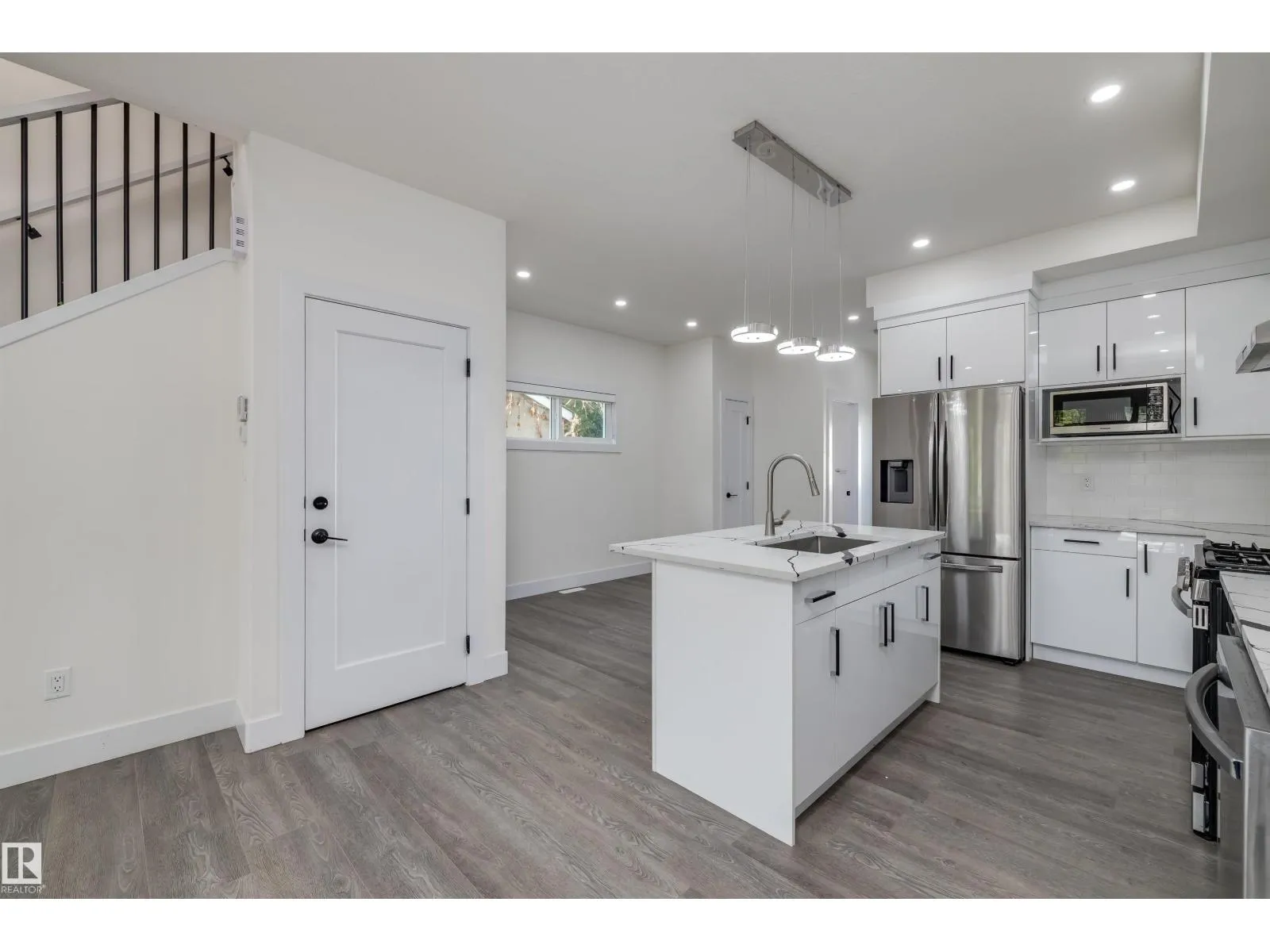 This modern 2-storey semi-detached home in King Edward Park features a LEGAL BASEMENT SUITE with SEPARATE ENTRANCE, offering excellent potential for rental income or multi-generational living. The main floor includes a bright living room with feature wall and fireplace, a dining area, a stylish kitchen with centre island, a versatile den/office that can also serve as a bedroom, and a half bathroom. Upstairs, youâll find three bedrooms and two full bathrooms, including a spacious primary suite with a walk-in closet and ensuite, along with convenient upper-floor laundry. Large, well-placed windows throughout the home create an airy, open feel and allow plenty of natural light to flow in. The fully finished adds even more value with a fourth bedroom, full bathroom, second kitchen, second living room, and its own laundry. With 9â ceilings, LED lighting, fireplace, double detached garage, this home combines modern comfort with the charm of the established King Edward Park community. (id:27476)