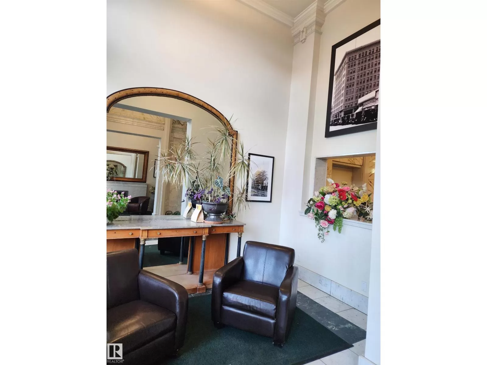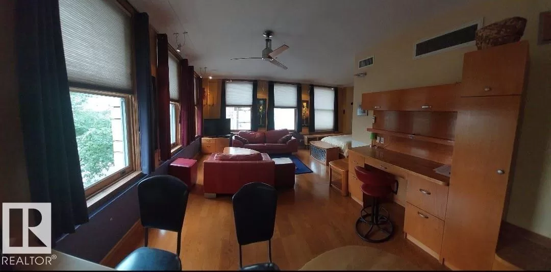 Charming Corner Studio Loft in the Iconic McLeod Building! Nestled in the heart of downtown, this home puts you steps away from award-winning restaurants, boutique shopping, the Art Gallery, Citadel Theatre, and the LRT for effortless commuting. Inside, youâll be welcomed by soaring 10 ft ceilings and stunning 7 ft tall Chicago-style windows that fill the space with natural light. Sound-cushioned walls create comfort and quiet living and in-suite laundry adds everyday convenience. Condo fees of $685 per month include all utilitiesâpower, heat, and water. For investors, this property offers immediate returns with a reliable tenant already in place and a lease secured until May 1st, 2026. Note: no parking available in the building. Historic charm, modern convenience, and a turnkey investmentâdonât miss, the MCleod Building! (id:27476)