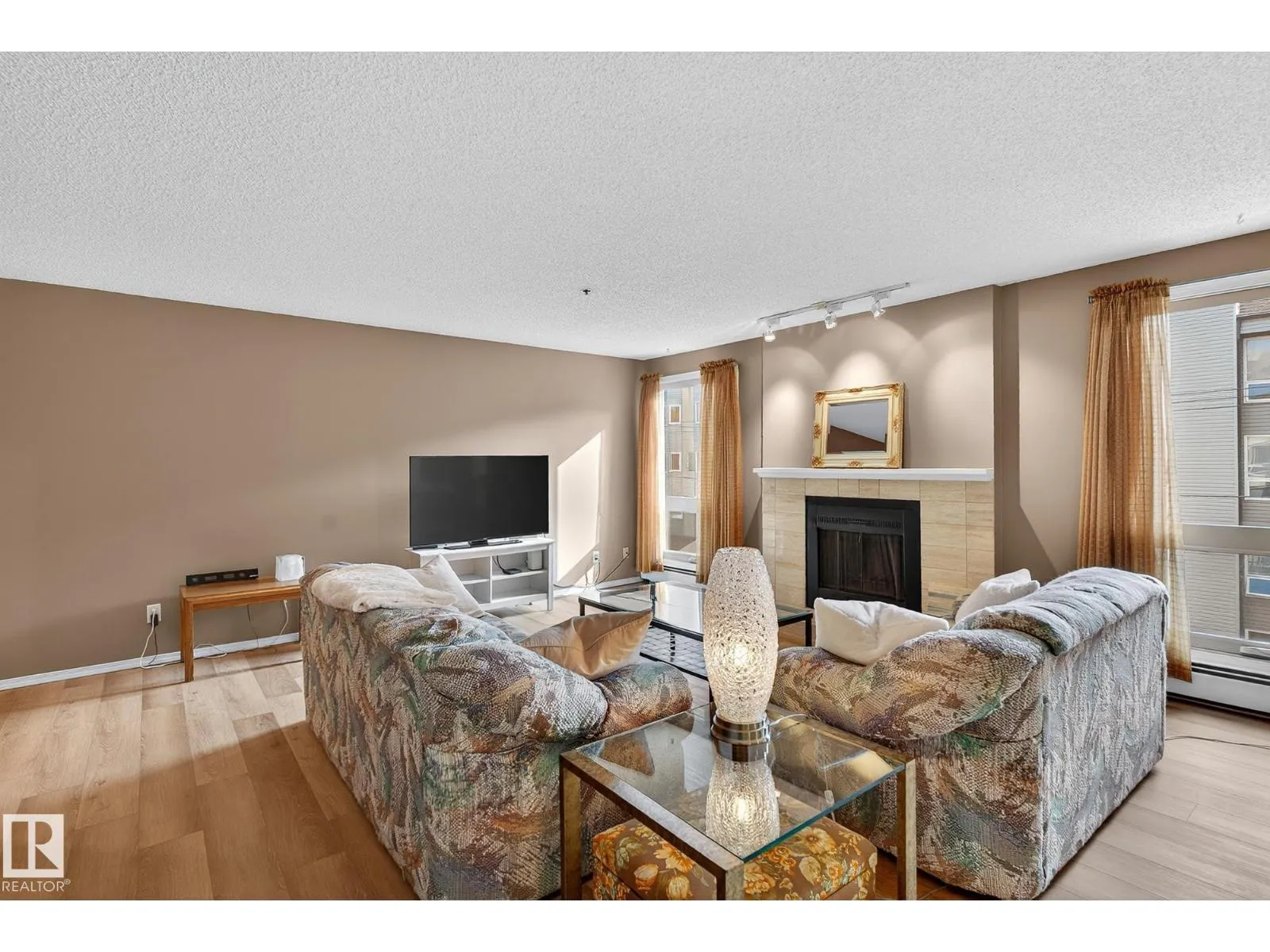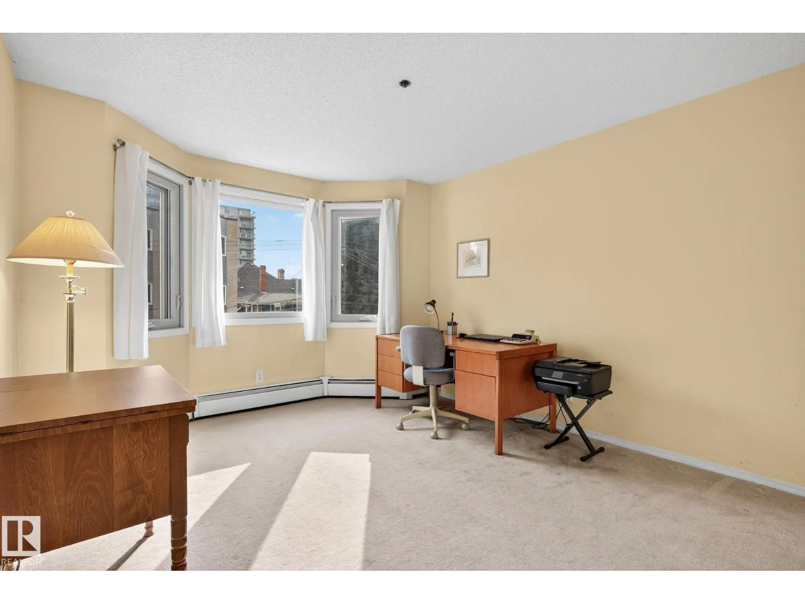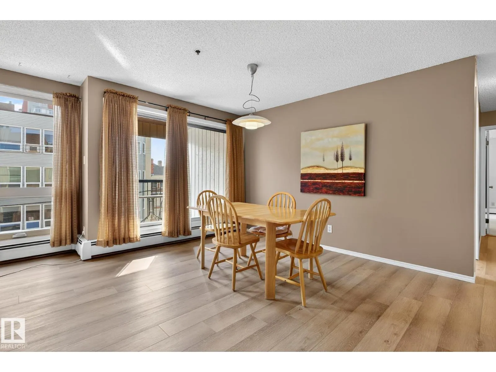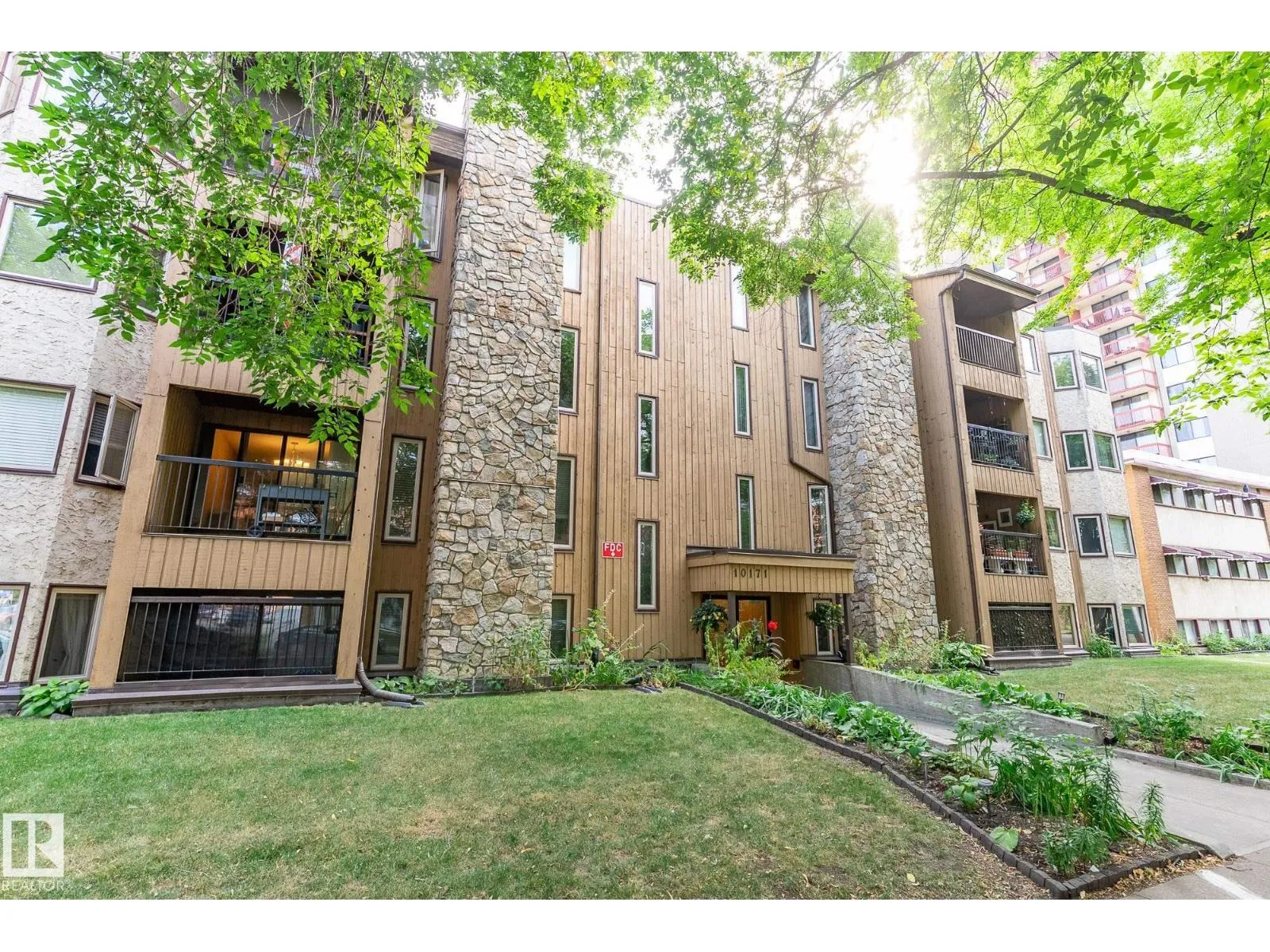 Looking for something with more character than the average condo? This rare 1,200+ sq ft downtown gem is bigger, brighter, and packed with features you wonât find elsewhere. The fireplace adds cozy charm for nights in, while the sunny covered balcony is the perfect spot for morning coffee, studying, or unwinding after work. The to dining kitchen has ample work space with a large laundry and storage room adjacent. There is plenty of space to dine with friends, relax and watch movies, or host games night. Youâll love the in-suite laundry with newer appliances, new vinyl flooring, and bright spacious rooms with bow windows. With 2 spacious rooms, the primary suite has its own 4-piece ensuite with large tub, plus thereâs a second 3pc bath for roommates or guests to compliment the large 2nd bedroom. Underground parking means no winter scraping, and the quiet complex is just steps from Jasper Avenueâclose to coffee shops, nightlife, and transit, but tucked away enough to feel private. (id:27476)