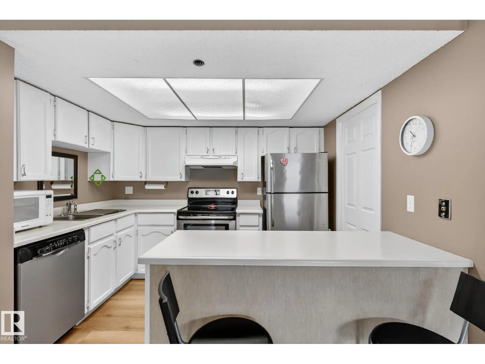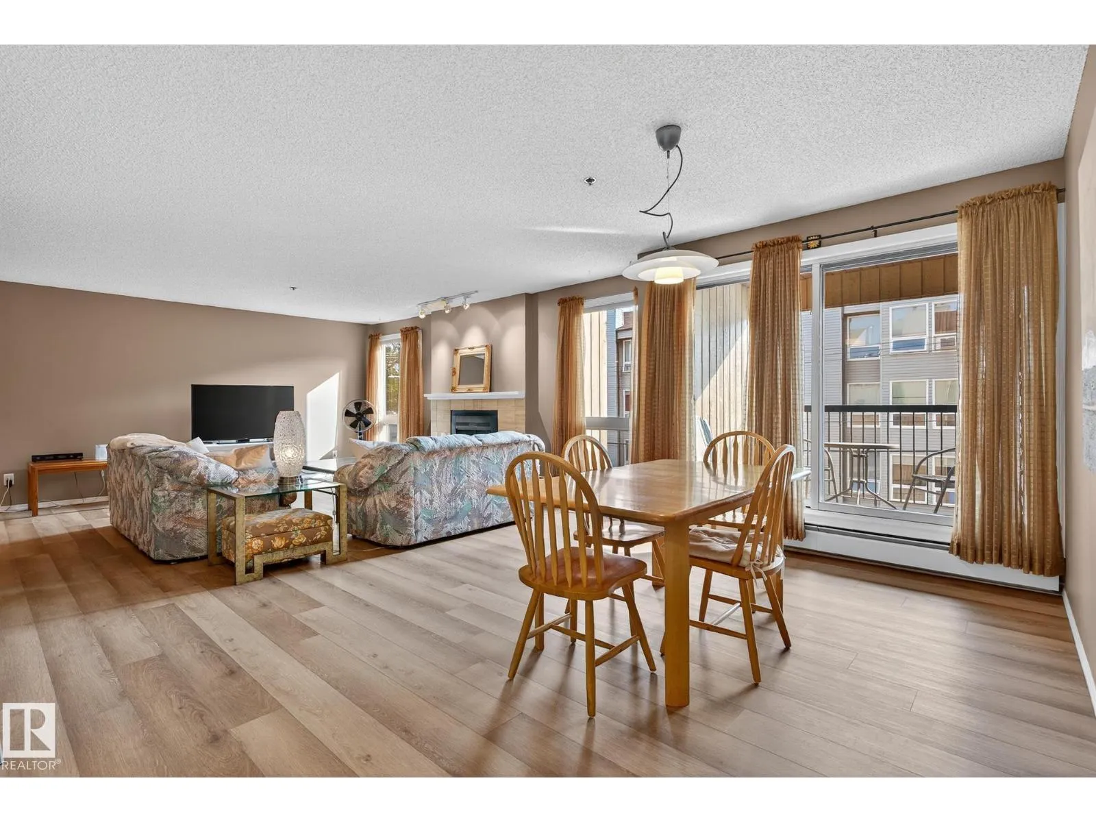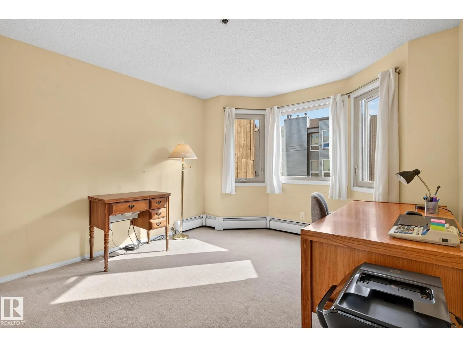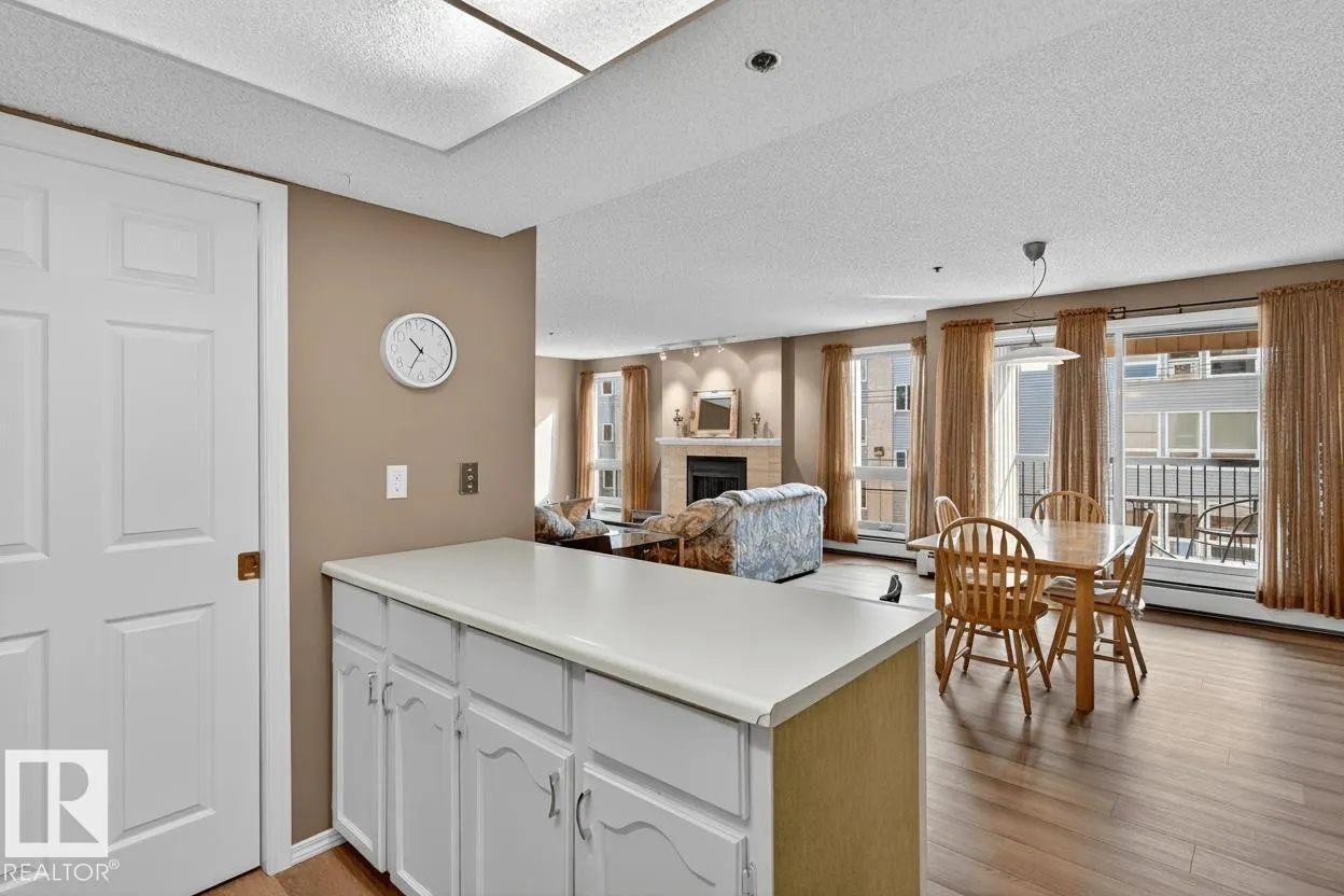 Looking for something with more character than the average condo? This rare 1,200+ sq ft downtown gem is bigger, brighter, and packed with features you wonât find elsewhere. The fireplace adds cozy charm for nights in, while the sunny covered balcony is the perfect spot for morning coffee, studying, or unwinding after work. The to dining kitchen has ample work space with a large laundry and storage room adjacent. There is plenty of space to dine with friends, relax and watch movies, or host games night. Youâll love the in-suite laundry with newer appliances, new vinyl flooring, and bright spacious rooms with bow windows. With 2 spacious rooms, the primary suite has its own 4-piece ensuite with large tub, plus thereâs a second 3pc bath for roommates or guests to compliment the large 2nd bedroom. Underground parking means no winter scraping, and the quiet complex is just steps from Jasper Avenueâclose to coffee shops, nightlife, and transit, but tucked away enough to feel private. (id:27476)