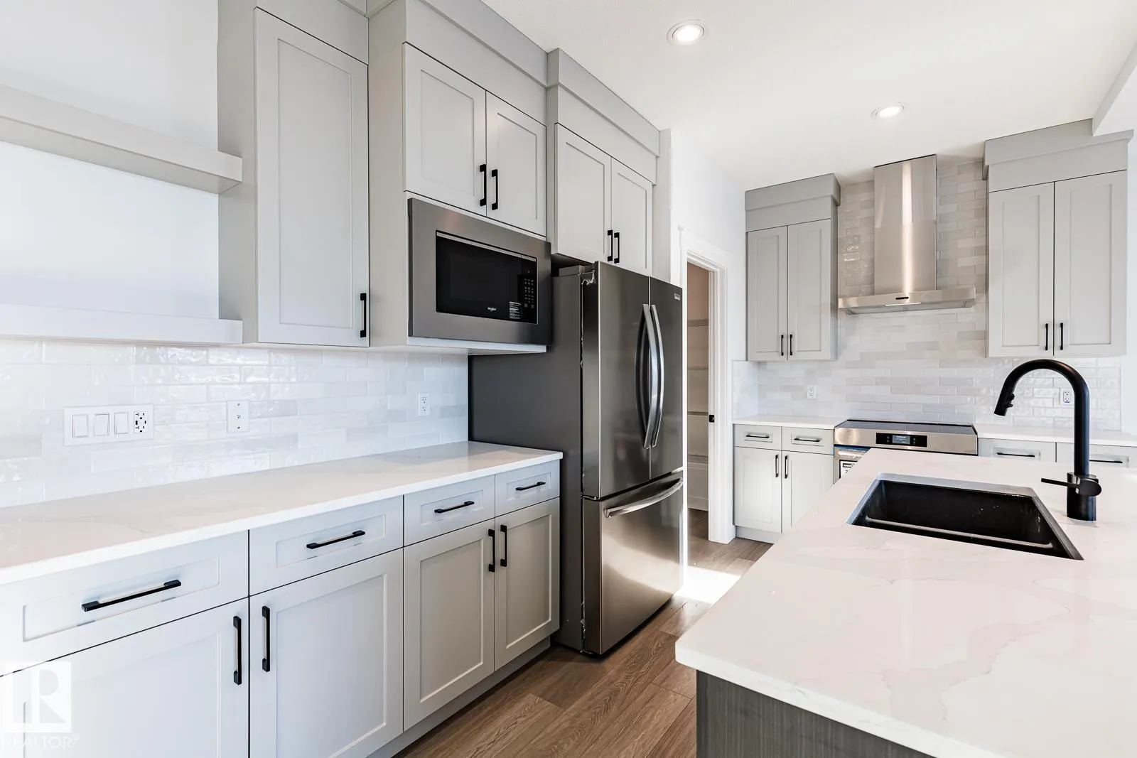 Ready for Quick Possession, on Regular Lot. This Brand New Home, Built by Award Winning Builder, Montorio Homes, with a Unique Design this Classic Beauty offers an Open-Concept Layout Features a Large Kitchen with Plenty of Counterspace for Entertaining and Meal Preparations, An abundance of Natural Light, Large South Backing Lot, Great Room c/w Electric Fireplace, Main Floor Bedroom and Full Bathroom. Upstairs offers Primary Suite with 5-pc Ensuite, Laundry Room and Massive Bonus Room for the Family Upgrades Include 9' Ceilings, Luxury Vinyl Plank, Soft Close Cabinets, Quartz Countertops with Undermount Sinks, Backsplash, Railing with Metal Spindles, Smart Home Security and SEPERATE ENTRANCE TO THE BASEMENT for future income generating suite. This home is situated in the desirable community of Glenridding Ravine, South West Edmonton, A Community with Everything in One Place, Nature, Convenience, Schools Parks and all Amenities with easy access to Anthony Henday. (id:27476)
