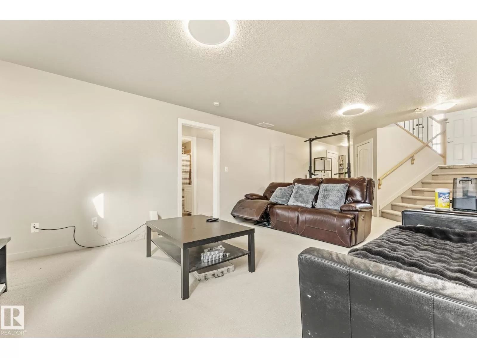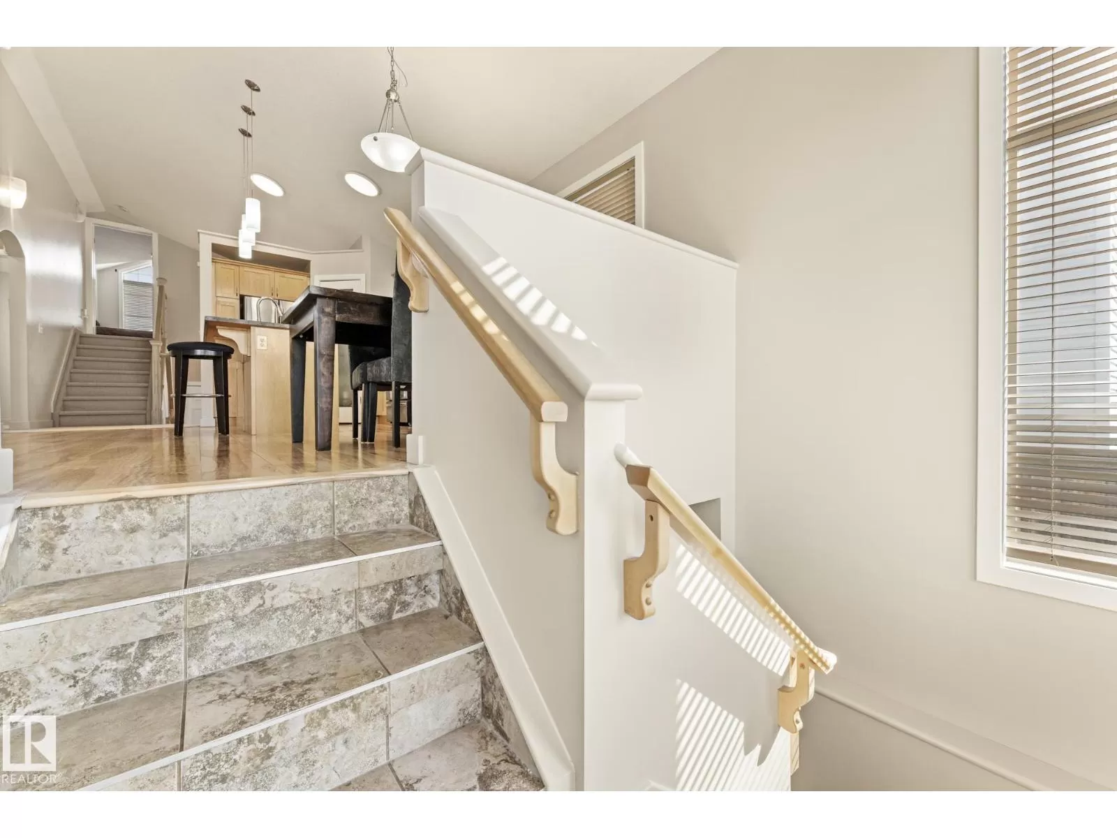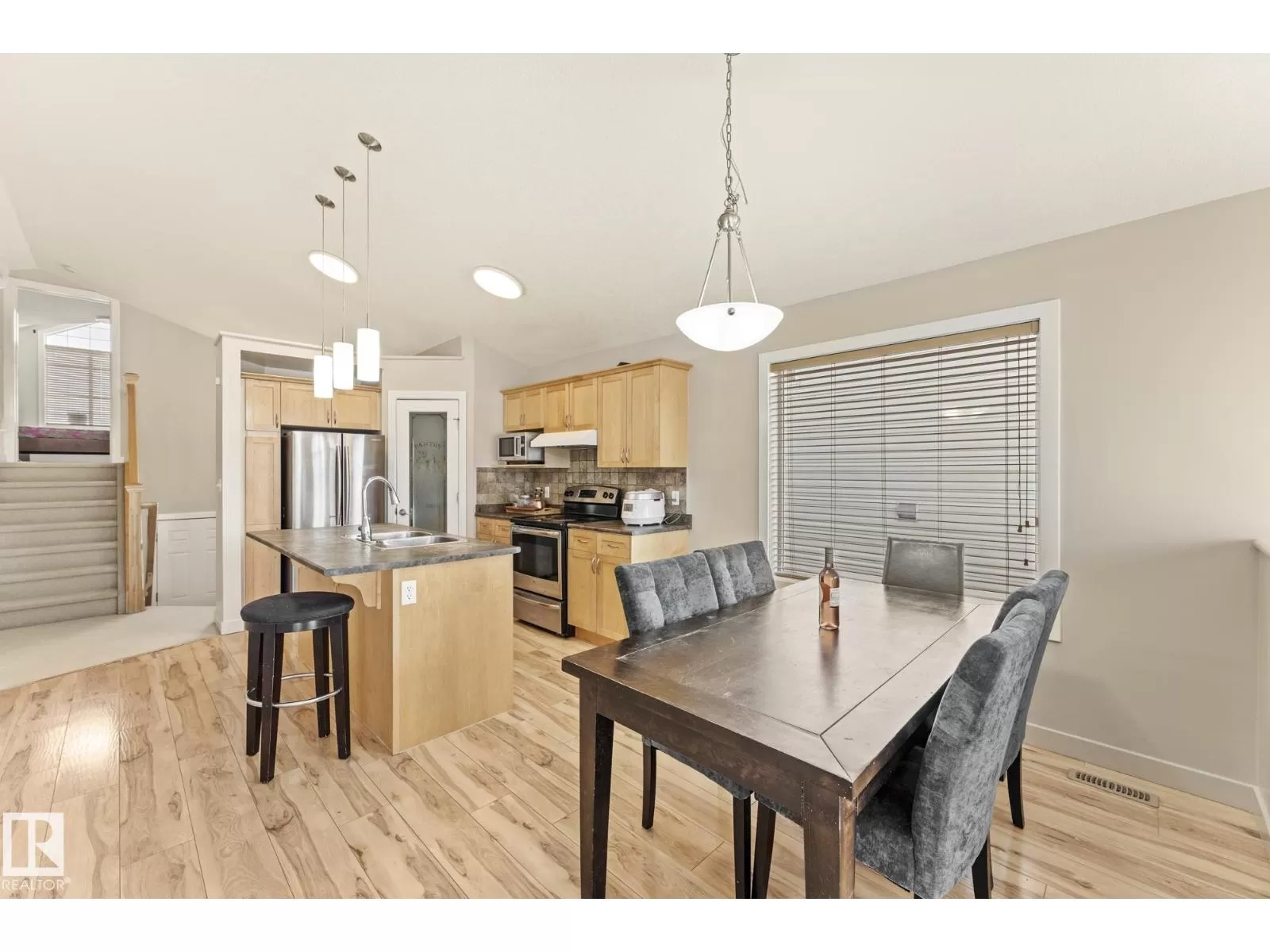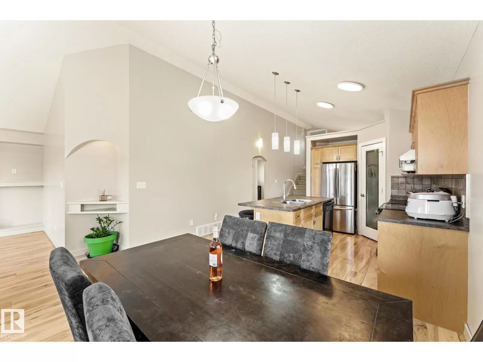 Welcome to this beautifully finished 1,419 sq. ft. bi-level home in the desirable community of MacEwan, offering modern style. Brand new shingles 2025! This bright, open-concept layout features vaulted ceilings, maple laminate flooring, and a spacious great room with a gas fireplace and built-in entertainment shelving. South-facing windows fill the space with natural light, overlooking the sunny backyard. The kitchen boasts maple cabinetry, a ceramic tile backsplash, center island, corner pantry, and track lighting, flowing seamlessly into the dining nook. Upstairs, the 361 sq. ft. primary suite offers a walk-in closet and luxurious ensuite with soaker tub, separate shower, and private toilet. The partially finished basement includes a large family/rec room and is framed for two additional bedrooms and a bathroom, offering future development potential. A double attached garage and great location close to parks, schools, trails, and shopping make this the perfect family home. (id:27476)