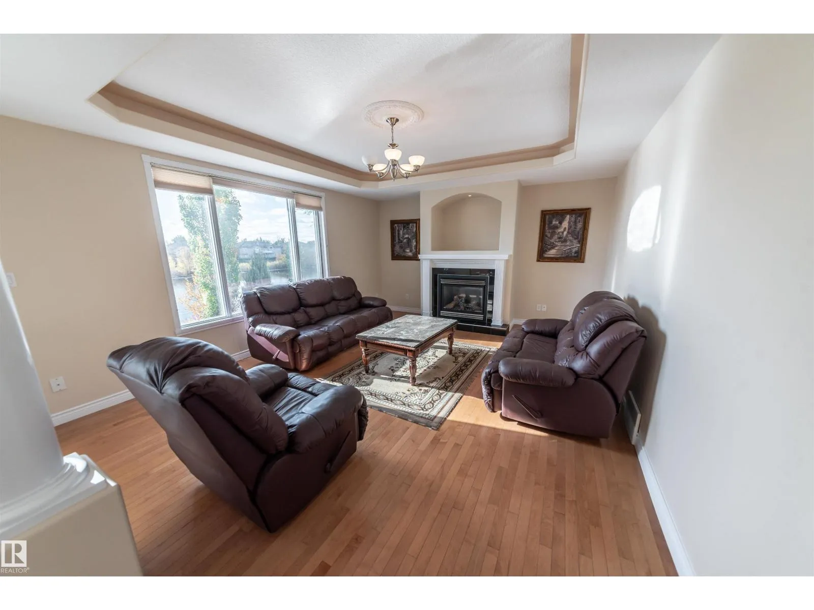 Gorgeous Lakefront Two-Storey with Walkout Basement. Situated on the tranquil shores of Carlton Lake, this stunning home offers over 4,425 sq. ft. of living space on a beautifully manicured 0.24-acre lot. Stone pathways, lush landscaping, and a lakeside firepit create the perfect outdoor retreat, while a private hot tub at the back lets you relax to the evening sounds of nature. Inside, the home features 5 spacious bedrooms, 4 full baths, 3 fireplaces, 3 family rooms, bar, all designed with large, sun-filled windows that showcase both breathtaking lake views and abundant natural light. Numerous updates throughout include new flooring, fresh paint, upgraded bathroom fixtures, furnace, hot water tanks, central A/C, and moreâmaking this property move-in ready. A triple attached garage provides ample space for vehicles and storage, while the walkout basement expands your living and entertaining options. Located close to all the amenities of the Carlton communityâshopping, arenas, playgrounds, and schools - (id:27476)