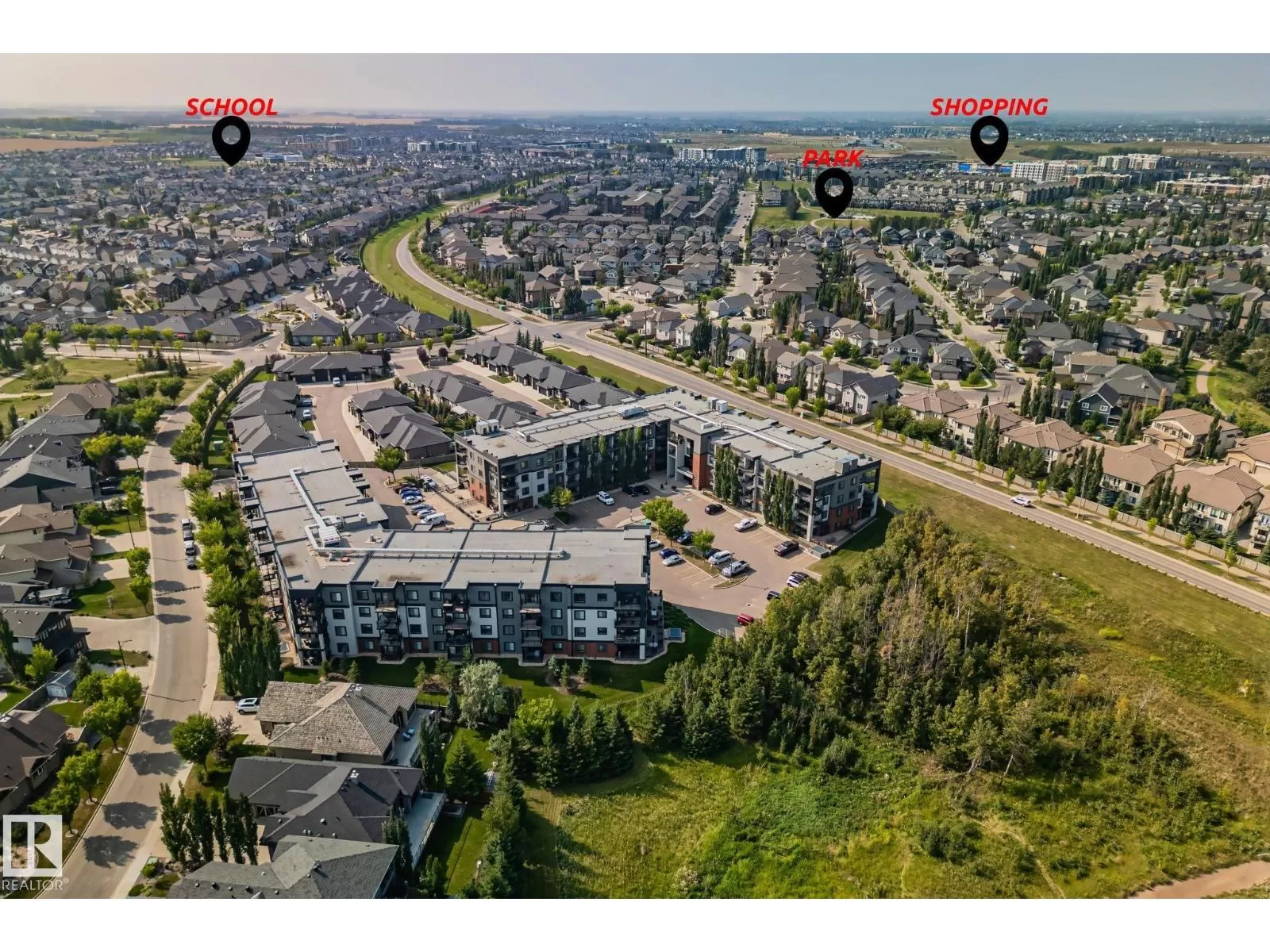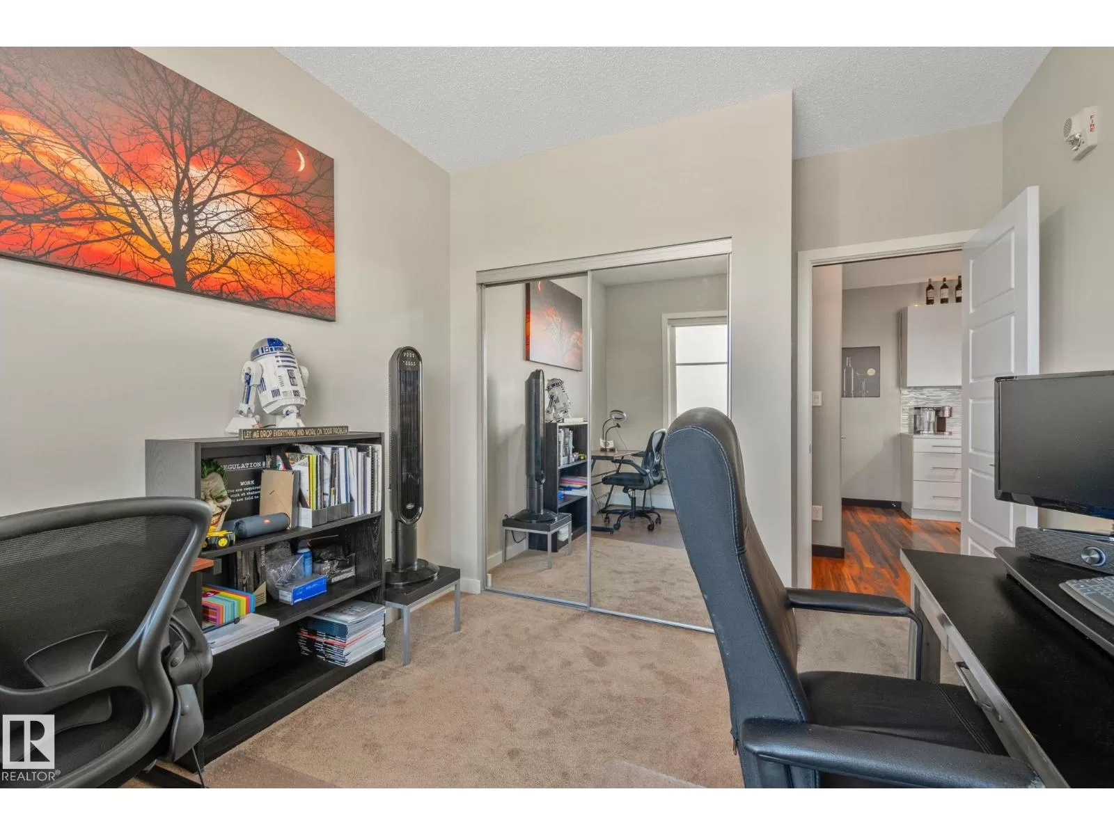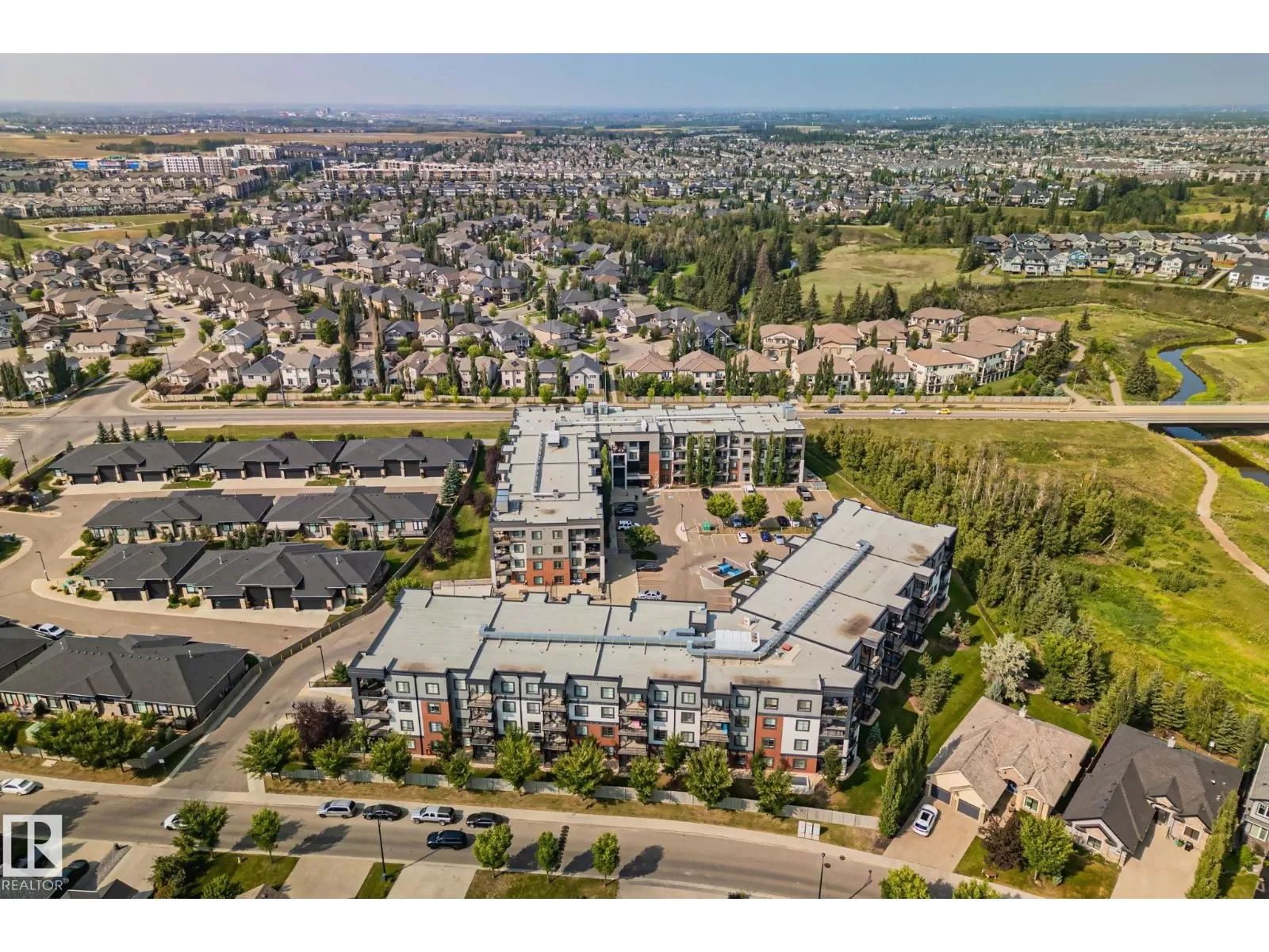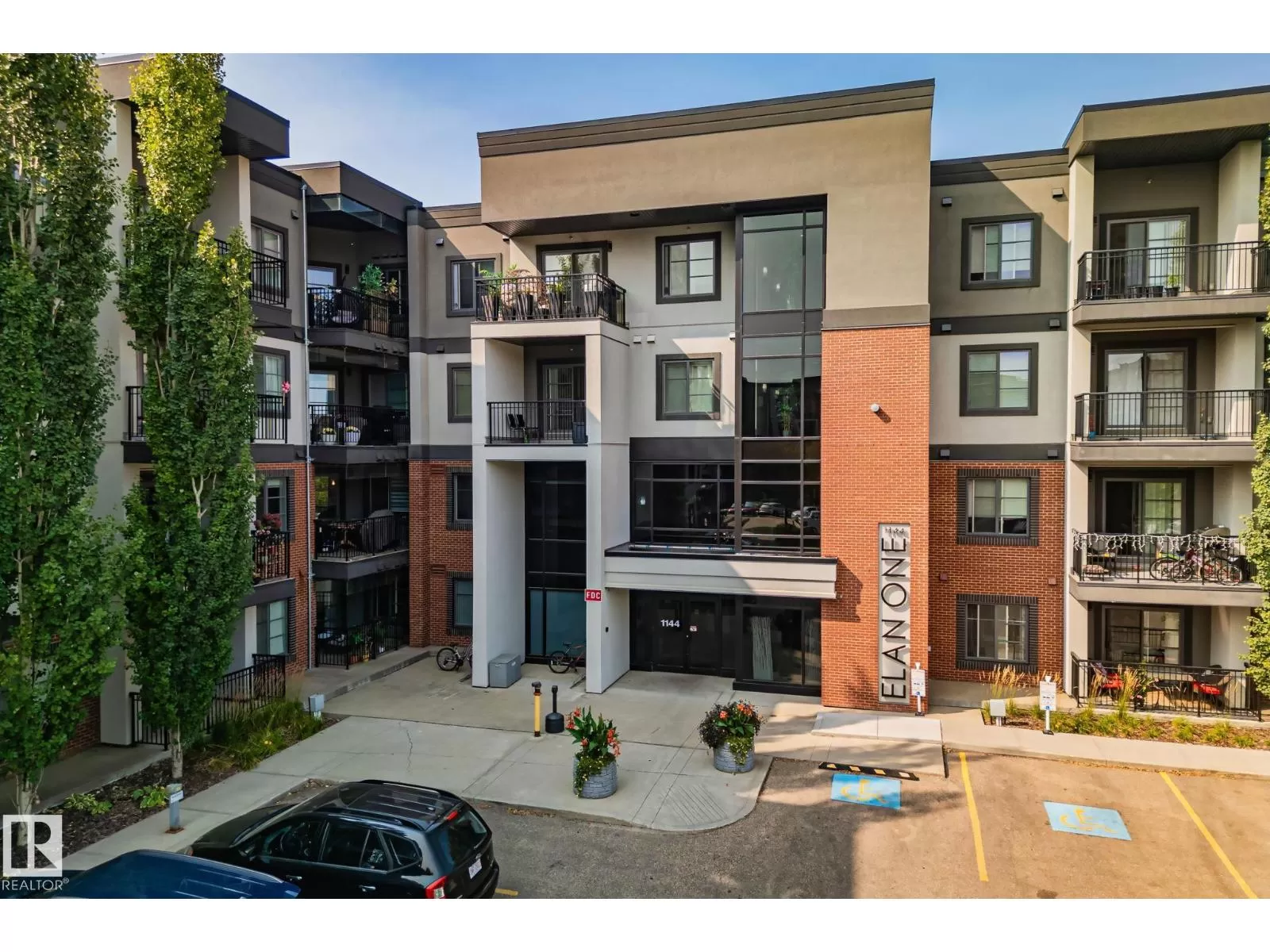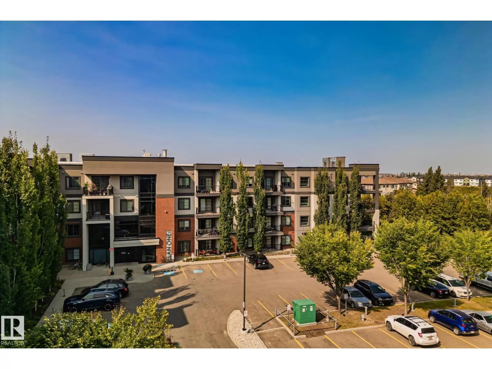 Welcome to top-floor living in the sought-after Elan Building. This bright and spacious two bedroom two bath suite features 9' ceilings, quartz counter tops throughout, maple cabinets, stainless steel appliances, glass tile backsplash, walnut laminate flooring, pendant lighting, convenient in-suite laundry, a pantry and a built in tech centre with extra storage. The primary suite includes a walk-through closet and 4-pc ensuite, while the second bedroom is ideal for children or guest. Unit comes with a titled heated underground parking stall and storage cage. The building features a social room with wet bar and pool table and a well equipped fitness room. Unit also has view of Blackmud Creek Ravine, just minutes from the Anthony Henday, shopping, walking trails, public transit and schools! Elan Condo consistently awarded recognition by Edmonton Police Service for maintaining security standards in accordance with crime-free multi-housing program. (id:27476)