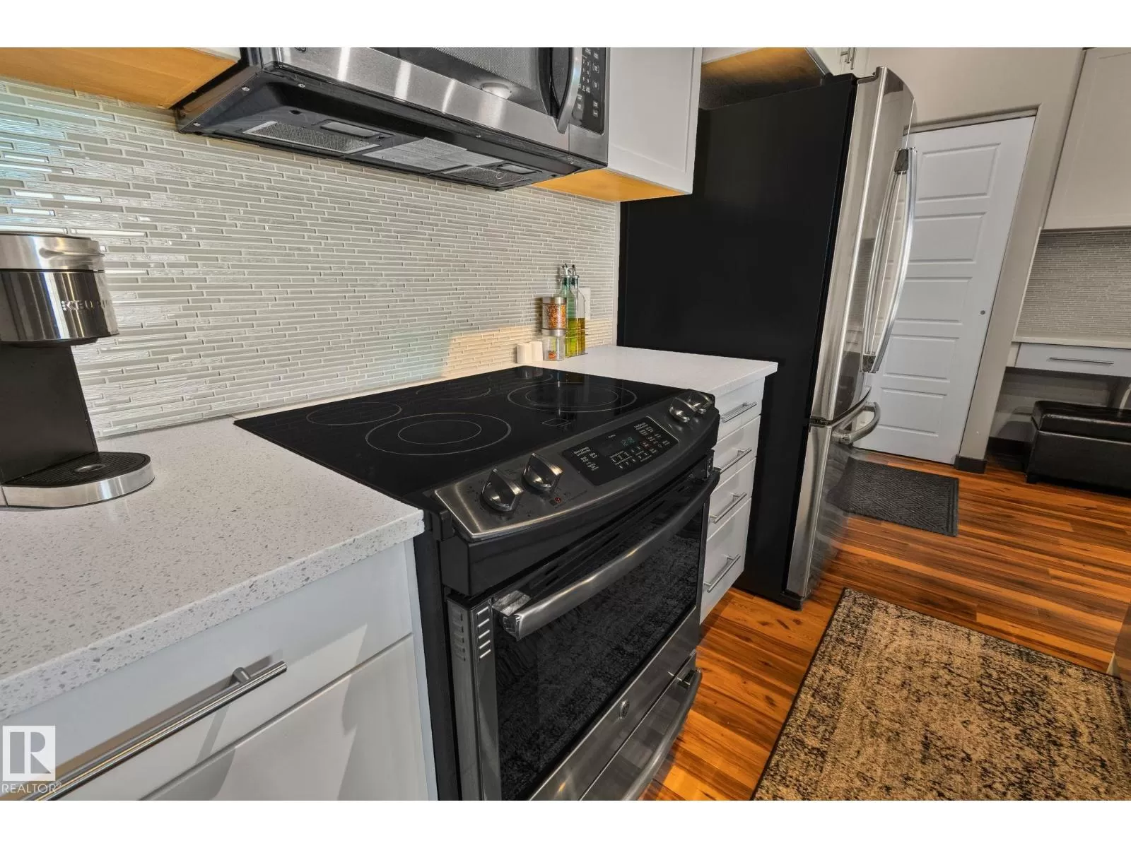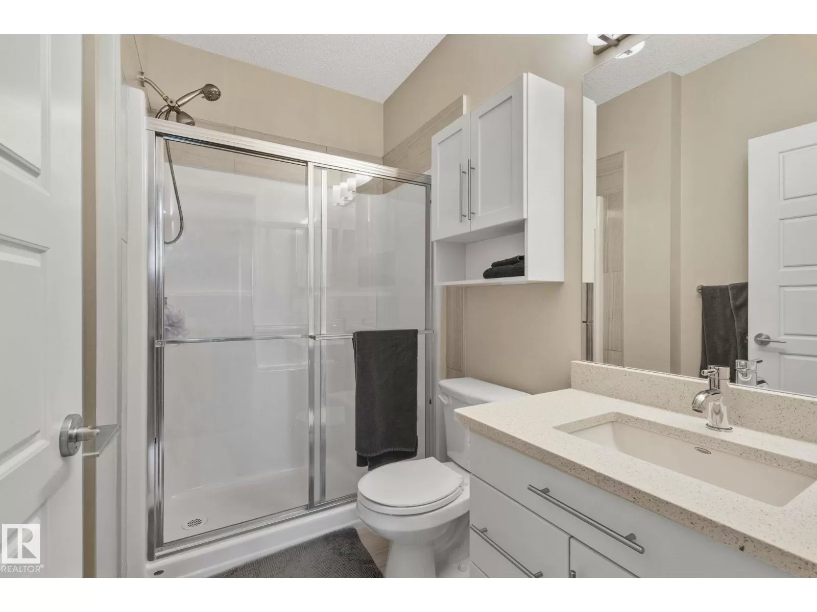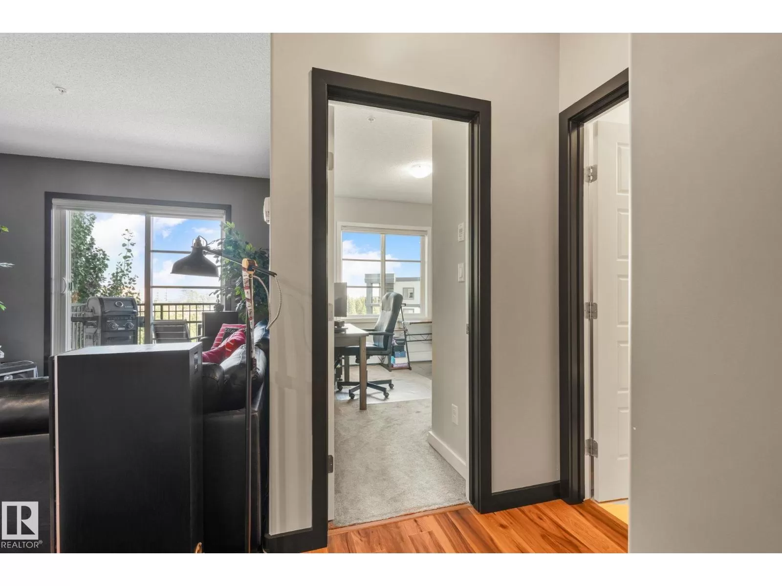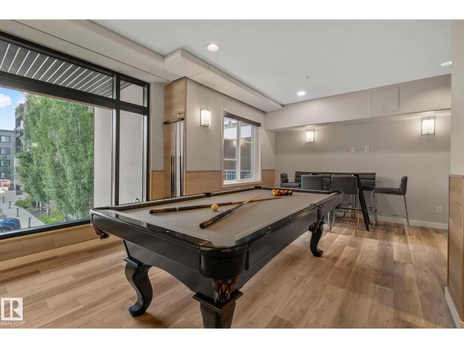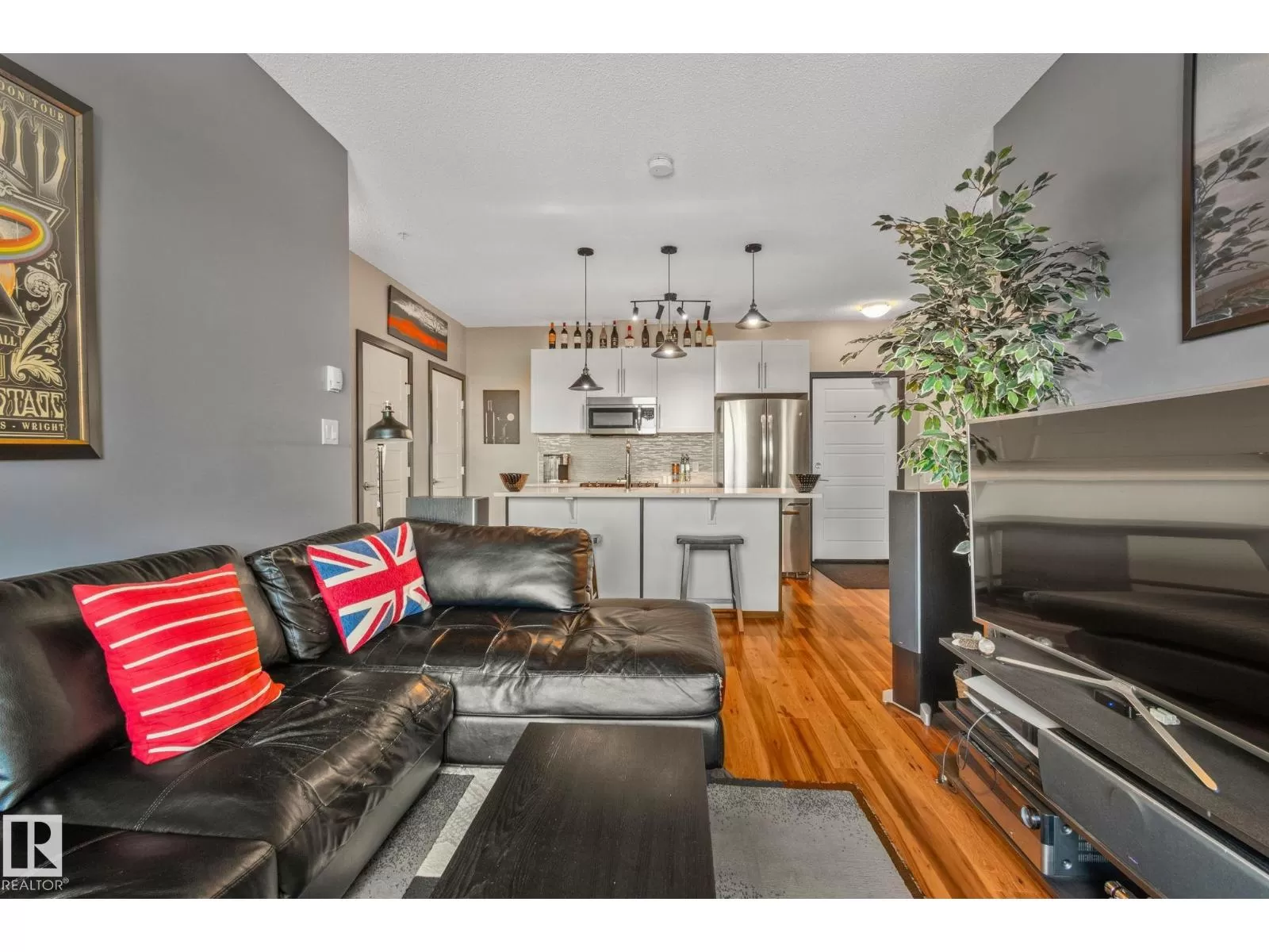 Welcome to top-floor living in the sought-after Elan Building. This bright and spacious two bedroom two bath suite features 9' ceilings, quartz counter tops throughout, maple cabinets, stainless steel appliances, glass tile backsplash, walnut laminate flooring, pendant lighting, convenient in-suite laundry, a pantry and a built in tech centre with extra storage. The primary suite includes a walk-through closet and 4-pc ensuite, while the second bedroom is ideal for children or guest. Unit comes with a titled heated underground parking stall and storage cage. The building features a social room with wet bar and pool table and a well equipped fitness room. Unit also has view of Blackmud Creek Ravine, just minutes from the Anthony Henday, shopping, walking trails, public transit and schools! Elan Condo consistently awarded recognition by Edmonton Police Service for maintaining security standards in accordance with crime-free multi-housing program. (id:27476)