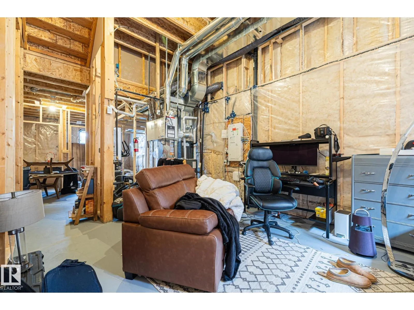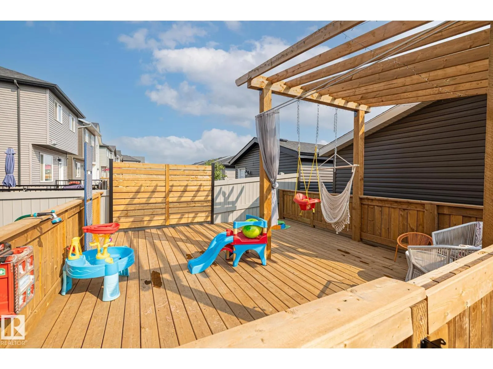 RARE Jayman built layout with large vaulted ceilings on the main floor, plus 9 foot tall basement ceiling height included a 13 foot vaulted basement living room height (golf simulator potential)! Finished in December of 2023, this home has been well loved and upgraded including a fully fenced backyard with a HUGE deck, dog run, landscaping, double car garage, Central A/C, blinds throughout, and finally, a fully framed, basement layout with plumbing and electrical work already completed making for an easy basement development project! Other perks include quartz countertops, SOLAR PANELS, a high end furnace filtration system, HRV, and fully finished landscaping. At first glance new homes might feel 'turnkey' but most home builders will leave a lot of things up to you.. including some landscaping, fence, A GARAGE, A/C, a backyard deck, blinds, etc. this is the only house in Marquis that is actually TURN KEY! With zero immediate future expenses! (id:27476)