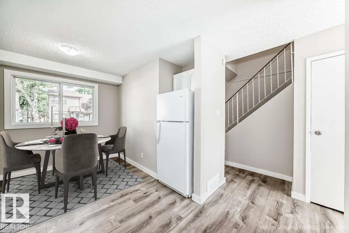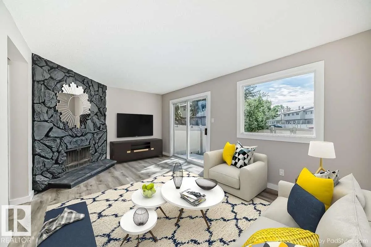 For more information, please click on View Listing on Realtor Website. COMPLETELY RENOVATED. This beautiful end-unit townhouse is the perfect fit for your family. Renovations include new bathtub and surround, new flooring, new kitchen countertops and backsplash, painted in modern colors and more. The main floor offers a spacious kitchen with newer appliances and plenty of room for family dining. The bright and airy living room features a cozy fireplace, creating a warm and inviting space. A convenient 2-piece bathroom completes the main level. Upstairs, you'll find a generous primary bedroom, two additional well-sized bedrooms, and a full 4-piece bathroomâideal for a growing family or home office needs. Step outside to your private patio, the perfect spot to relax and unwind. Ideally located close to schools, parks, shopping, and just minutes from Henday and Yellowhead for easy commuting. Donât miss your chance to make this wonderful home yours! (id:27476)