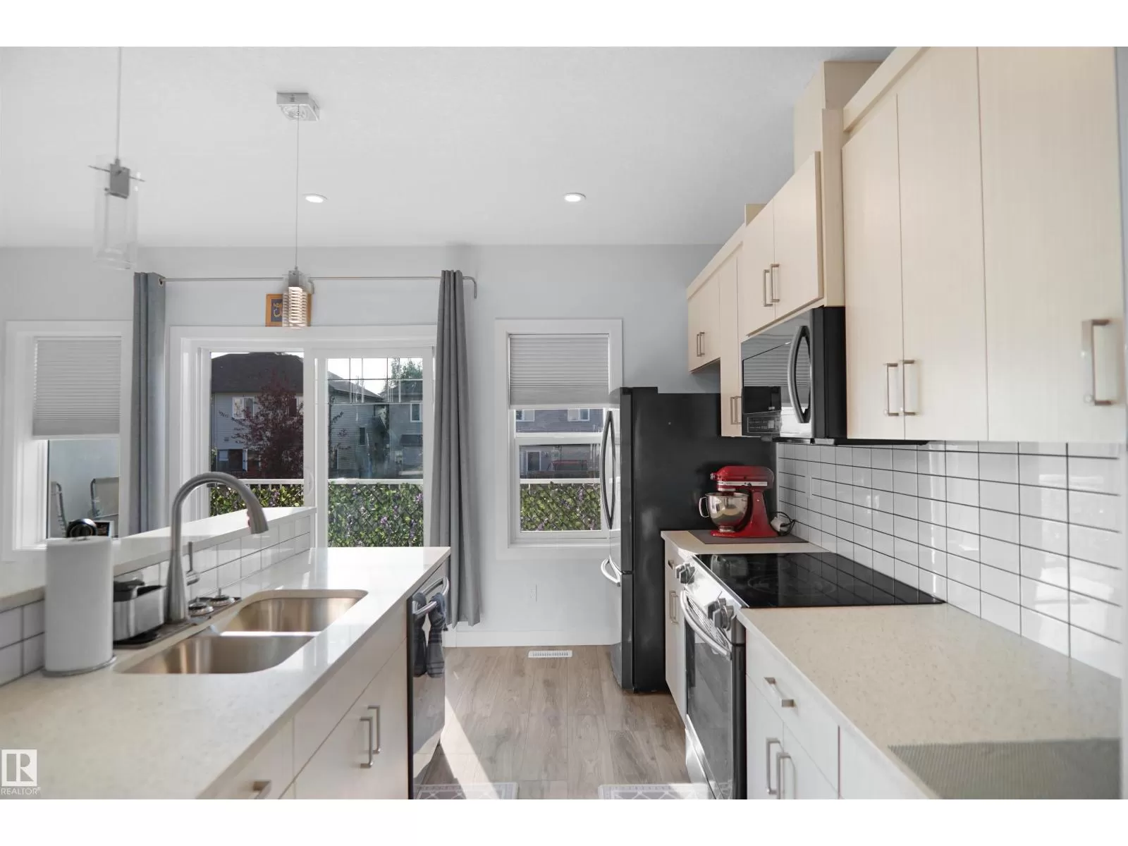 Welcome to this beautifully maintained END UNIT 2-STOREY TOWNHOME in the heart of Windermere - LANGDALE. Built in 2017 and offering over 1,900 sq.ft. of total living space! Features include 4 bedrooms, 3.5 bathrooms, and a double attached garage. The main and upper floors offers approximately 1,540 sq.ft. of living space above grade, while the fully finished basement adds an additional 365 sq.ft., complete with a bedroom and full bathroomâideal for home office, guests or extended family seeking privacy. Enjoy an EAST-FACING home with a bright open layout, modern finishes, and a HUGE BALCONY, perfect for entertaining. Located in a quiet, beautifully kept STUCCO EXTERIOR condo complex, with visitor parking right next to the home for added convenience. Steps to shopping, schools, parks, and with quick access to major highways. Approximately 20-25 minutes to Edmonton International Airport. A fantastic home in a highly desirable location!! (id:27476)